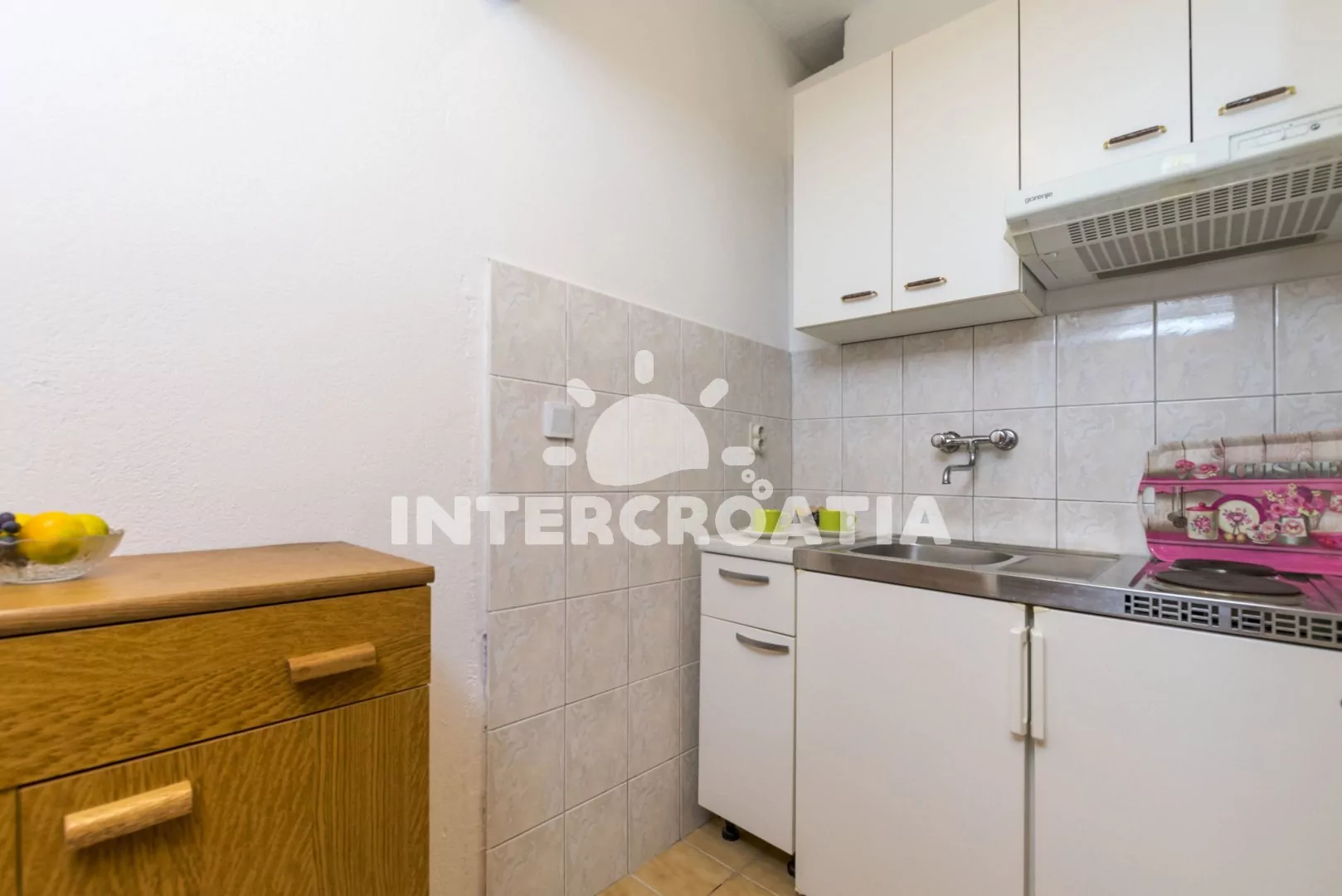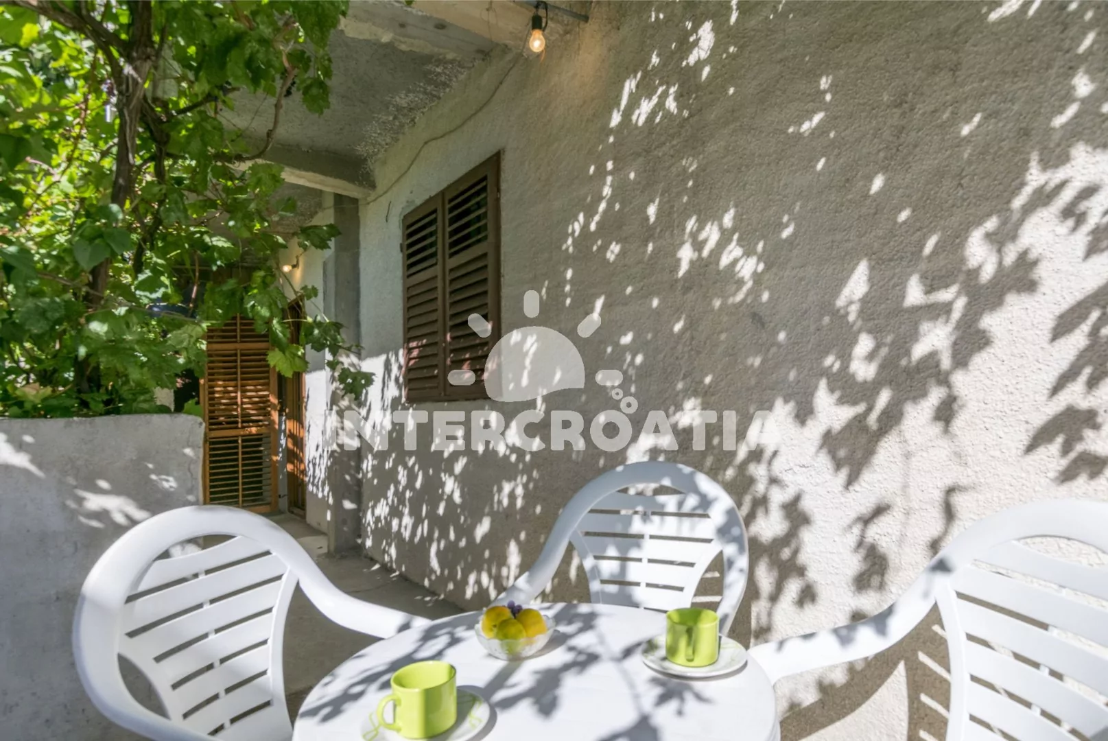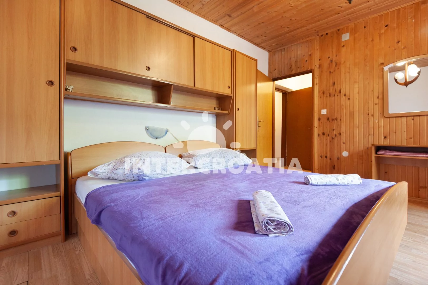 Apartmán pro 3 osoby s balkonem a výhledem na moře, se nachází v prvním patře domu. Kuchyňská linka s elektrickým dvouplotýnkovým sporákem, digestoří, rychlovarnou konvicí nádobím a lednicí. Ložnice je vybavena jedním dvoulůžkem, jednou přistýlkou a vstupem na balkon. Koupelna se sprchovým koutem umyvadlem a wc. K dispozici venkovní posezení na balkoně.
