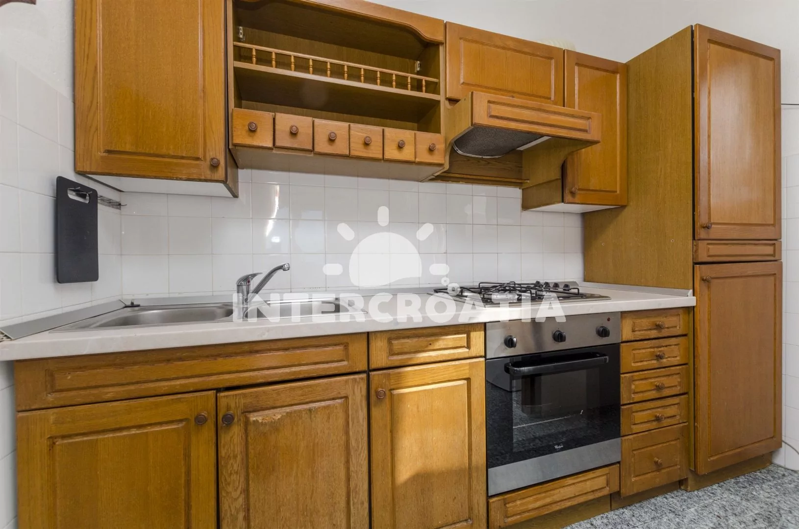 Velký apartmán (120 m2) s výhledem na moře, vlastní terasou, čtyřmi ložnicemi a čtyřmi koupelnami se nachází v prvním patře domu. Obývací pokoj je spojený s kuchyní. Kuchyňská linka je vybavena…