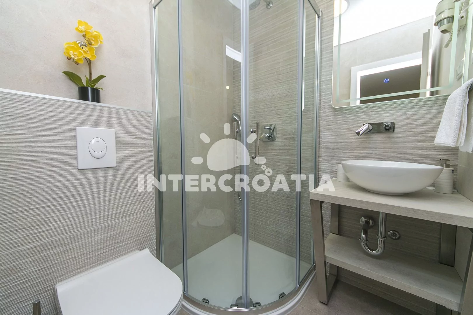 Moderní dům s nádherným výhledem na moře se nachází 420 m pěší chůzí od moře a oblázkové pláže Jakiruša. Dům nabízí ubytování v klimatizovaných apartmánech s lodžiemi a venkovním posezením. U domu společná terasa se zděným grilem a parkovištěm pro automobily.