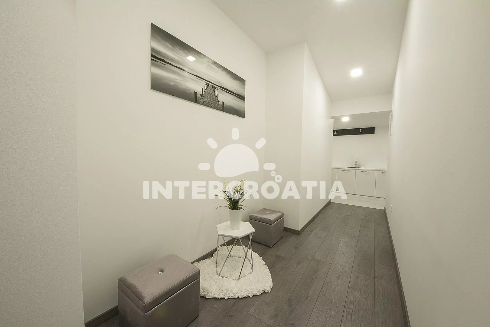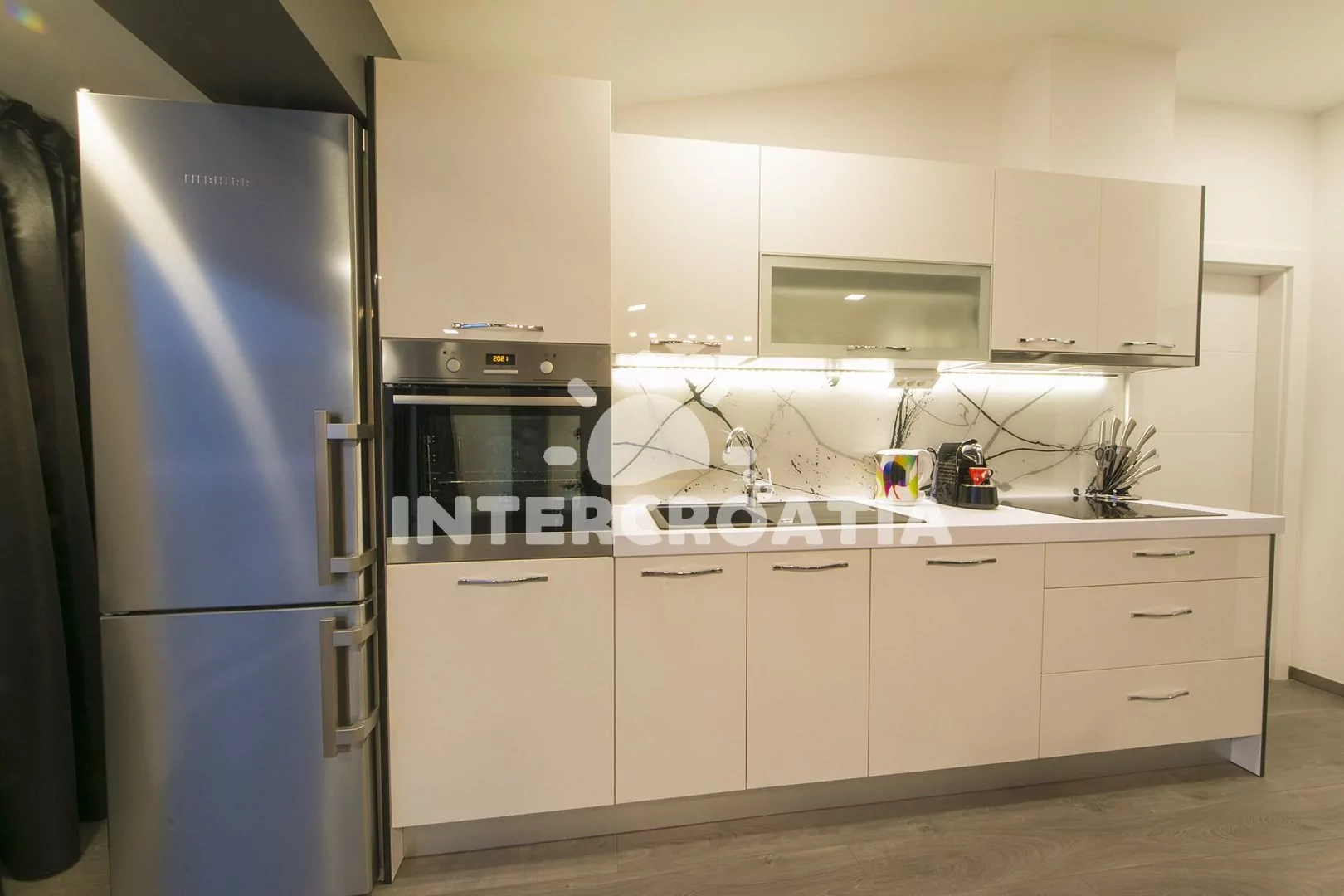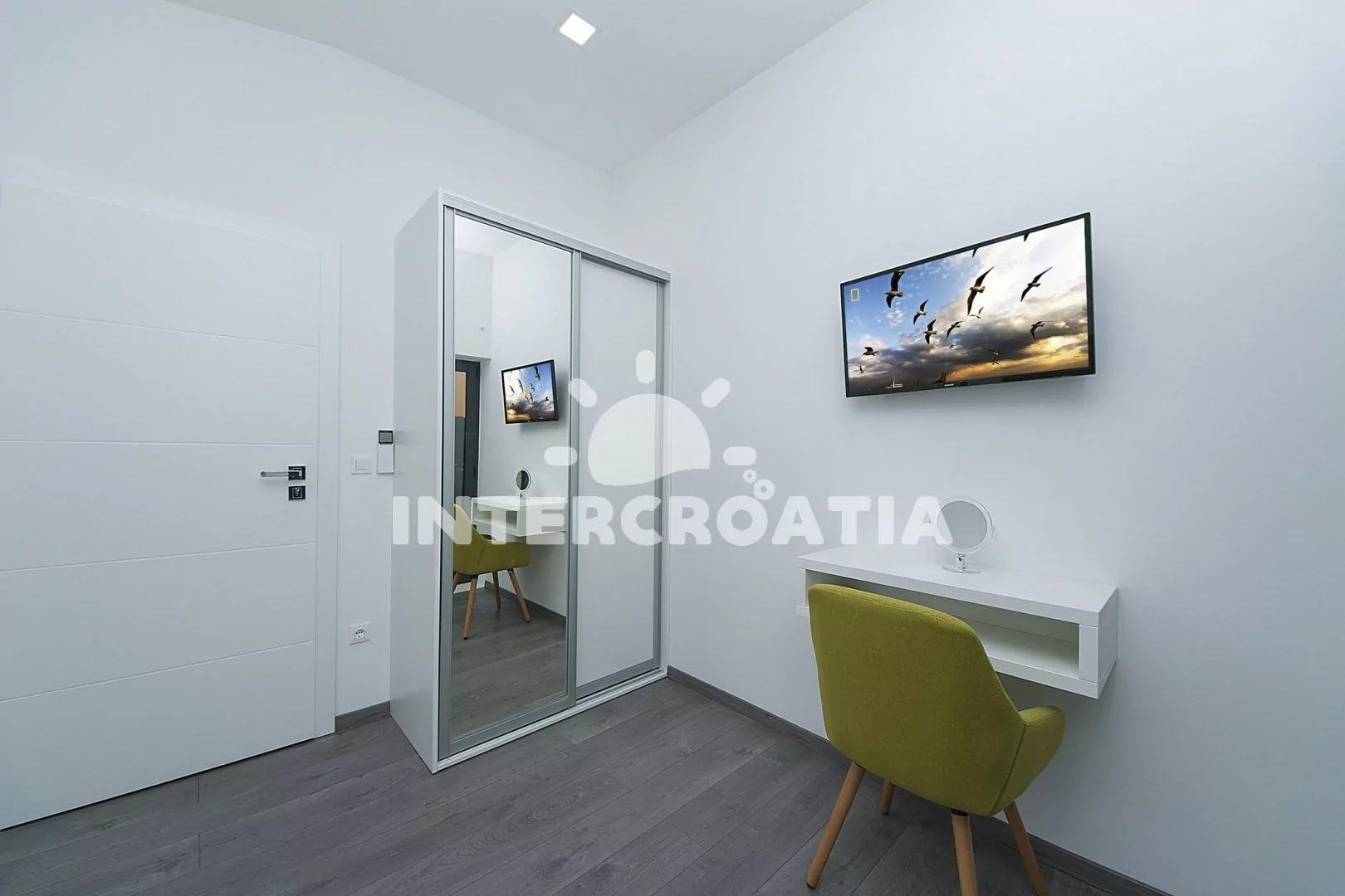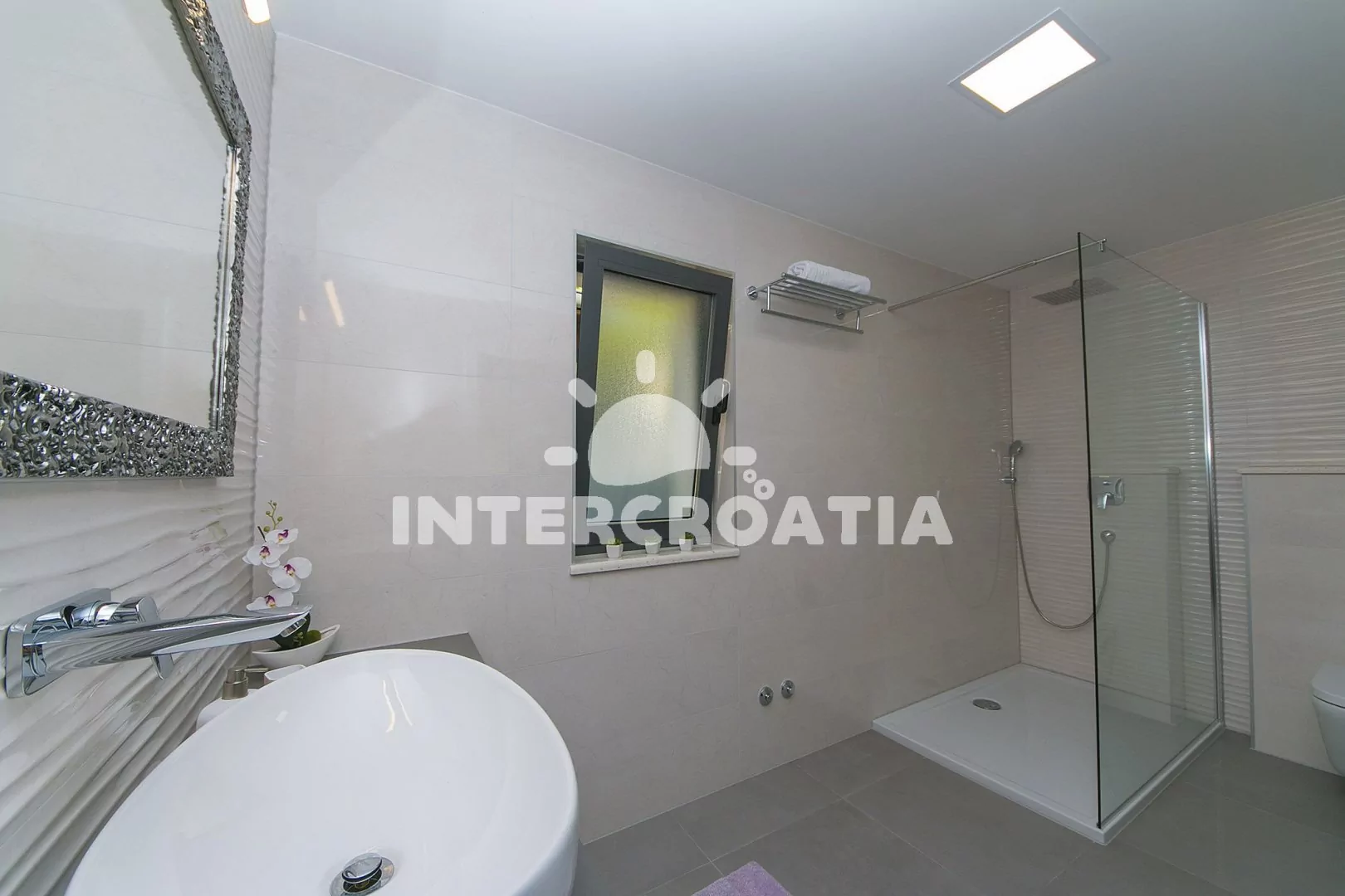 Luxusní apartmán (90 m2) s terasou, vířivkou, posezením a výhledem na moře se nachází ve 2. patře domu. Apartmán má 2 ložnice a je vhodný pro 4 až 5 osob. Obývací pokoj je spojený s kuchyní.…