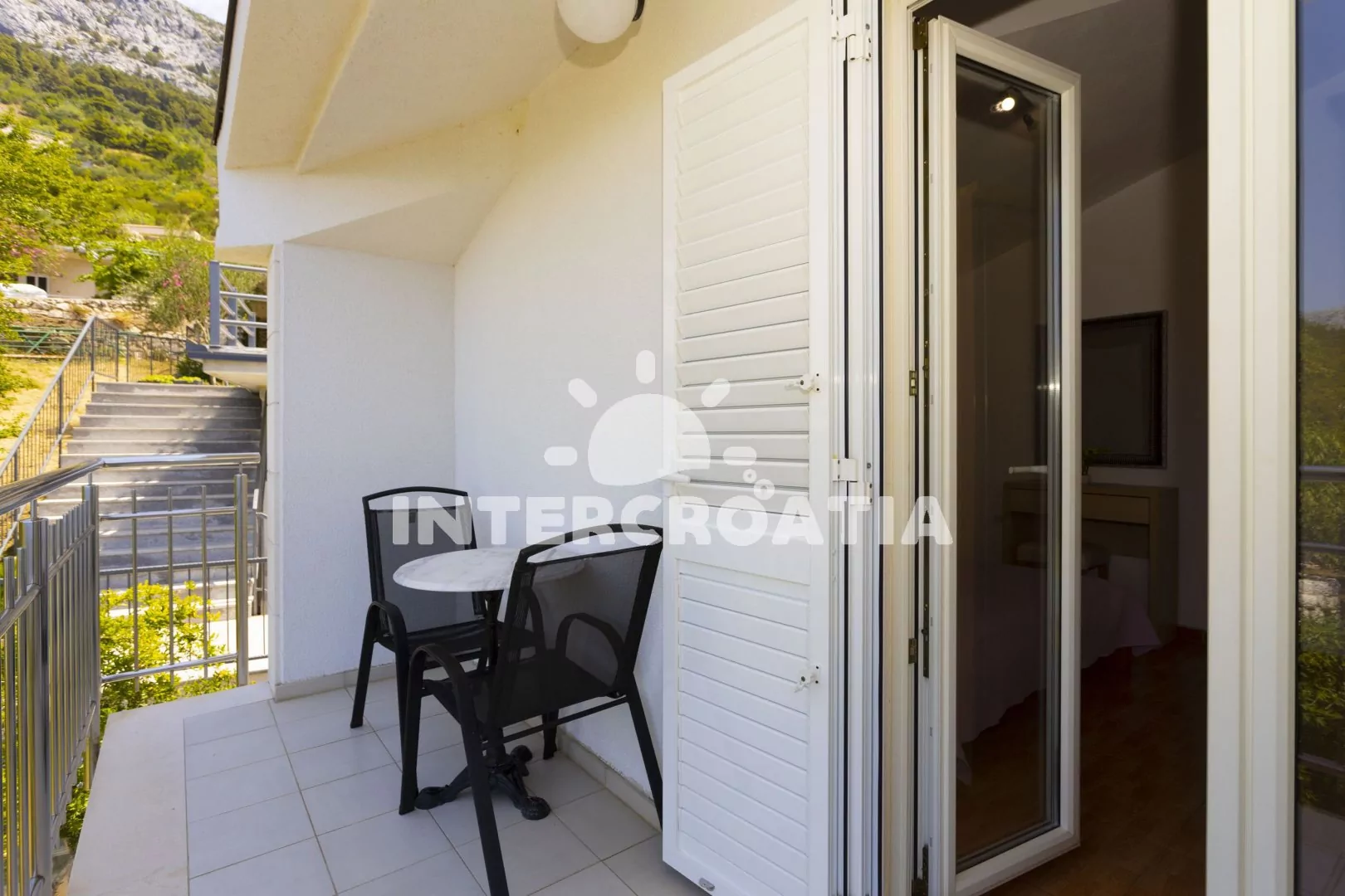 Vzdálenosti: Moře a pláž 400 m, restaurace a bar 300 m, půjčovna motorových člunů 800 m, potápění 1 km, obchod, centrum, veřejná doprava, lékárna, směnárna, tenisové kurty, mini golf, přístav, banka a pošta 3 km, ambulance 4 km, čerpací stanice 10 km, diskotéka 15 km, přístav (Makarska) 15 km, letiště (Split) 65 km.