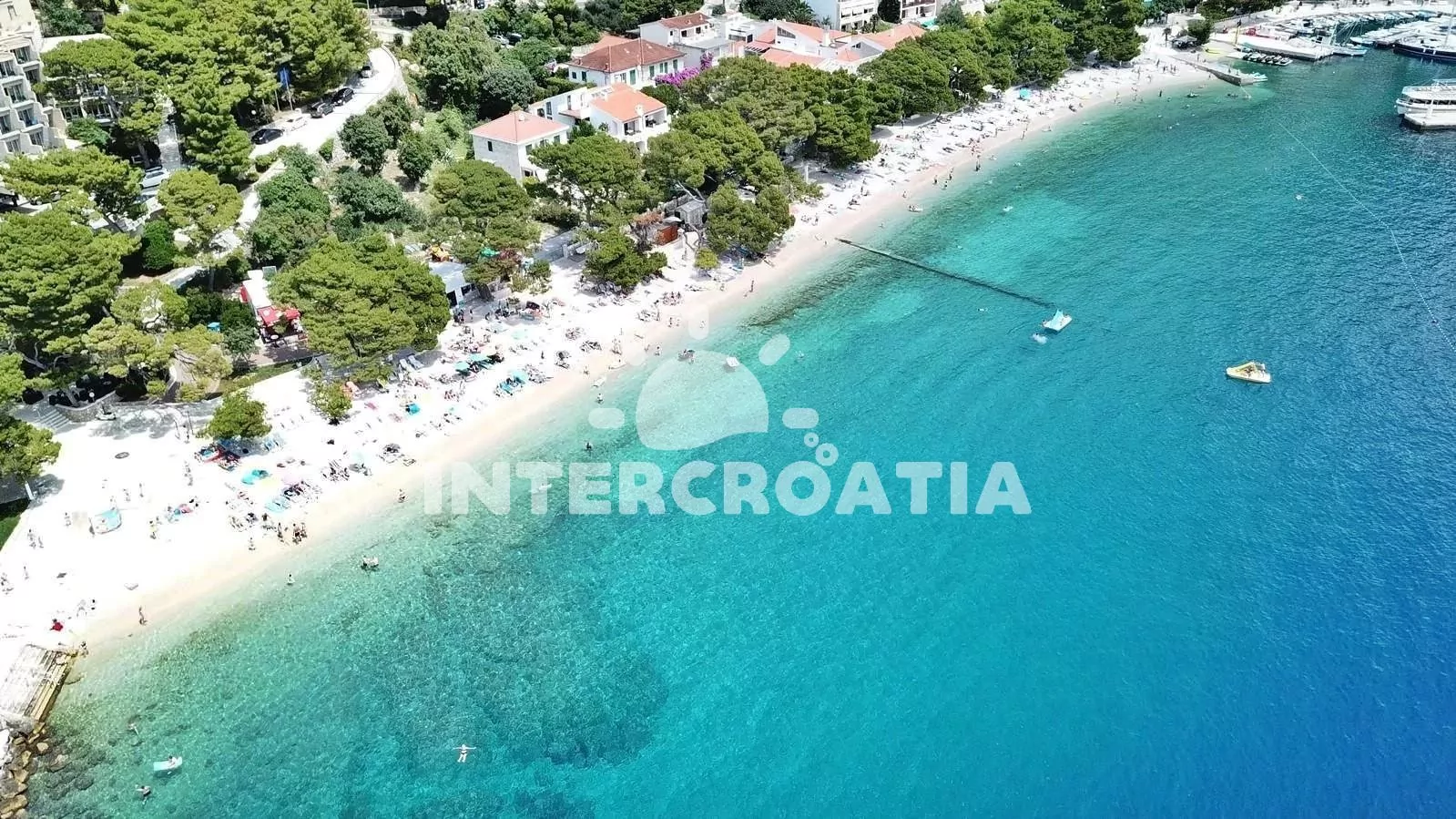 Vzdálenosti: Moře 180 m, pláž (oblázková) 280 m, centrum 250 m, market 200 m, restaurace 130 m, bar, půjčovna cyklistických kol a motorových člunů 300 m, lékárna 270 m, pošta 350 m, směnárna 400 m, přístav 180 m, tenisové kurty 800 m, veřejná doprava 1,2 km, potápění 2 km, ambulance 2,6 km, banka, čerpací stanice a diskotéka 15 km, park Plitvice 123 km, trajekt (Makarska) 15 km, letiště (Split) 68 km.