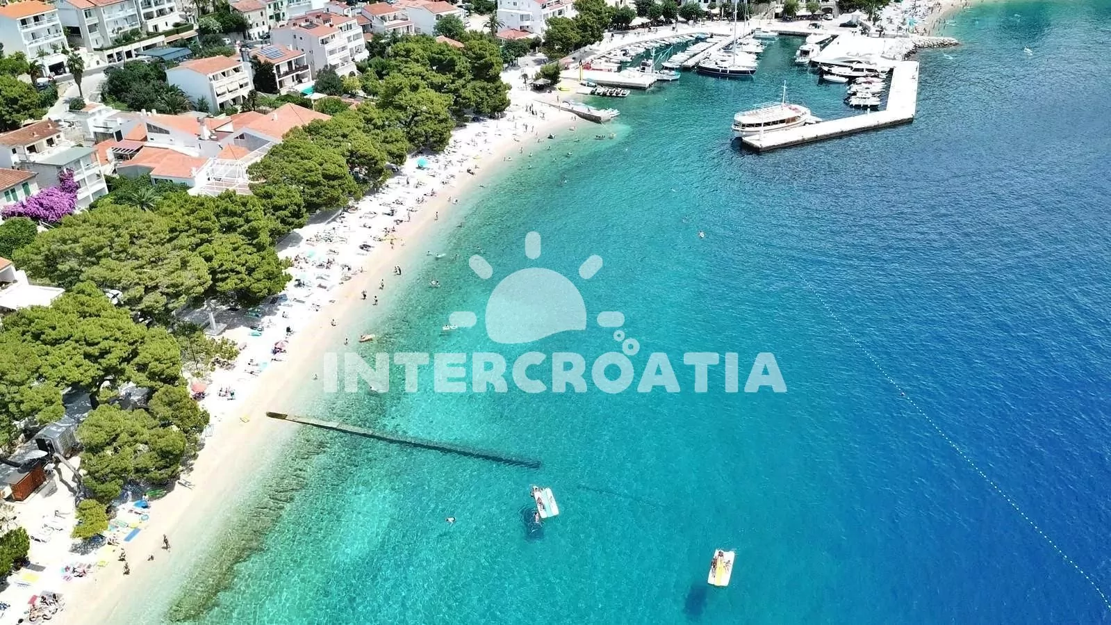 Vzdálenosti: Moře 180 m, pláž (oblázková) 280 m, centrum 250 m, market 200 m, restaurace 130 m, bar, půjčovna cyklistických kol a motorových člunů 300 m, lékárna 270 m, pošta 350 m, směnárna 400 m, přístav 180 m, tenisové kurty 800 m, veřejná doprava 1,2 km, potápění 2 km, ambulance 2,6 km, banka, čerpací stanice a diskotéka 15 km, park Plitvice 123 km, trajekt (Makarska) 15 km, letiště (Split) 68 km.