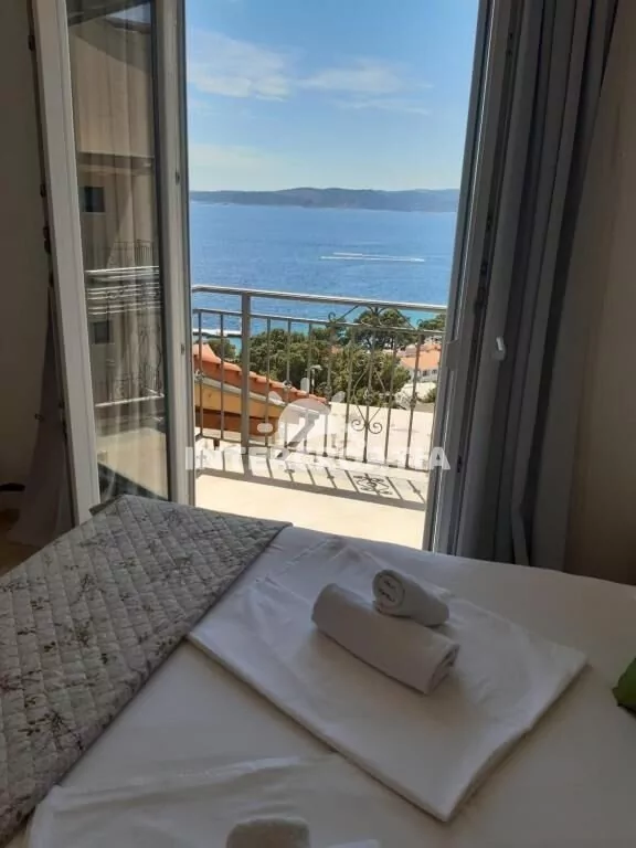 Apartmán (40 m2) s balkonem, posezením a výhledem na moře se nachází ve 2. patře domu. Apartmán má 1 ložnici a je vhodný pro 2 až 4 osoby. Obývací pokoj je spojený s kuchyní. Kuchyňská linka je vybavena dvouplotýnkovým vařičem, digestoří, rychlovarnou konvicí, mikrovlnnou troubou, kávovarem, nádobím a lednicí s mrazákem. Obývací pokoj s jídelním stolem, pohovkou (rozložitelná na extra lůžko pro 2 osoby), televizí, klimatizací a vstupem na balkon. Ložnice s dvoulůžkem, sejfem a vstupem na balkon. Koupelna se sprchovým koutem, umyvadlem, fénem a wc. Hostům je k dispozici parkování u objektu zdarma.