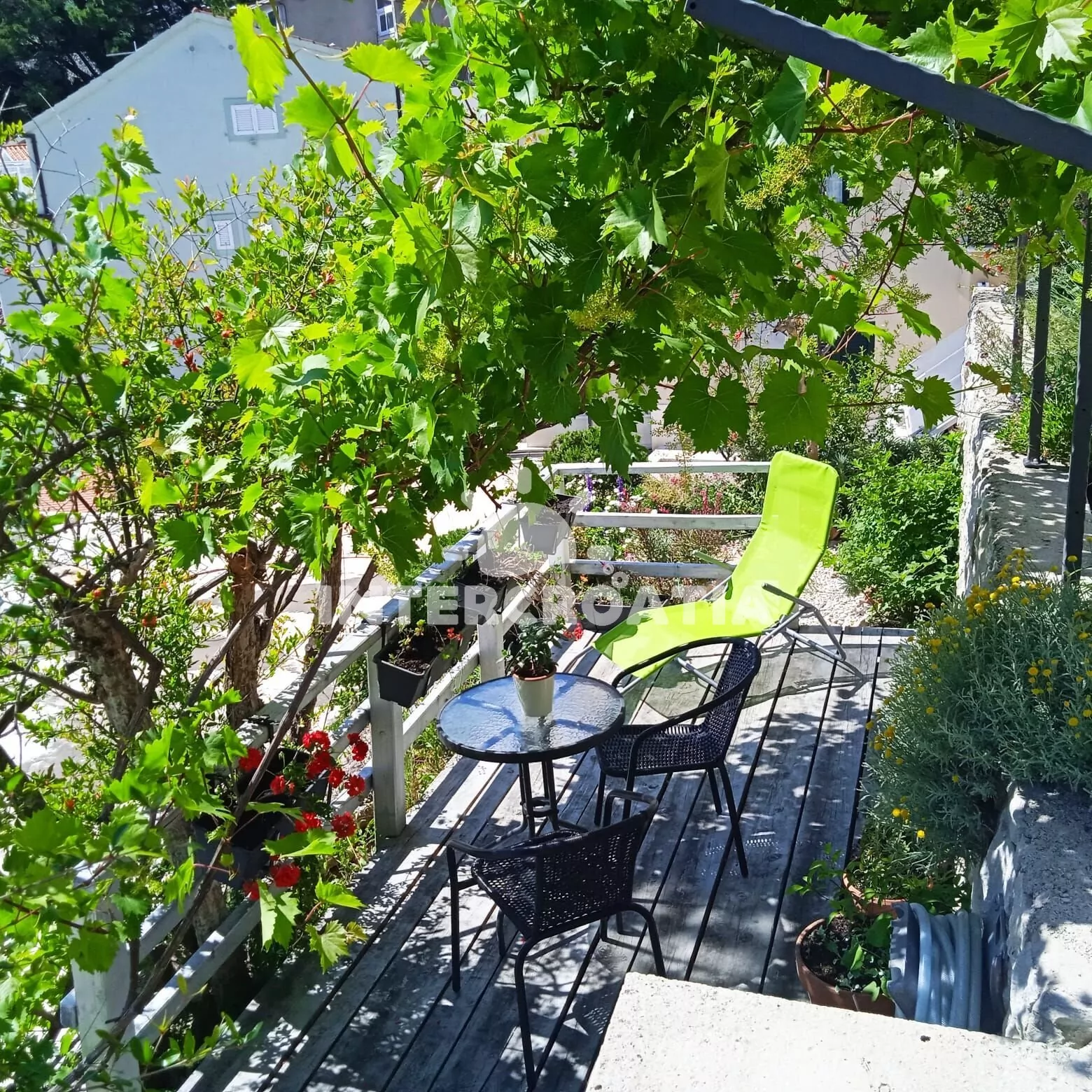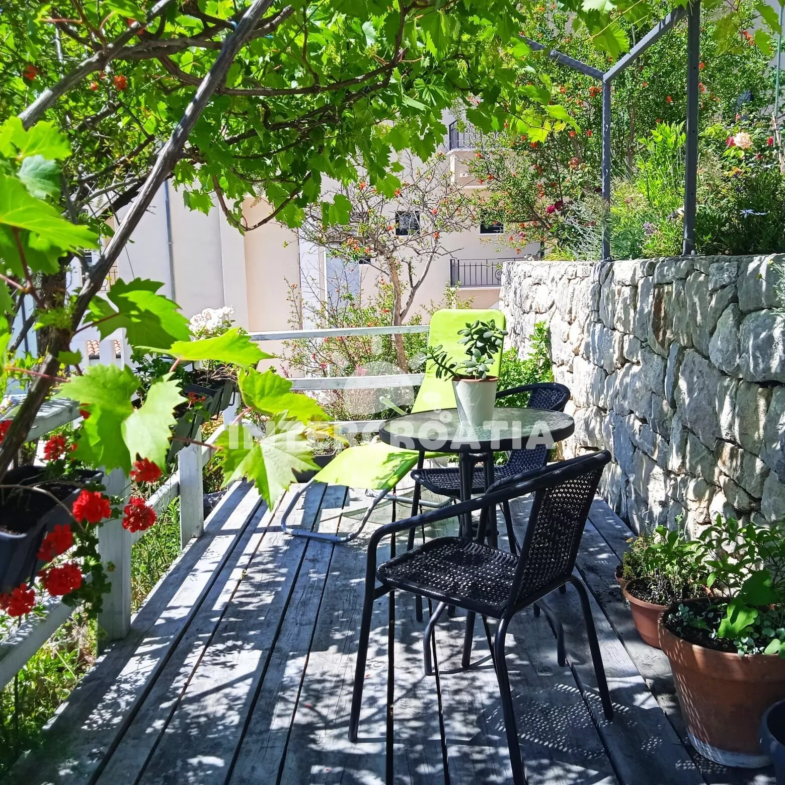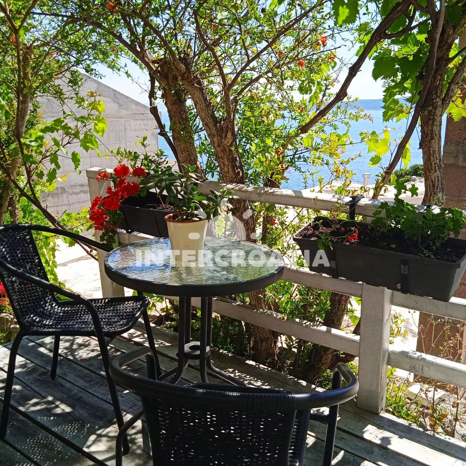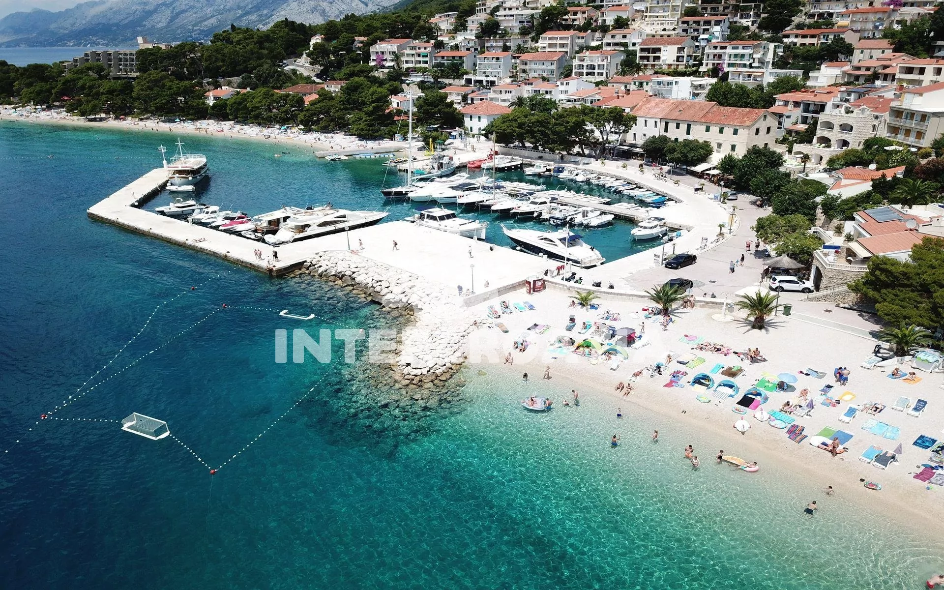 Vzdálenosti: Moře 180 m, pláž (oblázková) 280 m, centrum 250 m, market 200 m, restaurace 130 m, bar, půjčovna cyklistických kol a motorových člunů 300 m, lékárna 270 m, pošta 350 m, směnárna 400 m, přístav 180 m, tenisové kurty 800 m, veřejná doprava 1,2 km, potápění 2 km, ambulance 2,6 km, banka, čerpací stanice a diskotéka 15 km, park Plitvice 123 km, trajekt (Makarska) 15 km, letiště (Split) 68 km.
