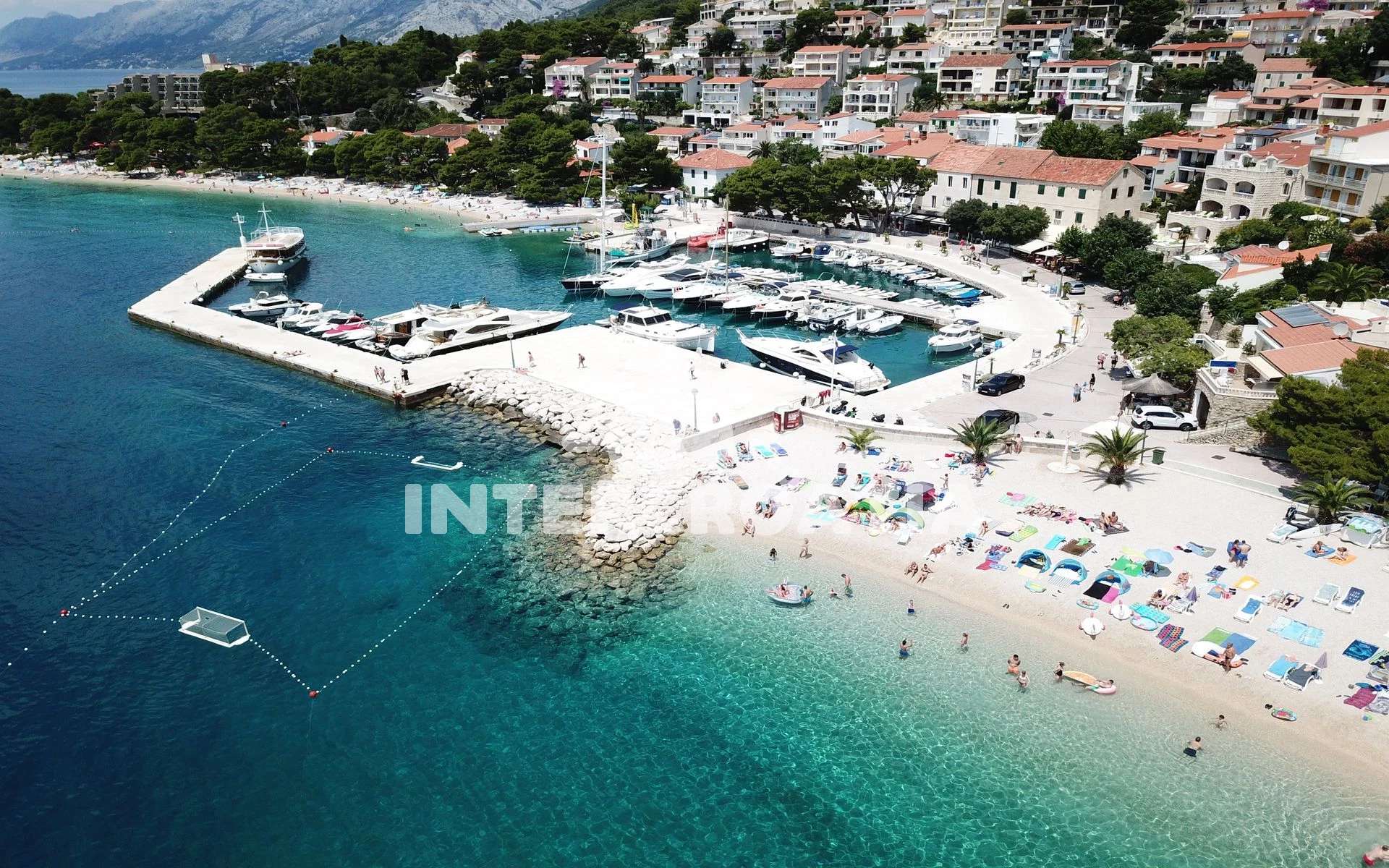 Vzdálenosti: Moře a pláž 7 m, restaurace 250 m, bar 27 m, obchod s potravinami 260 m, potápění 1,5 km, ambulance, lékárna, veřejná doprava a směnárna 3 km, tenisové kurty, mini golf, přístav, centrum a pošta 3,5 km, banka a čerpací stanice 15 km, trajekt (Makarska) 15 km, letiště (Split) 65 km.