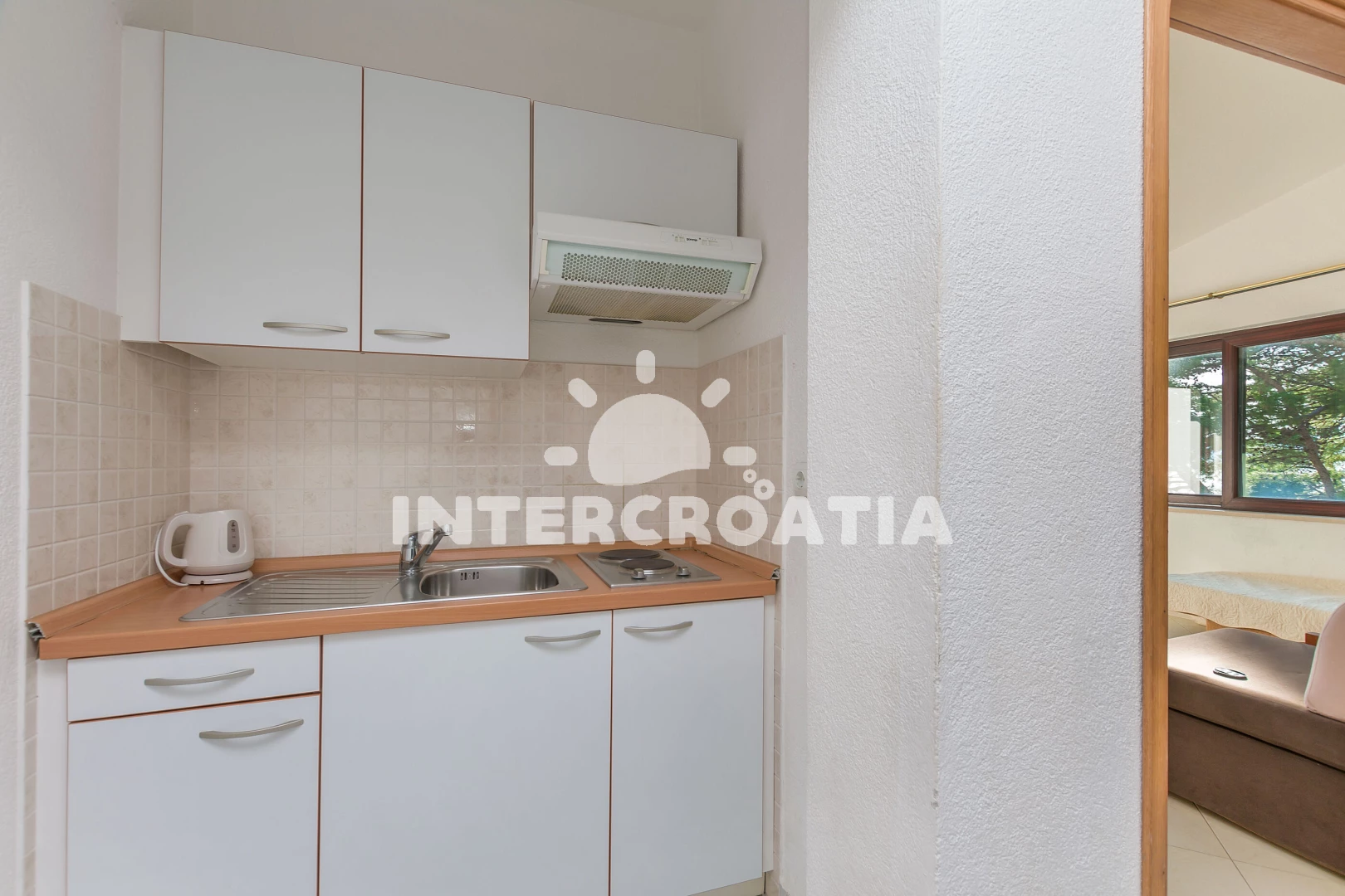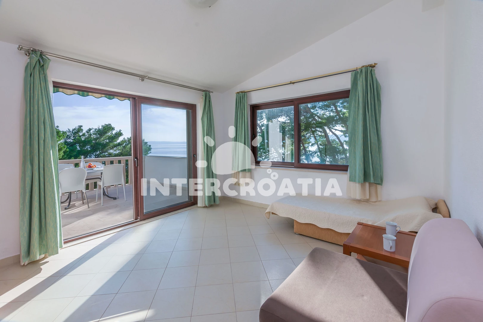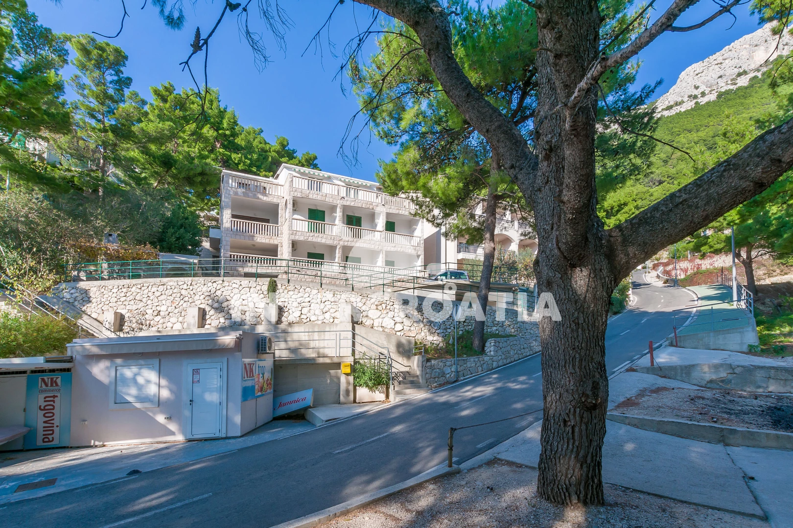 Vzdálenosti: Moře 50 m, pláž 45 m (oblázky), supermarket 10 m, restaurace 20 m, bar 50 m, půjčovna motorových člunů 200 m, půjčovna kol 200 m, veřejná doprava 800 m, marina 3 km, potápění 3 km, směnárna 3 km, mini golf 3 km, tenisové kurty 3 km, lékárna 3 km, pošta 3 km, centrum 3 km, banka 5 km, ambulance 5 km, čerpací stanice 12 km, trajekt (Makarska) 12 km, diskotéka 13 km, muzeum 13 km, letiště (Split) 90 km,