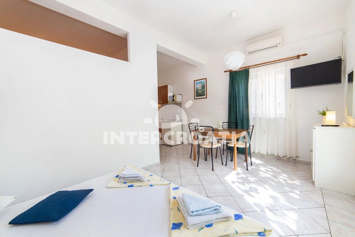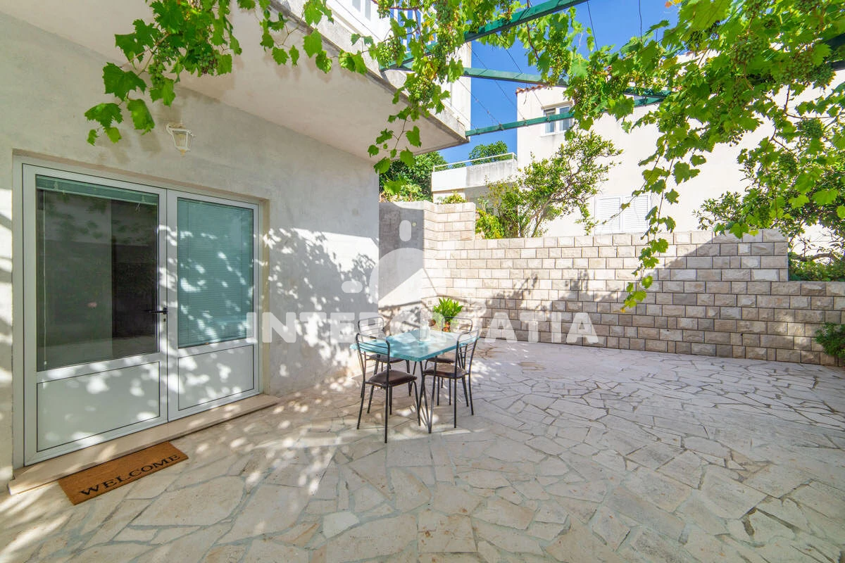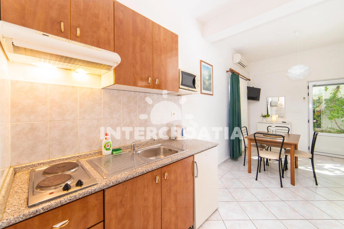 Vzdálenosti: Moře 50 m, pláž 50 m (oblázky), půjčovna motorových člunů 10 m, kotviště pro čluny 70 m, restaurace 70 m, bar 70 m, půjčovna kol 300 m, centrum 300 m, supermarket 300 m, veřejná doprava 400 m, směnárna 1 km, pošta 1 km, tenisové kurty 1,5 km, potápění 1,5 km, čerpací stanice 2 km, ambulance 2 km, lékárna 2 km, diskotéka 3 km, muzeum 4 km, trajekt (Drvenik) 10 km, banka 15 km, letiště (Split) 100 km,