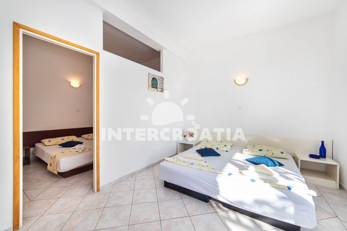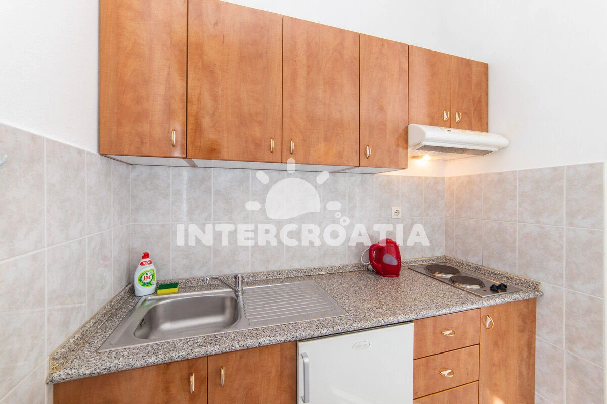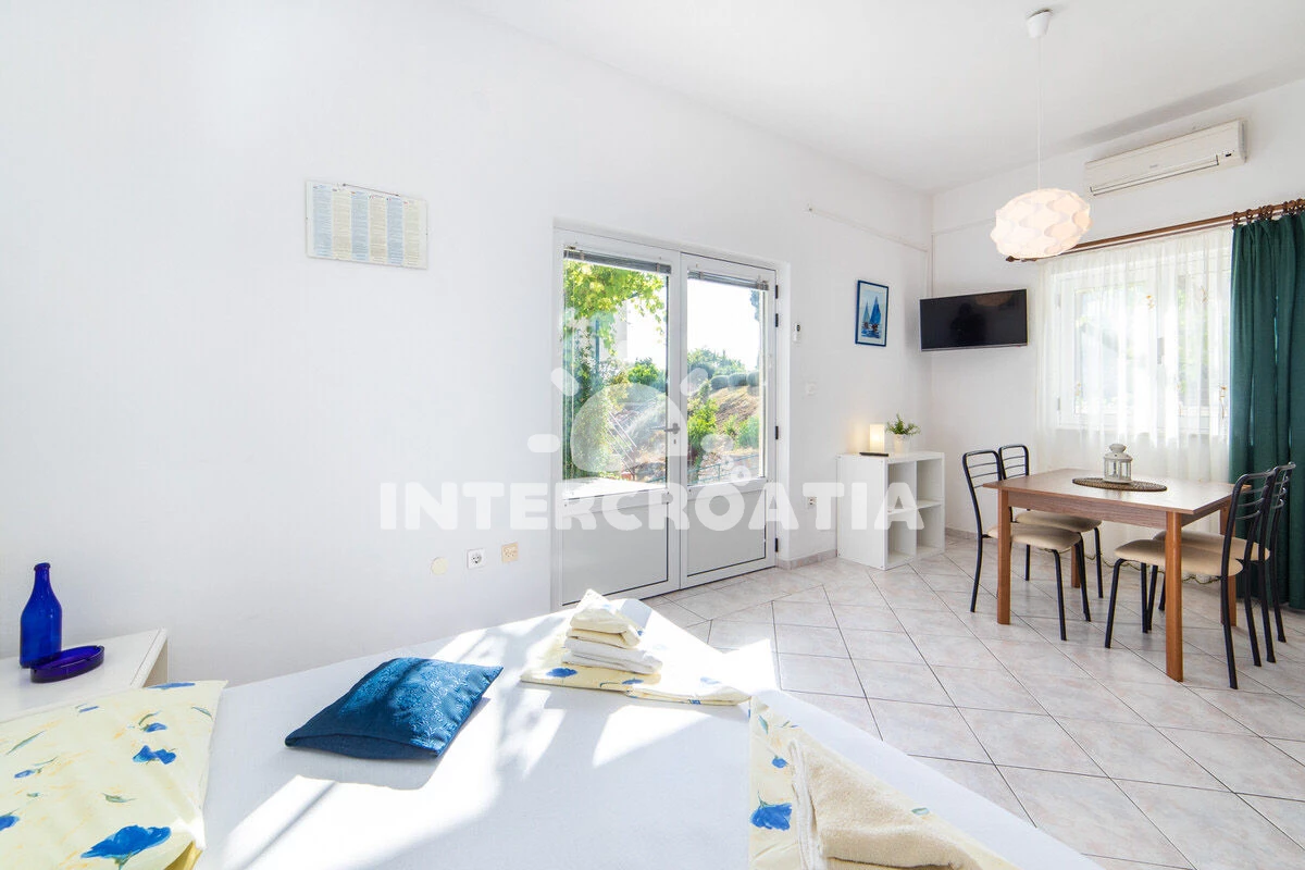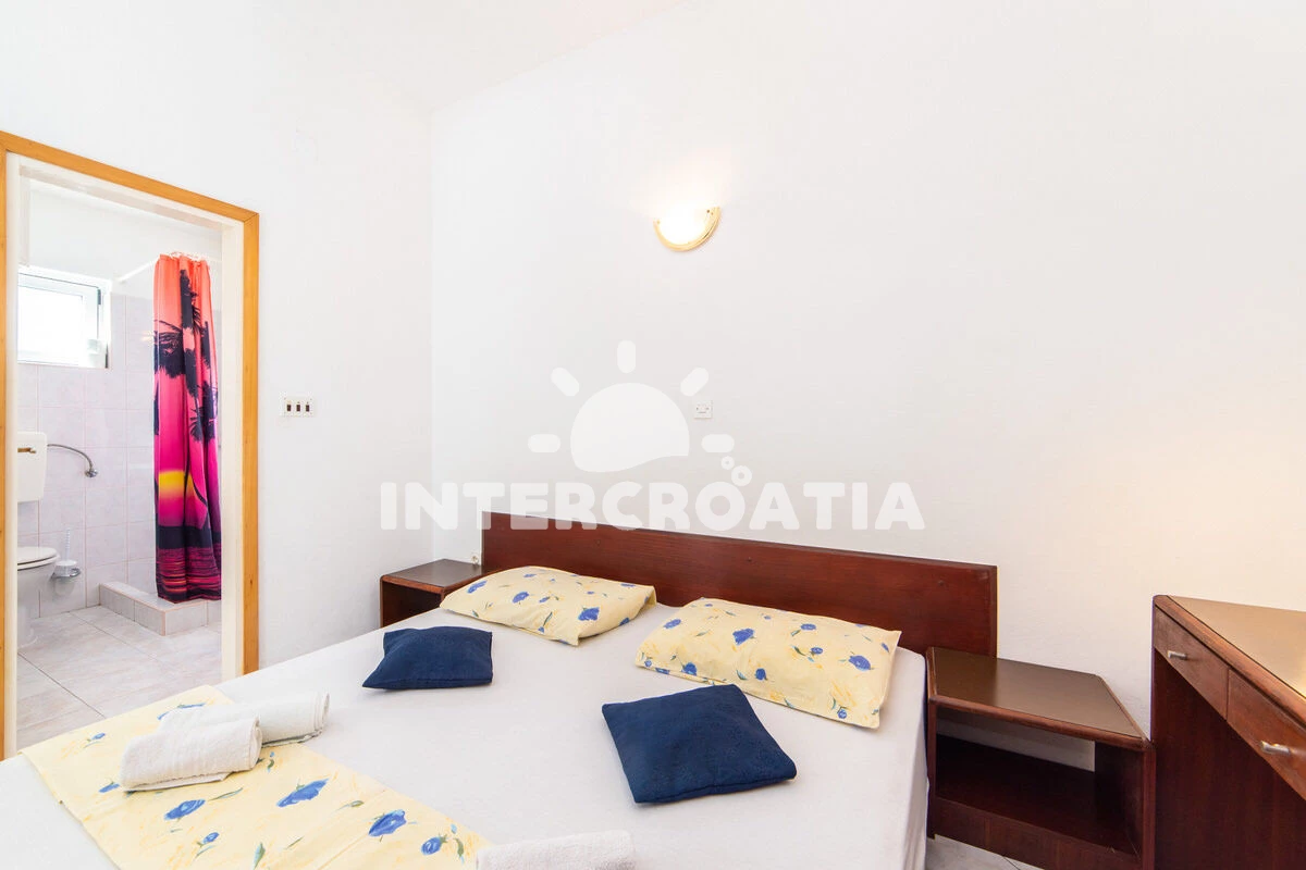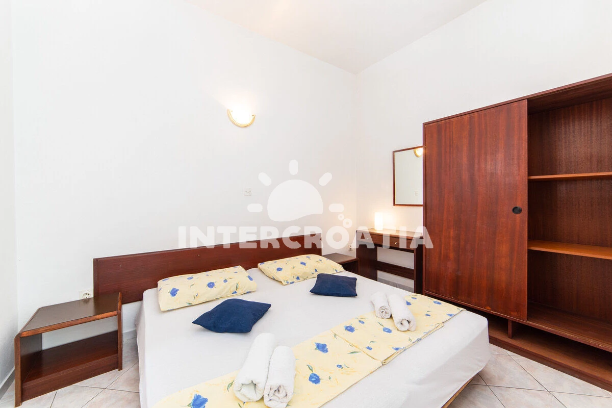Vzdálenosti: Moře 50 m, pláž 50 m (oblázky), půjčovna motorových člunů 10 m, kotviště pro čluny 70 m, restaurace 70 m, bar 70 m, půjčovna kol 300 m, centrum 300 m, supermarket 300 m, veřejná doprava 400 m, směnárna 1 km, pošta 1 km, tenisové kurty 1,5 km, potápění 1,5 km, čerpací stanice 2 km, ambulance 2 km, lékárna 2 km, diskotéka 3 km, muzeum 4 km, trajekt (Drvenik) 10 km, banka 15 km, letiště (Split) 100 km,