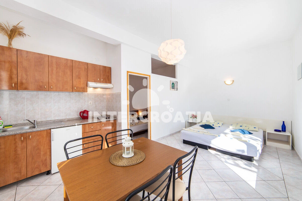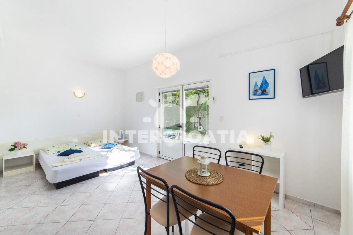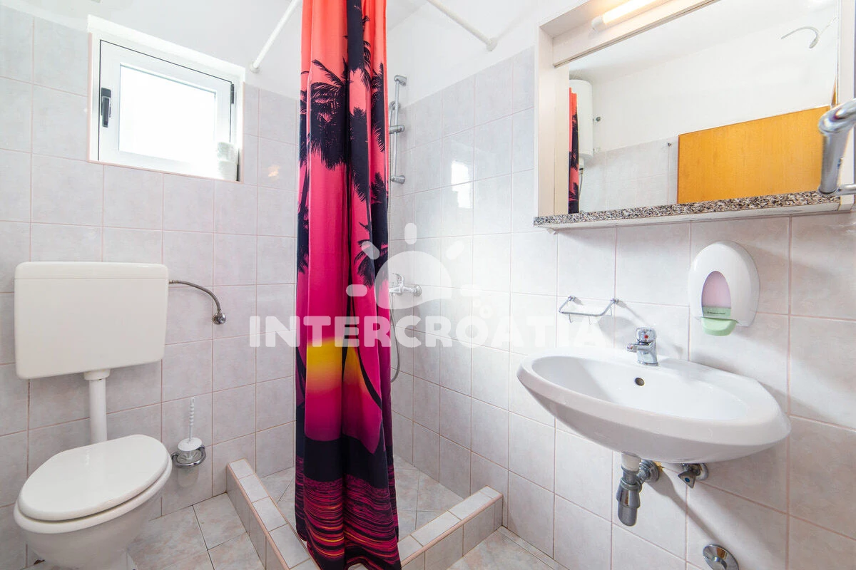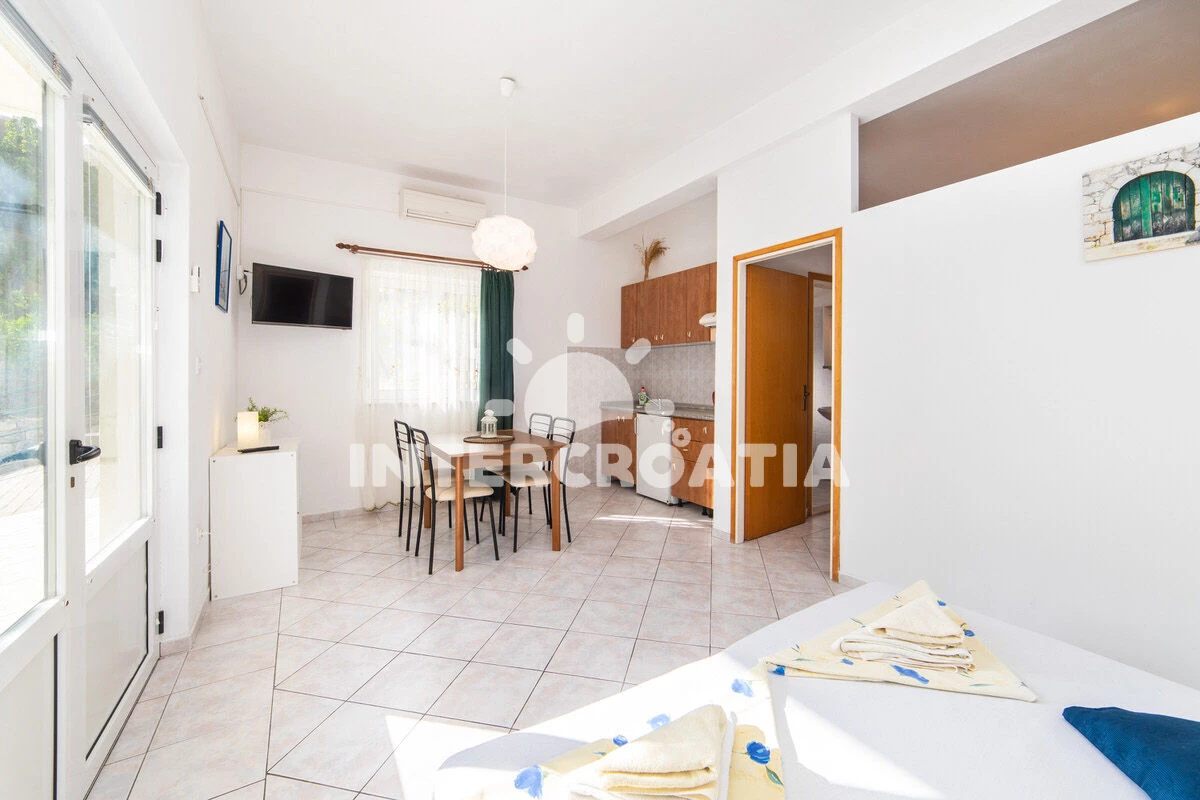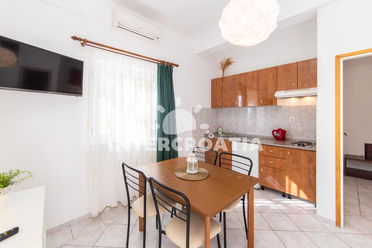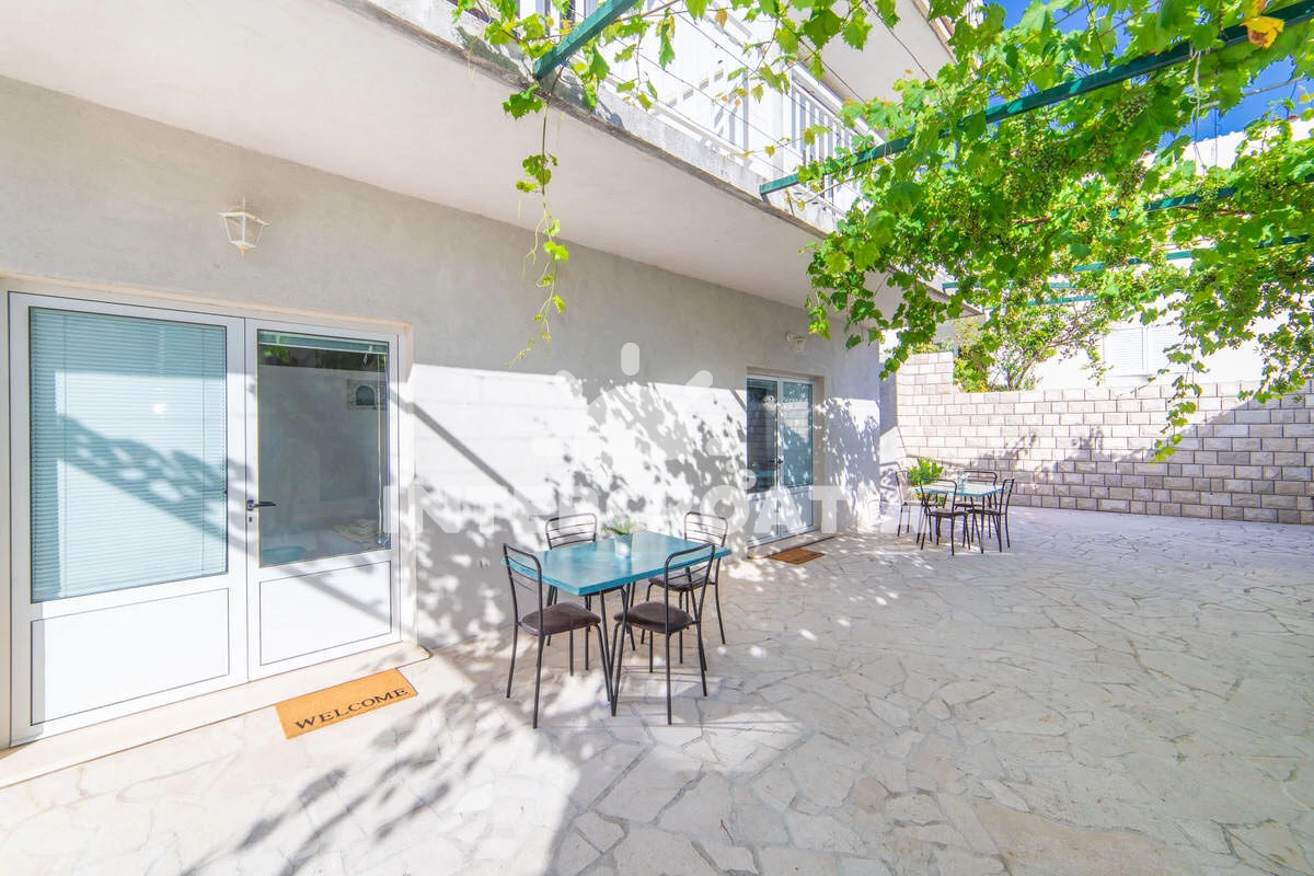 Vzdálenosti: Moře 50 m, pláž 50 m (oblázky), půjčovna motorových člunů 10 m, kotviště pro čluny 70 m, restaurace 70 m, bar 70 m, půjčovna kol 300 m, centrum 300 m, supermarket 300 m, veřejná doprava 400 m, směnárna 1 km, pošta 1 km, tenisové kurty 1,5 km, potápění 1,5 km, čerpací stanice 2 km, ambulance 2 km, lékárna 2 km, diskotéka 3 km, muzeum 4 km, trajekt (Drvenik) 10 km, banka 15 km, letiště (Split) 100 km,