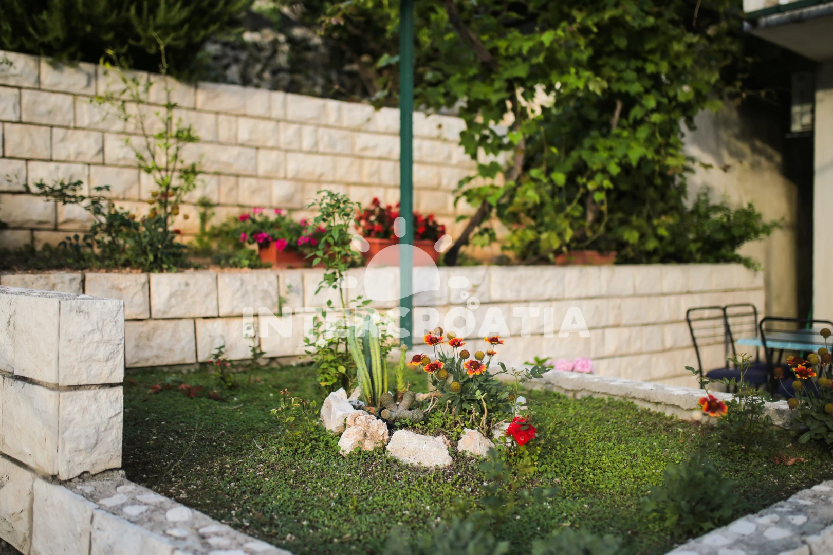 Vzdálenosti: Moře 50 m, pláž 50 m (oblázky), půjčovna motorových člunů 10 m, kotviště pro čluny 70 m, restaurace 70 m, bar 70 m, půjčovna kol 300 m, centrum 300 m, supermarket 300 m, veřejná doprava 400 m, směnárna 1 km, pošta 1 km, tenisové kurty 1,5 km, potápění 1,5 km, čerpací stanice 2 km, ambulance 2 km, lékárna 2 km, diskotéka 3 km, muzeum 4 km, trajekt (Drvenik) 10 km, banka 15 km, letiště (Split) 100 km,