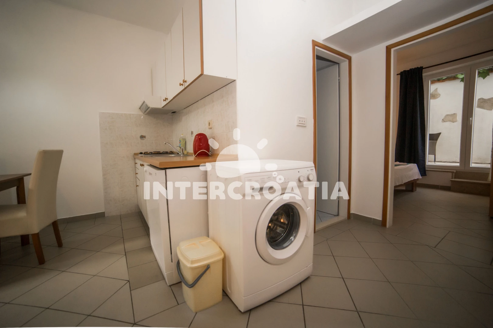 Apartmán se nachází 50 m od moře a pláže. Pláž je oblázková.