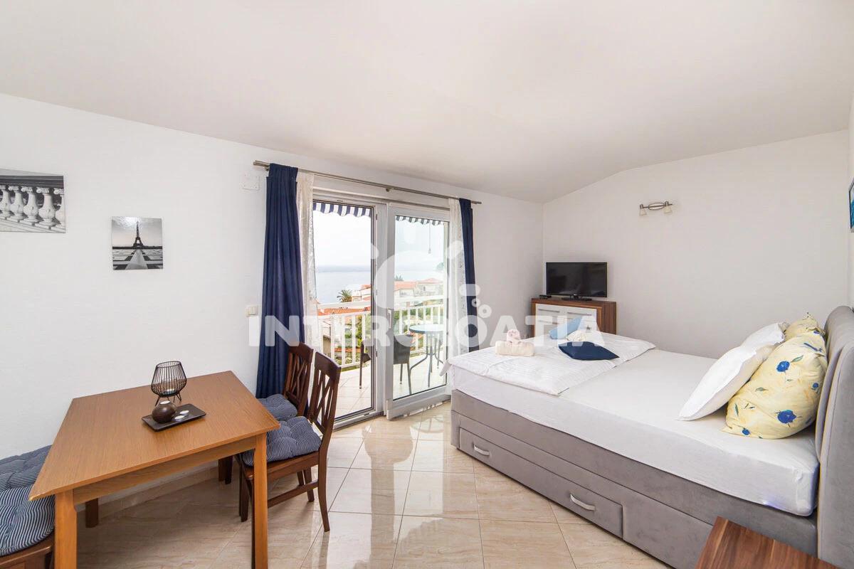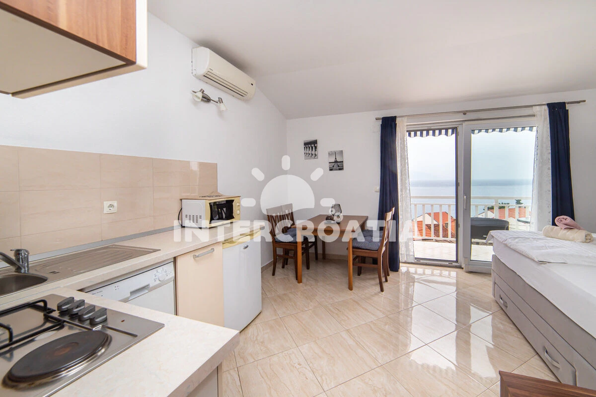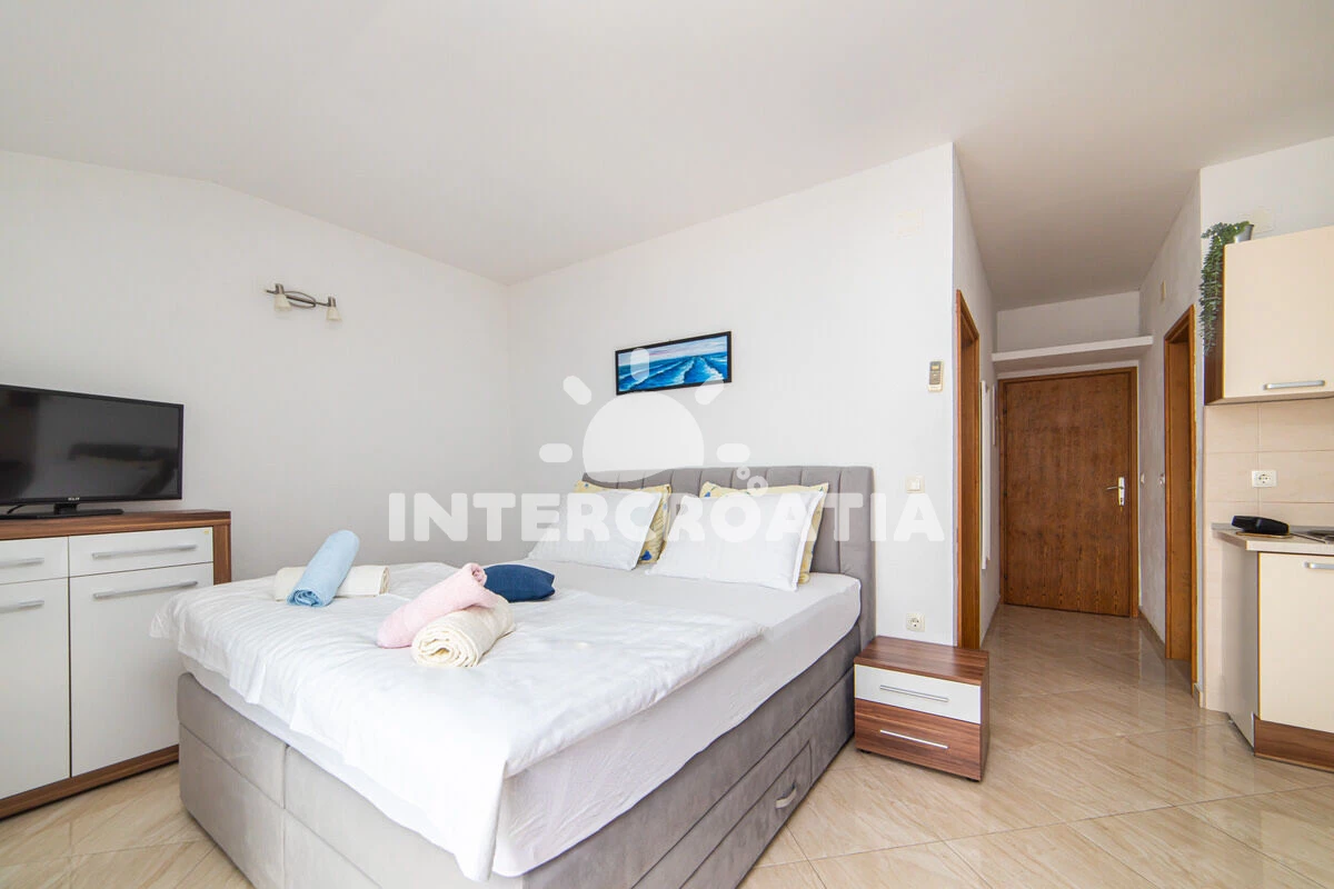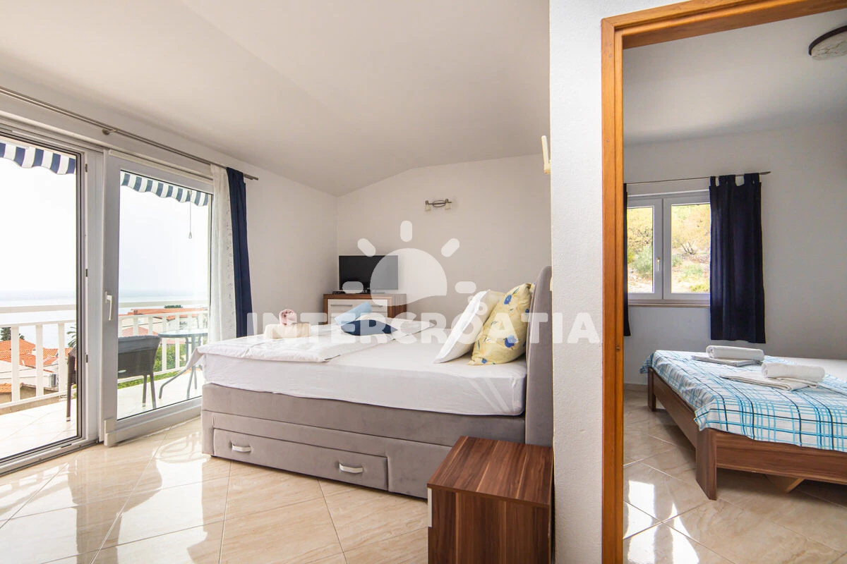 Vzdálenosti: Moře 50 m, pláž 50 m (oblázky), půjčovna motorových člunů 10 m, kotviště pro čluny 70 m, restaurace 70 m, bar 70 m, půjčovna kol 300 m, centrum 300 m, supermarket 300 m, veřejná doprava 400 m, směnárna 1 km, pošta 1 km, tenisové kurty 1,5 km, potápění 1,5 km, čerpací stanice 2 km, ambulance 2 km, lékárna 2 km, diskotéka 3 km, muzeum 4 km, trajekt (Drvenik) 10 km, banka 15 km, letiště (Split) 100 km,