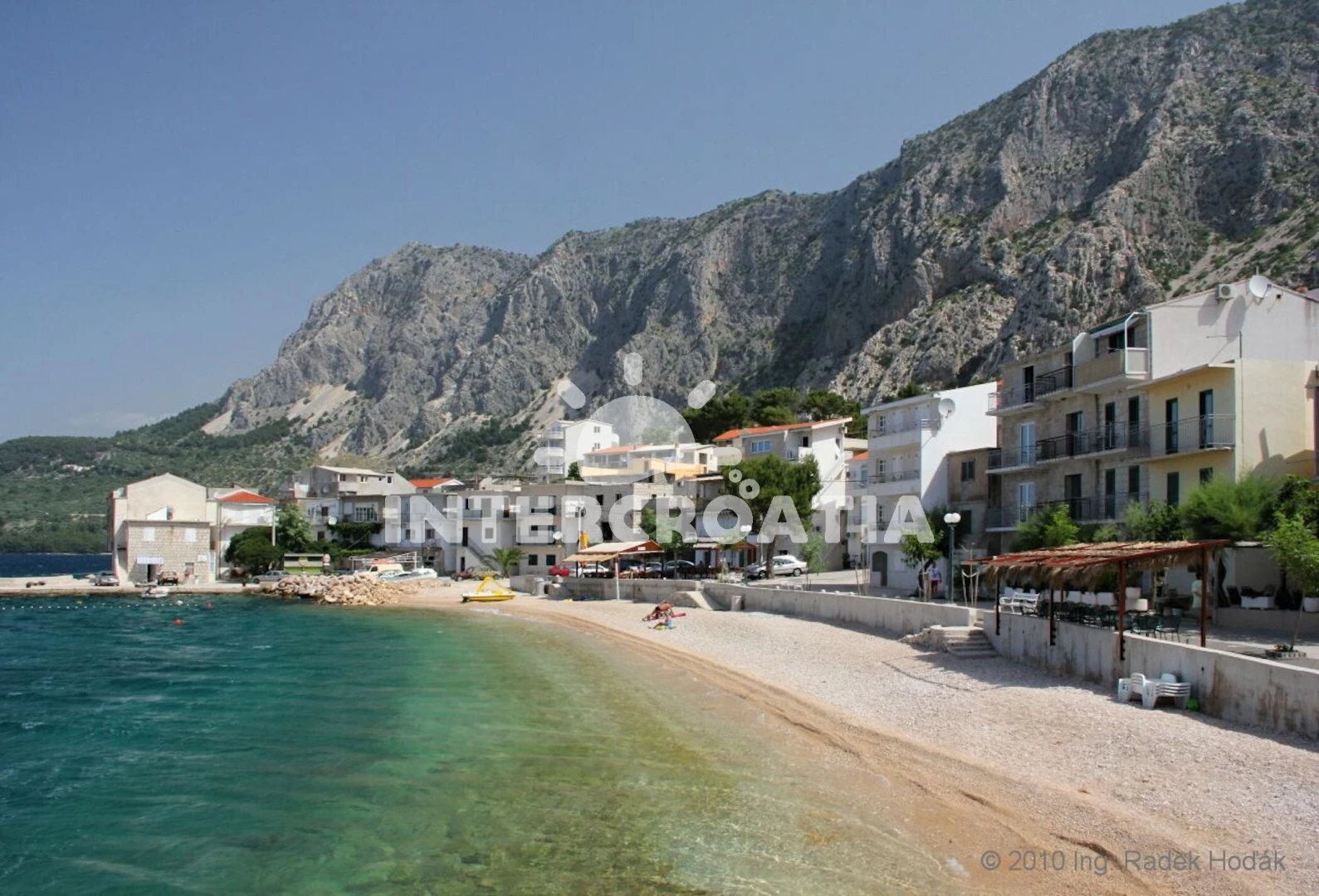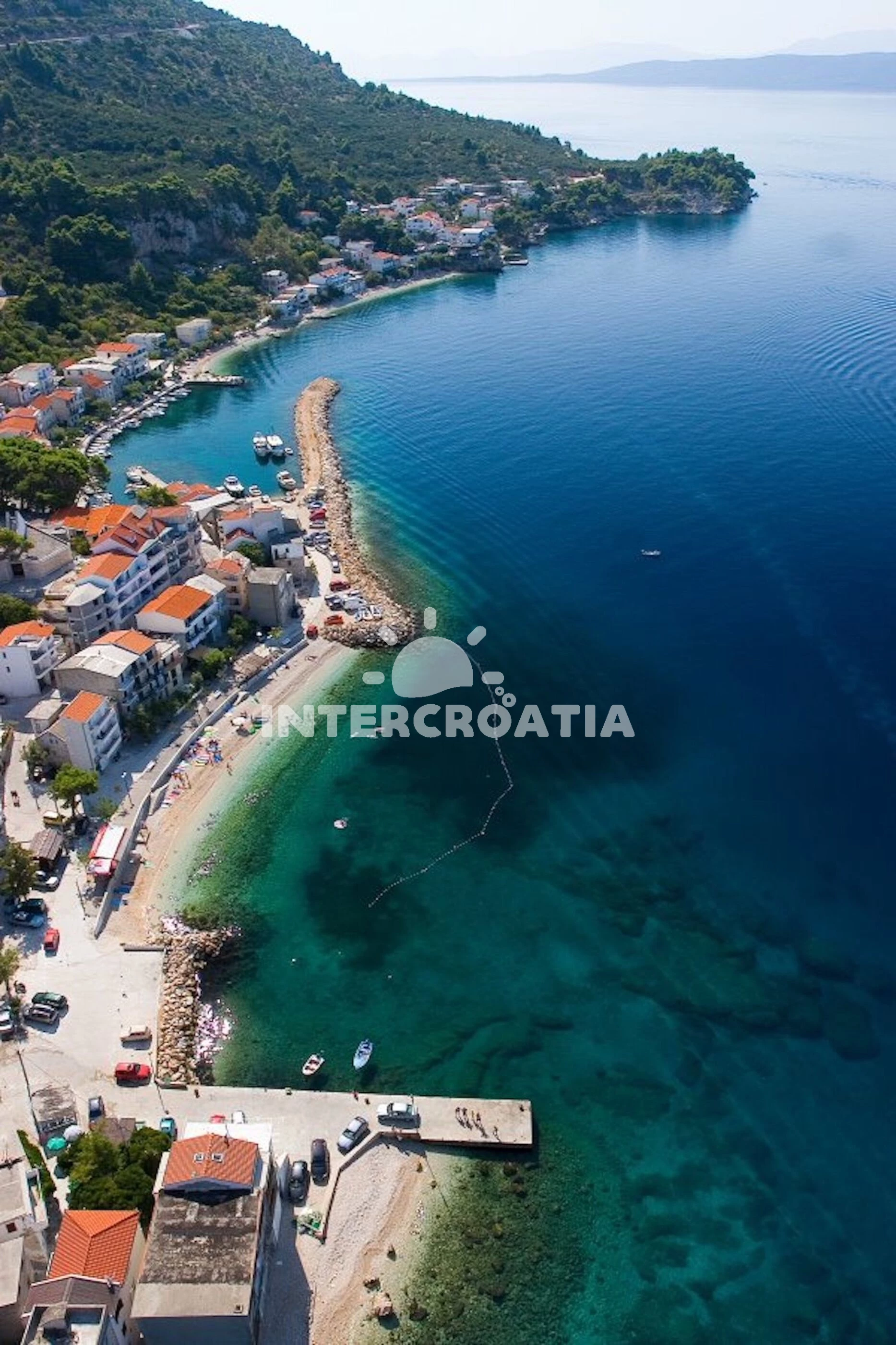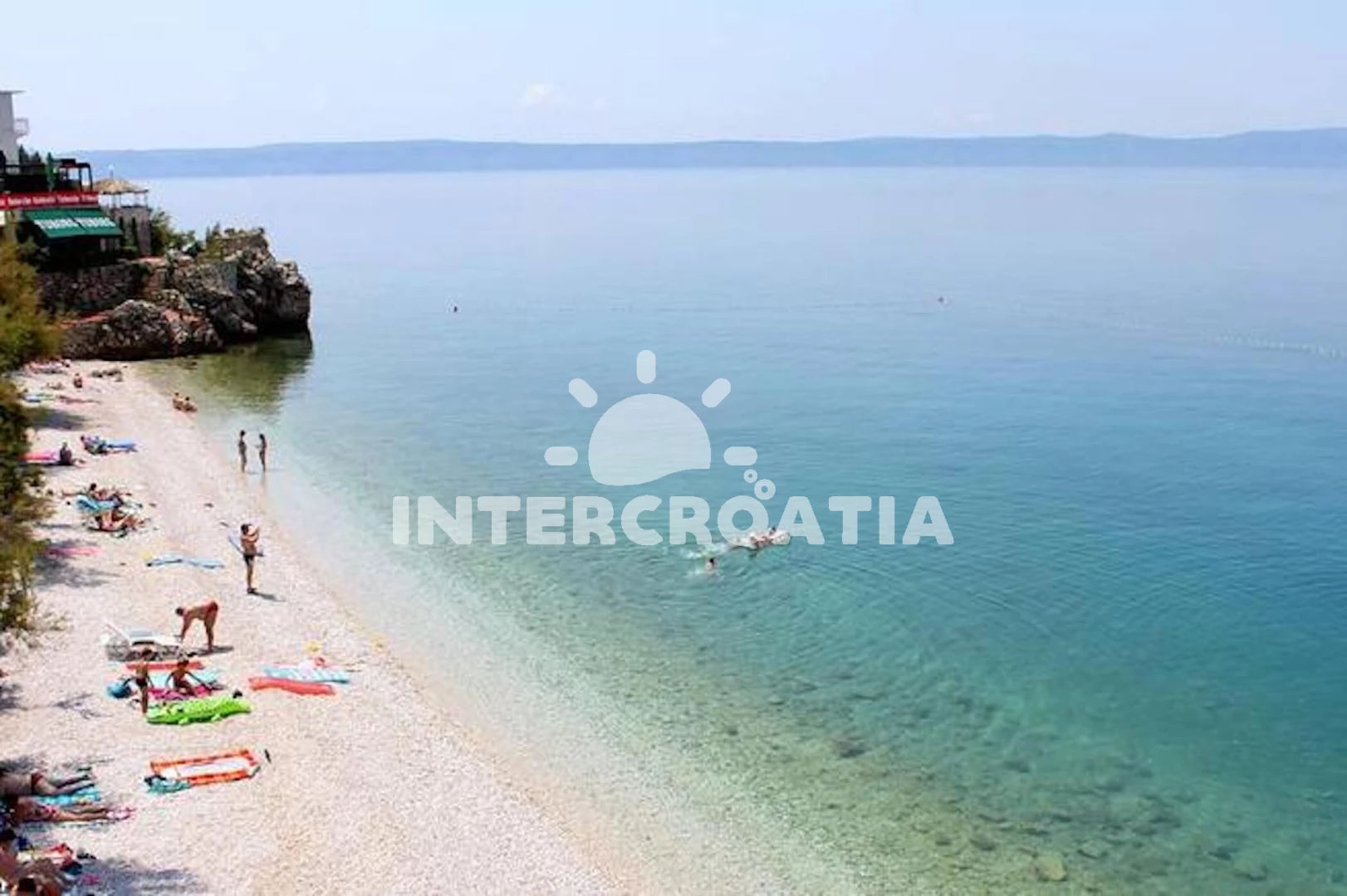 Vzdálenosti: půjčovna kol 0 m, Moře 30 m, pláž 20 m (písčitá a oblázková), bar 5 m, centrum 10 m, restaurace 50 m, marina 250 m, kotviště pro čluny 250 m, supermarket 300 m, půjčovna motorových člunů 350 m, veřejná doprava 400 m, směnárna 3 km, čerpací stanice 3 km, pošta 3 km, potápění 3 km, lékárna 3 km, ambulance 3 km, diskotéka 7 km, tenisové kurty 7 km, trajekt (Makarska) 12 km, banka 12 km, muzeum 12 km, mini golf 12 km, letiště (Split) 70 km, park Plitvice 200 km,