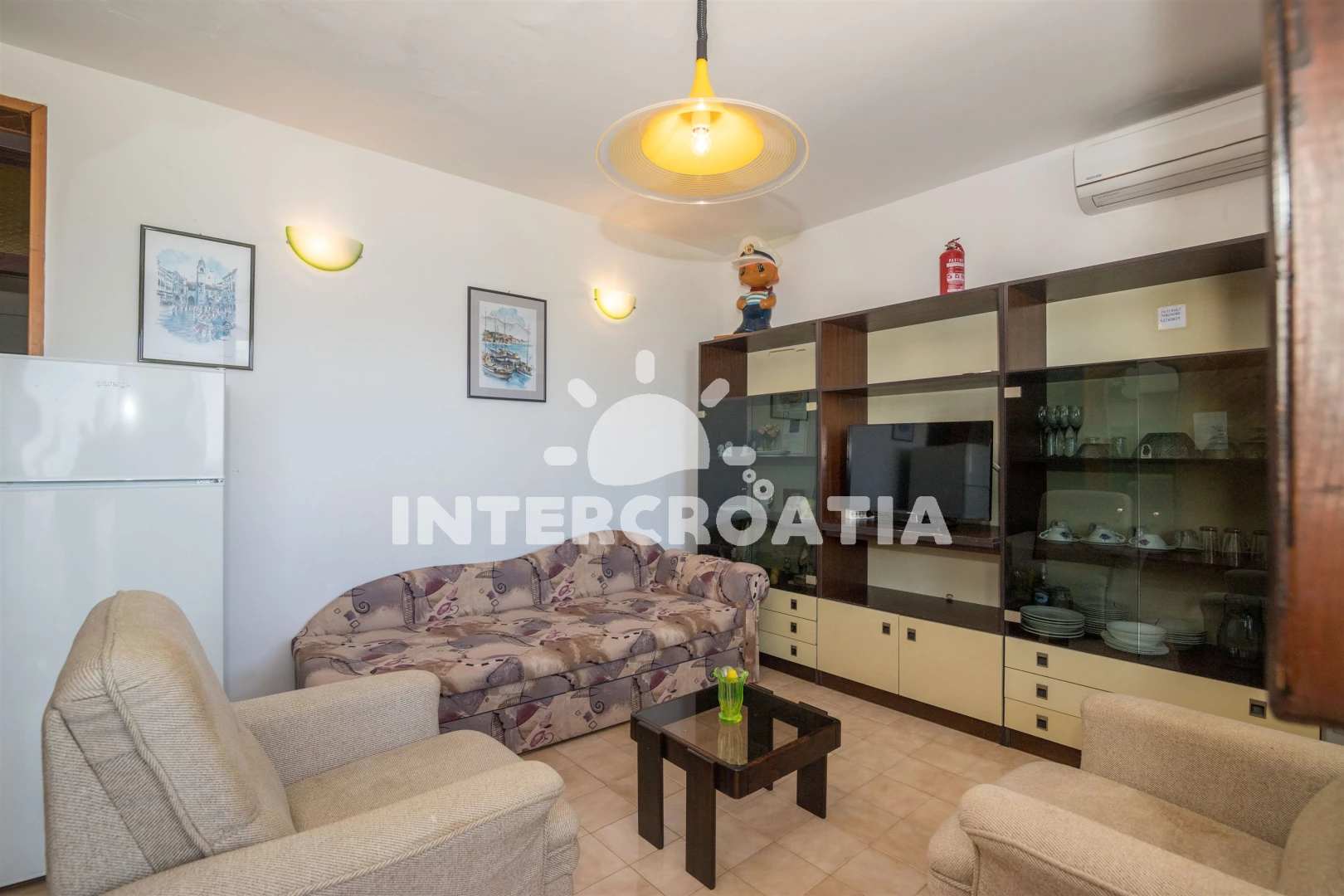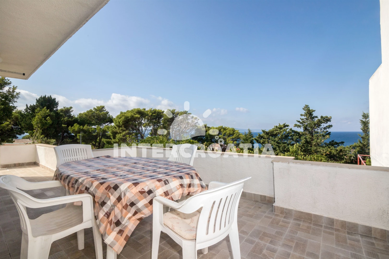 Apartmán (70 m2) s balkonem, s terasou, a výhledem na moře. Nachází se v 1. patře objektu. Apartmán má 2 ložnice a je vhodný pro až 5 osob. Kuchyňská linka je vybavena varnou deskou, troubou, nádobím…