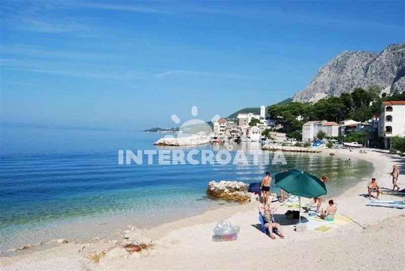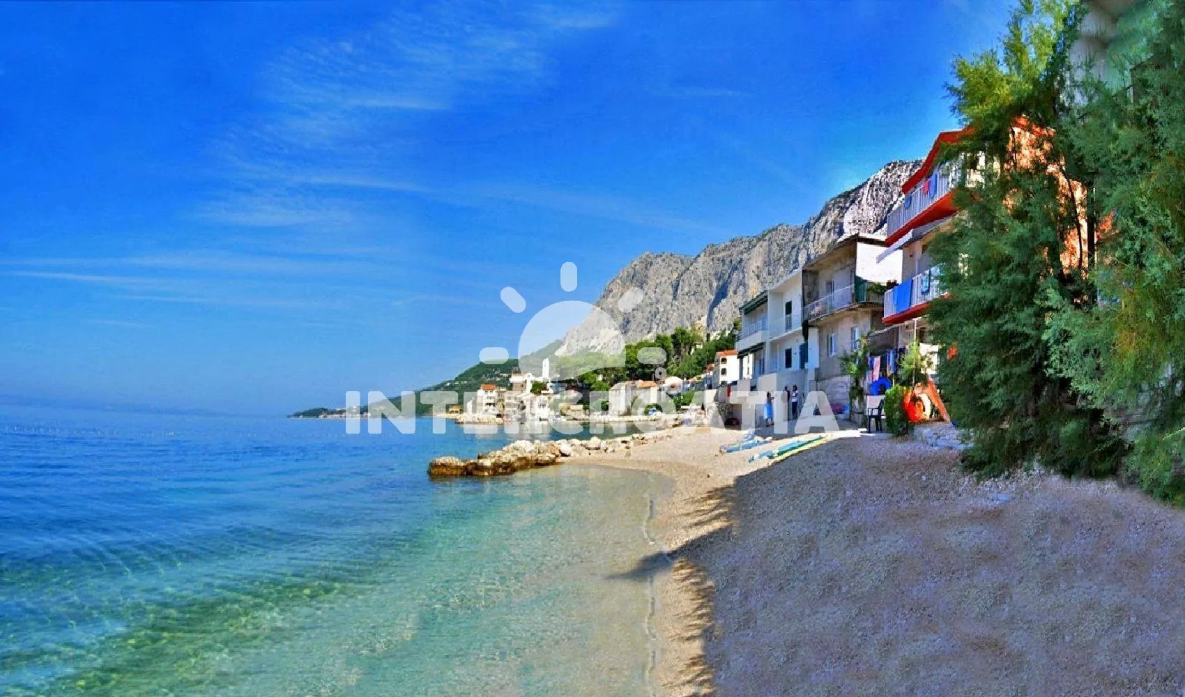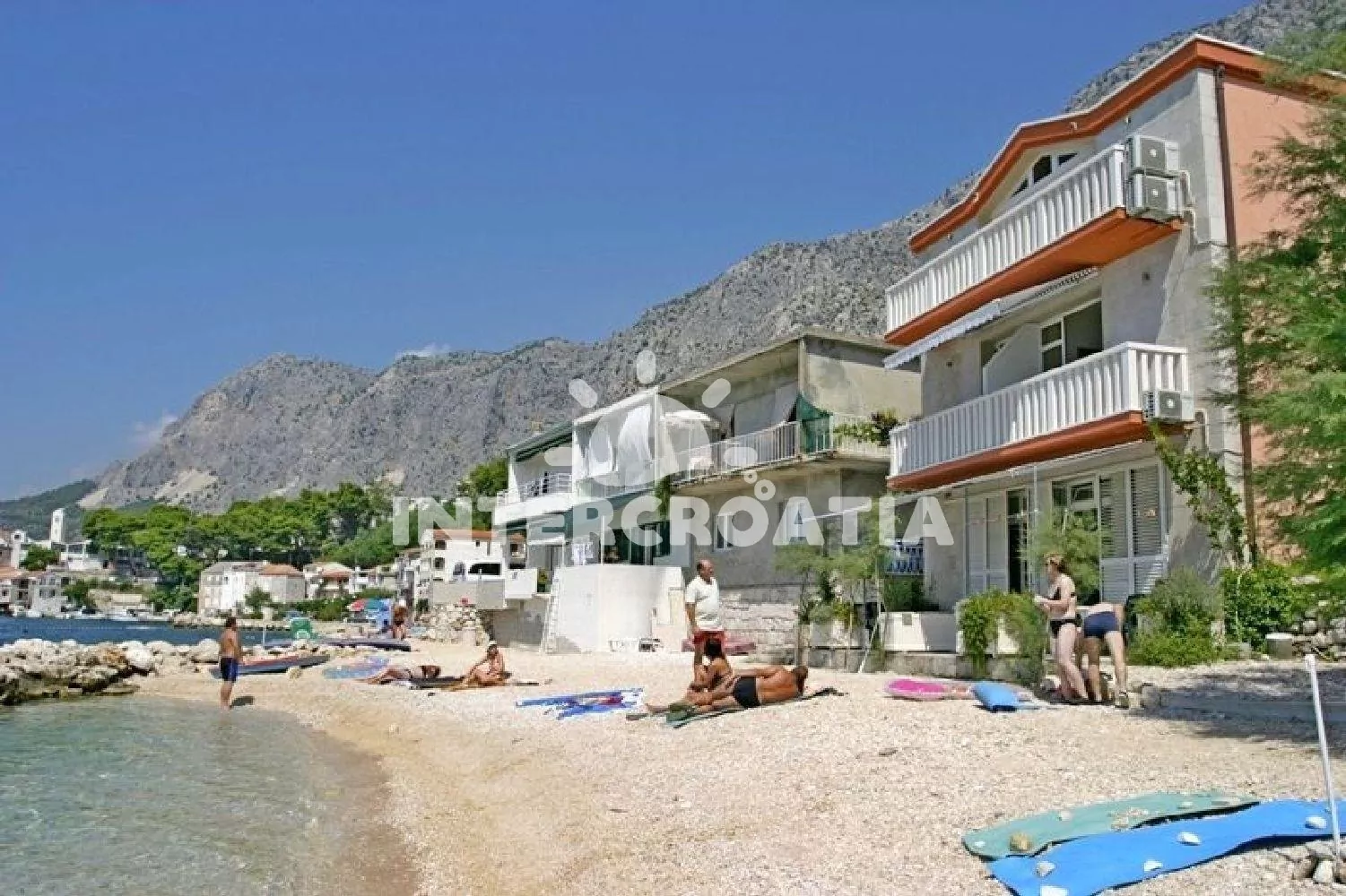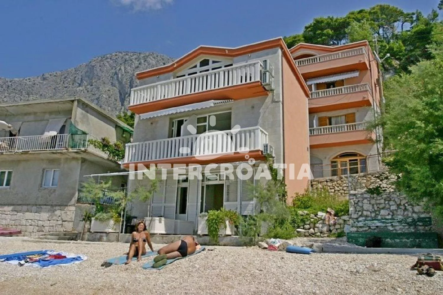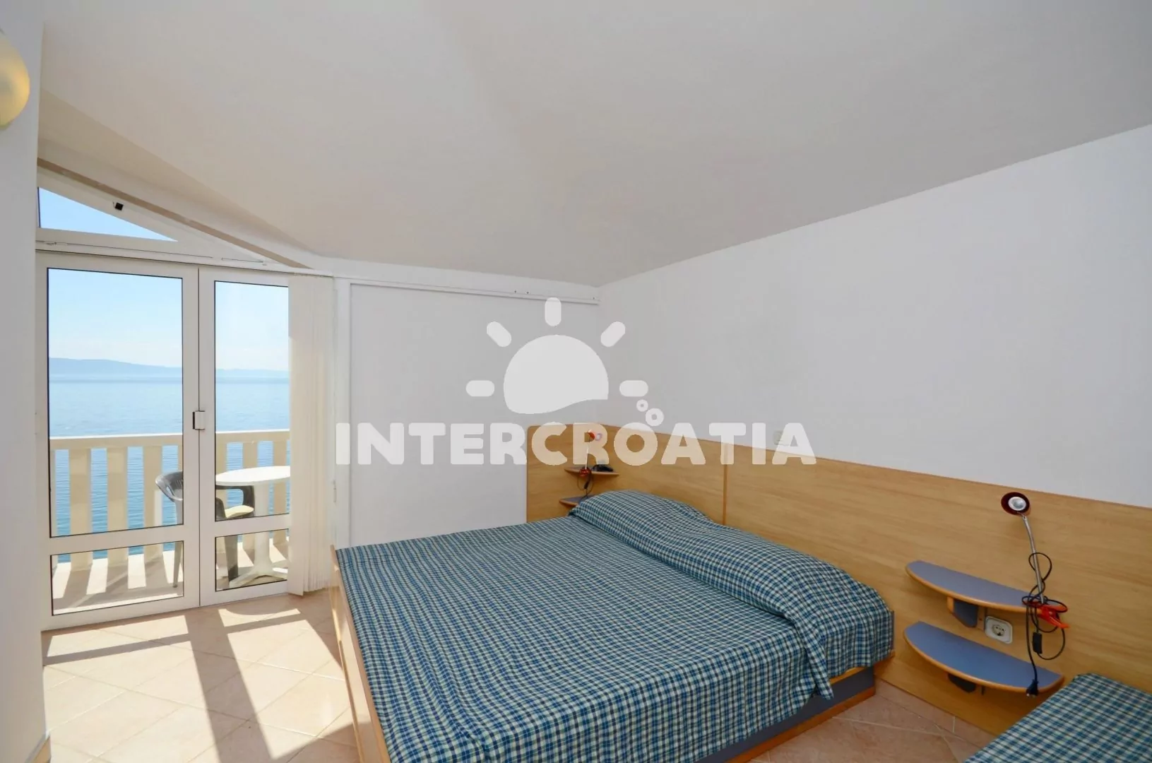 Jedinečně umístěný apartmánový dům s balkonem leží přímo u břehu moře a oblázkové pláže.