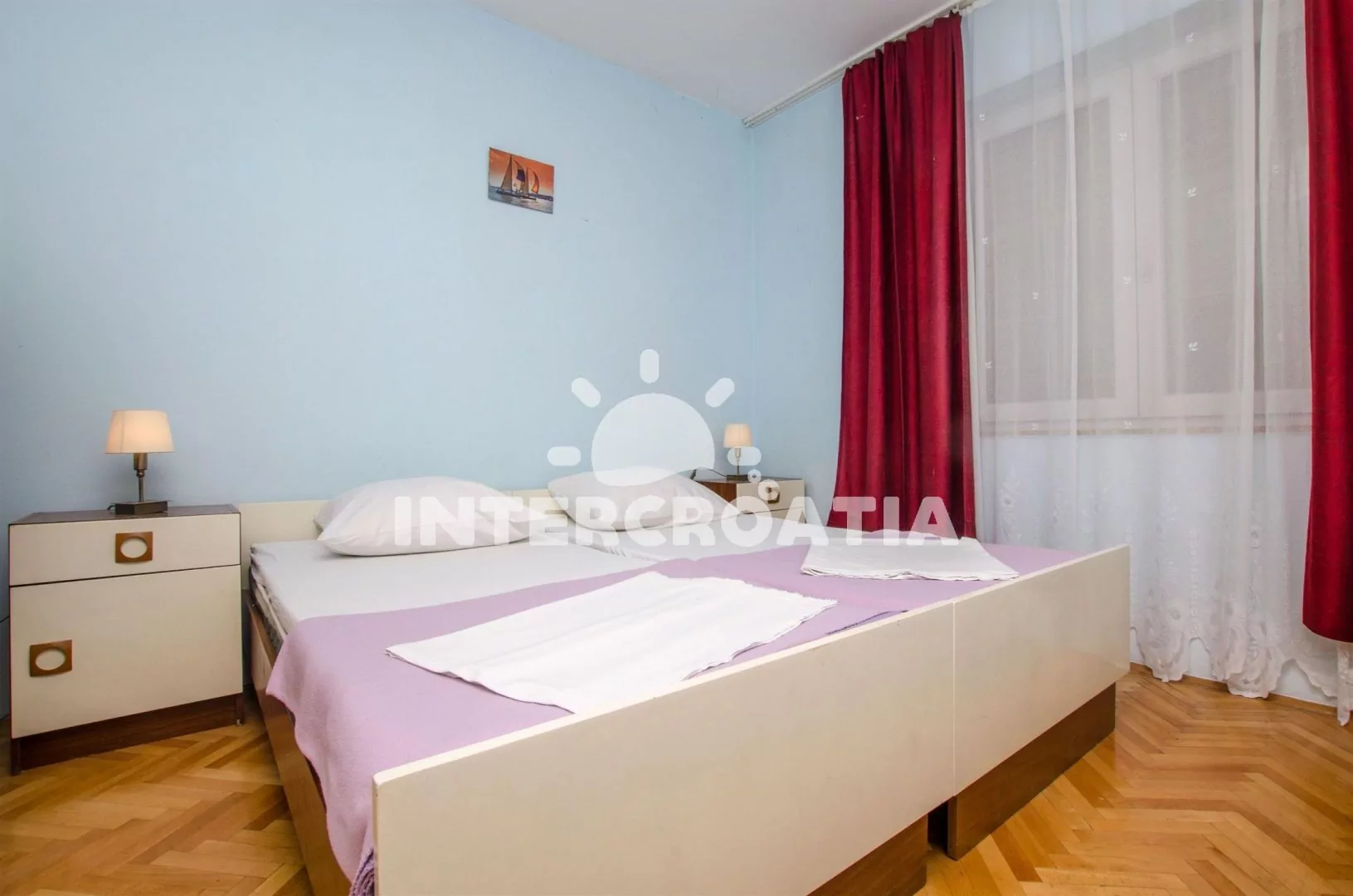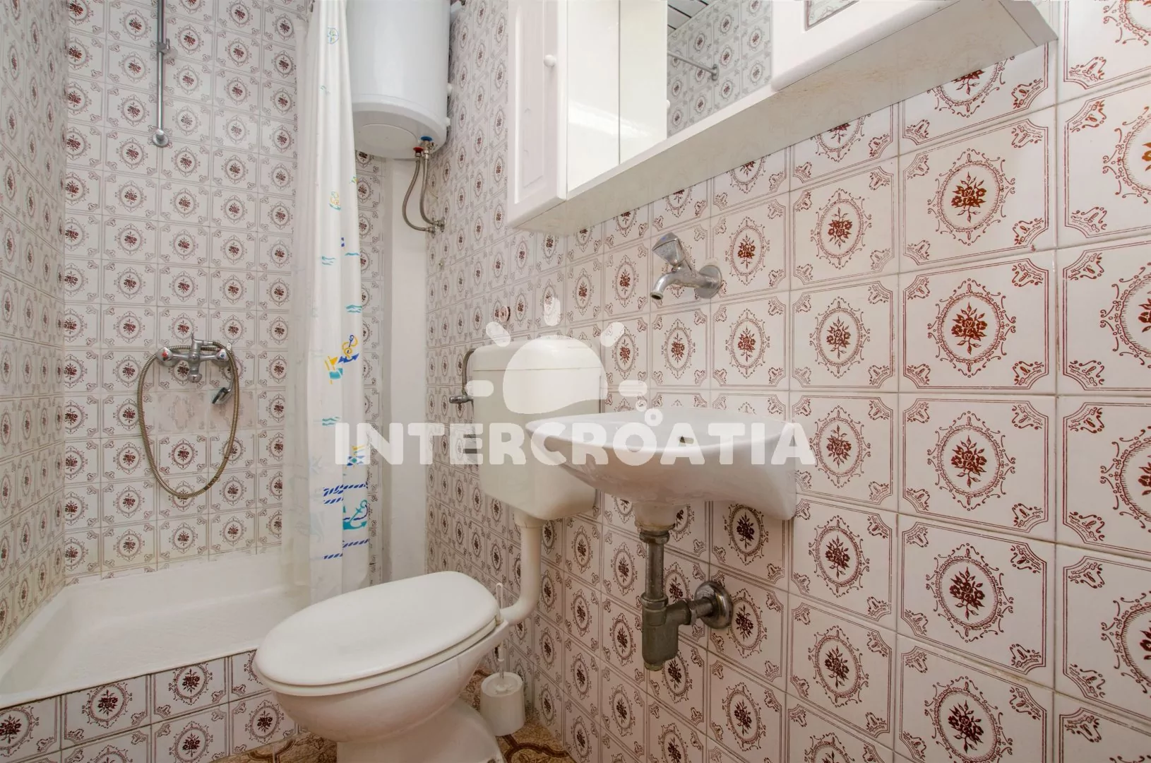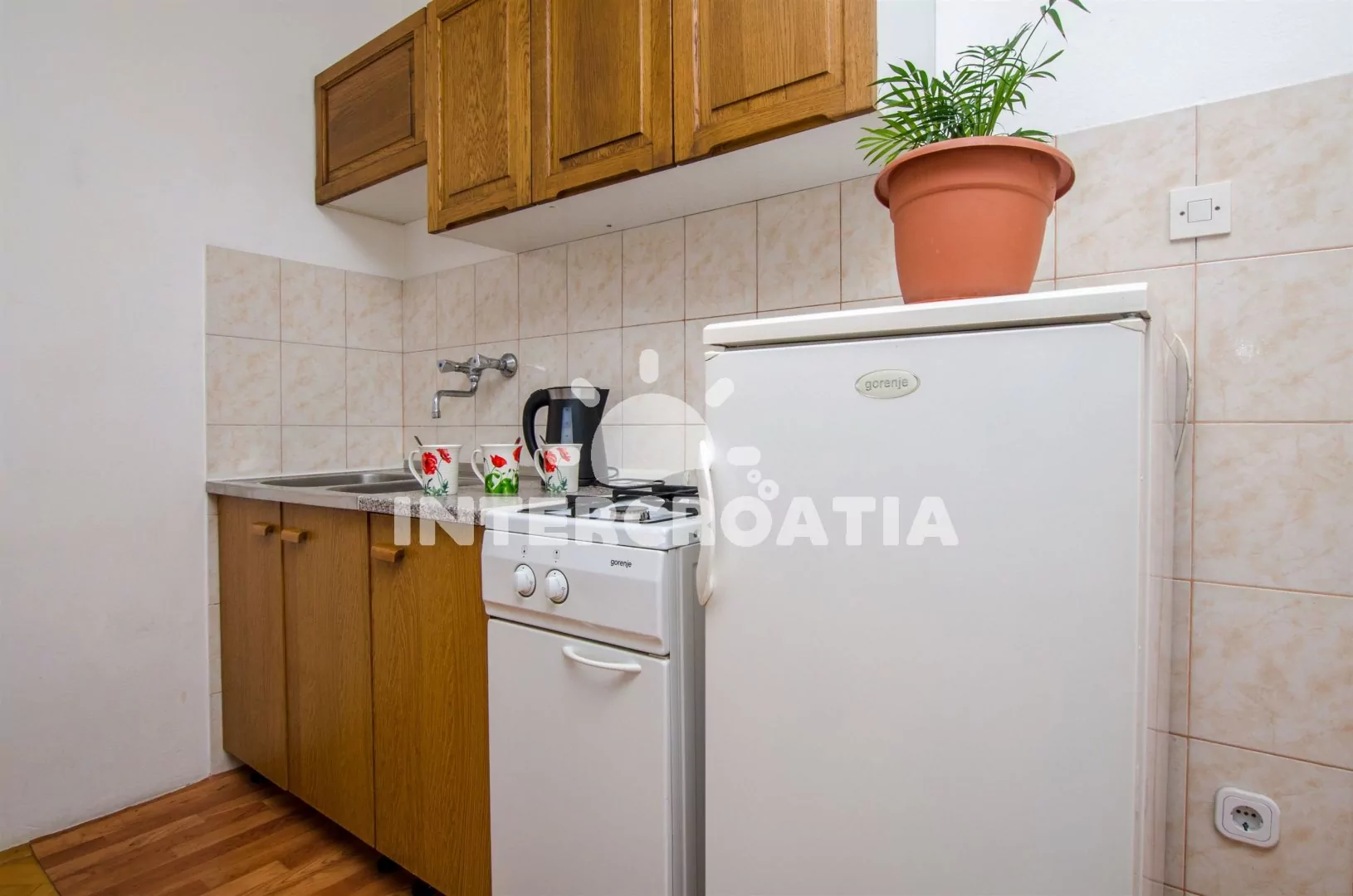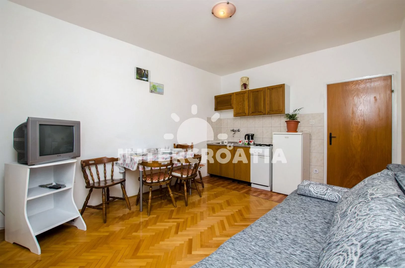 Apartmán v prvním patře domu s výhledem na moře a terasou je vhodný pro 2 až 4 osoby. Obývací pokoj je spojený s kuchyní. Kuchyňská linka s dvouplotýnkovým sporákem, kávovarem, rychlovarnou konvicí,…