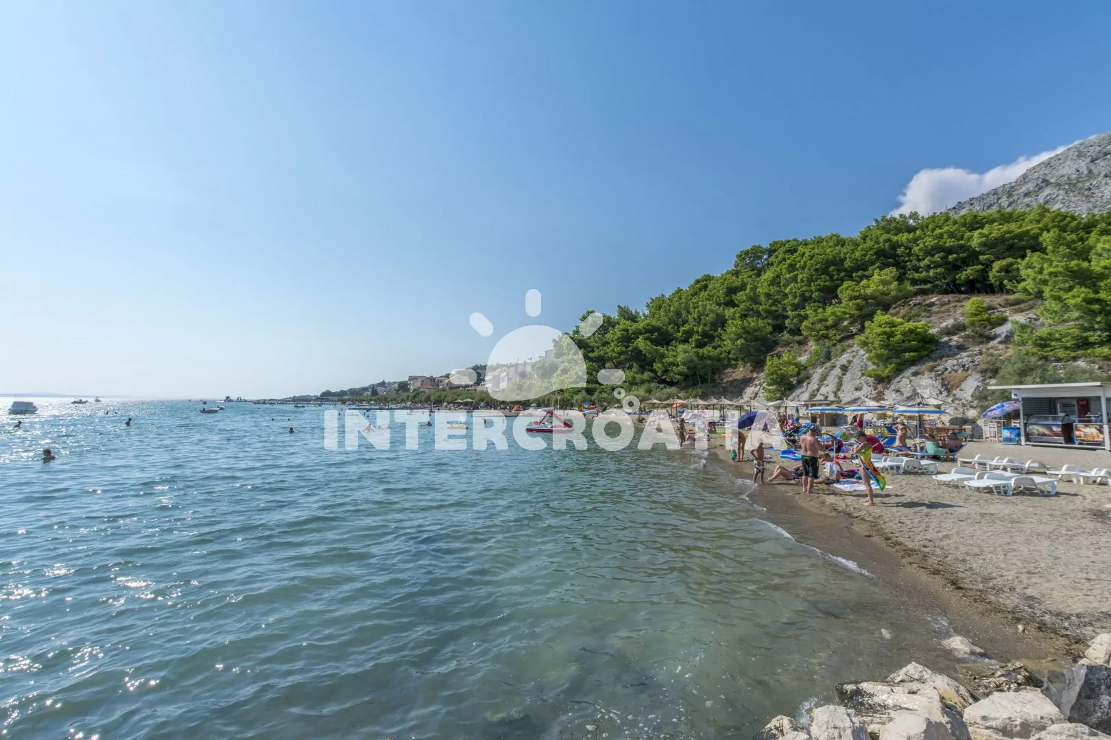 Vzdálenosti: Moře 120 m, pláž (písek, v blízkosti přístupová cesta) 180 m, obchod 600 m, centrum 1300 m, pošta 1500 m, lékárna 200 m, zdravotní středisko 2500 m, restaurace 600 m, směnárna 600 m, banka 1000 m, muzeum 1500 m, bar 180 m, půjčovna kol 1500 m, půjčovna motorových člunů 1500 m, kotviště pro čluny 1500 km, potápěčský klub 1500 m, tenisové kurty 600 m, čerpací stanice 700 m, veřejná doprava 200 m, diskotéka 20 km, přístav 1500 m, trajekt 25 km (Split), letiště 45 km (Split).