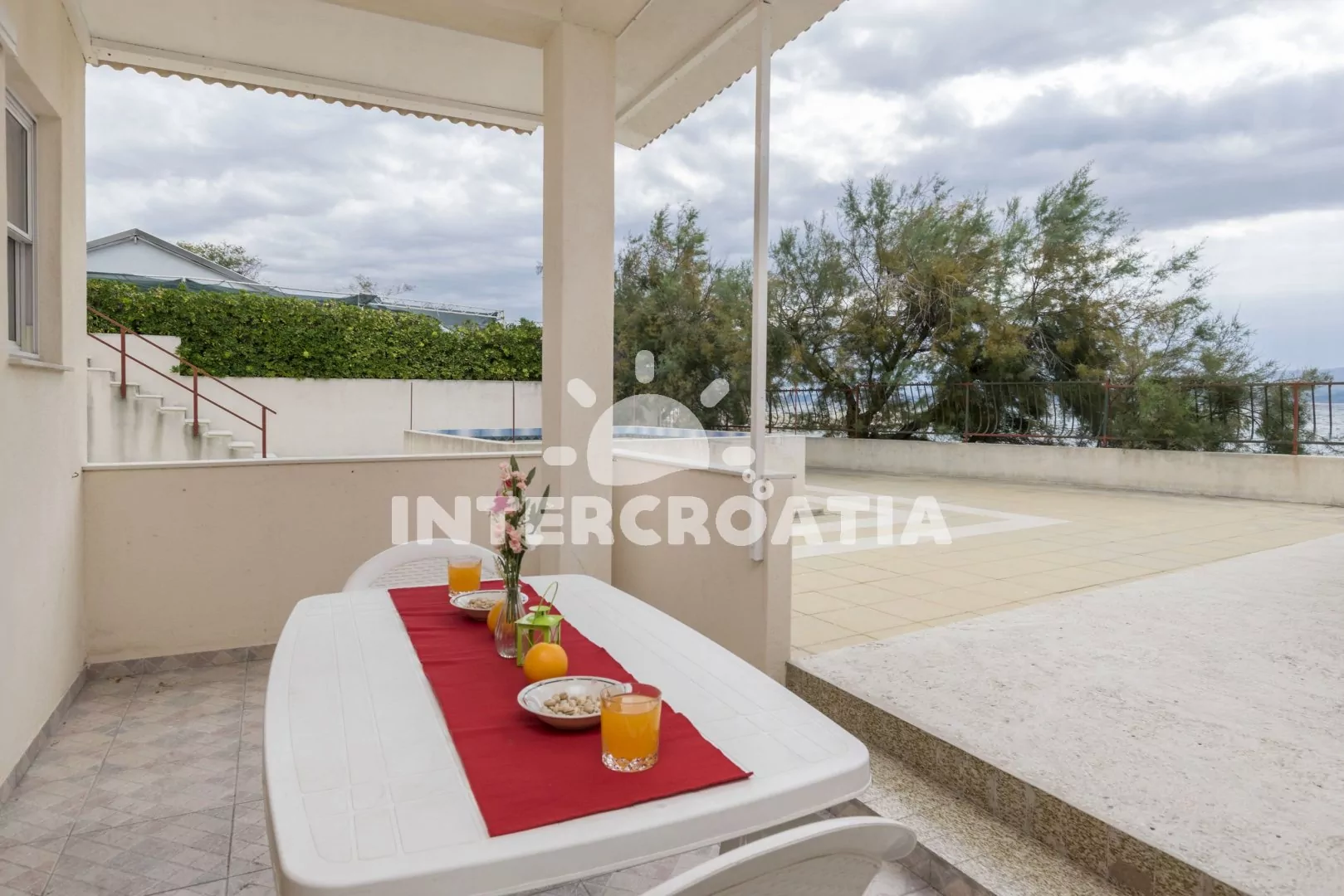 Apartmánový dům s terasou je umístěný přímo na pláži, stačí otevřít vrátka a jste ihned u břehu moře. Parkovací místa u objektu.