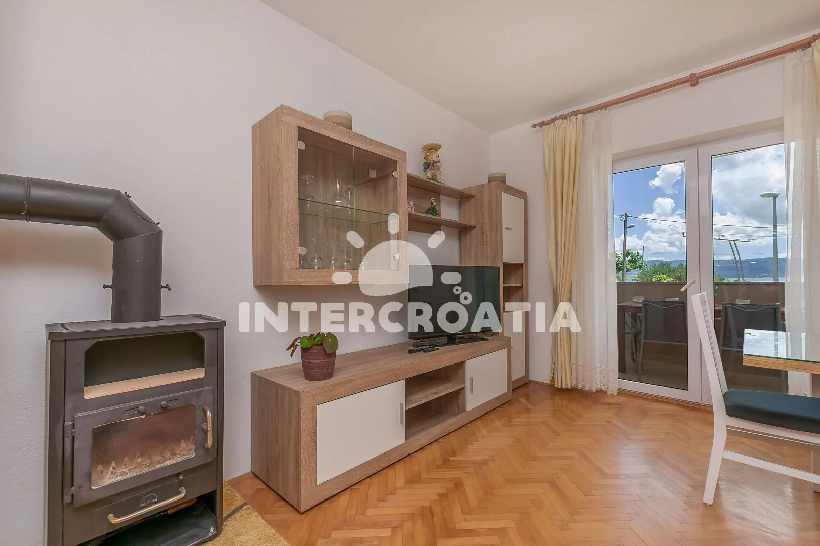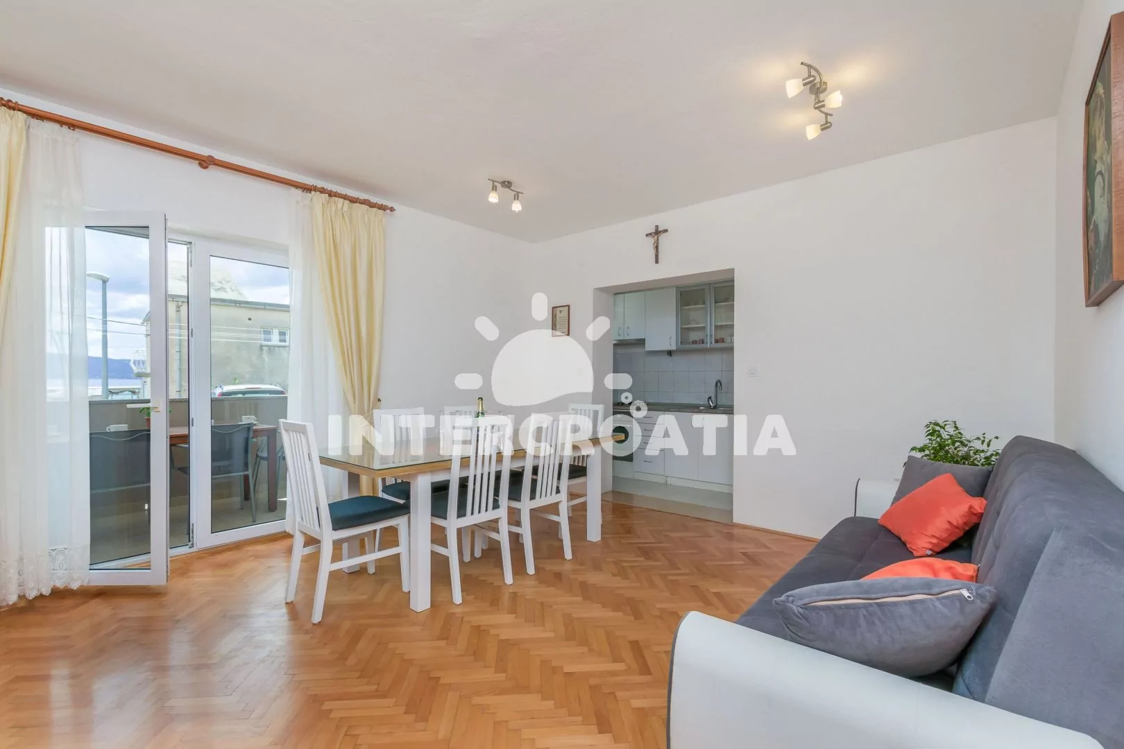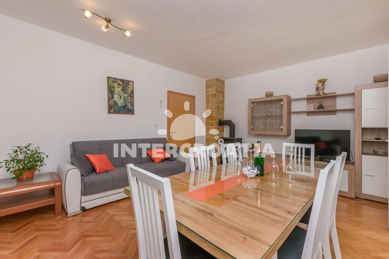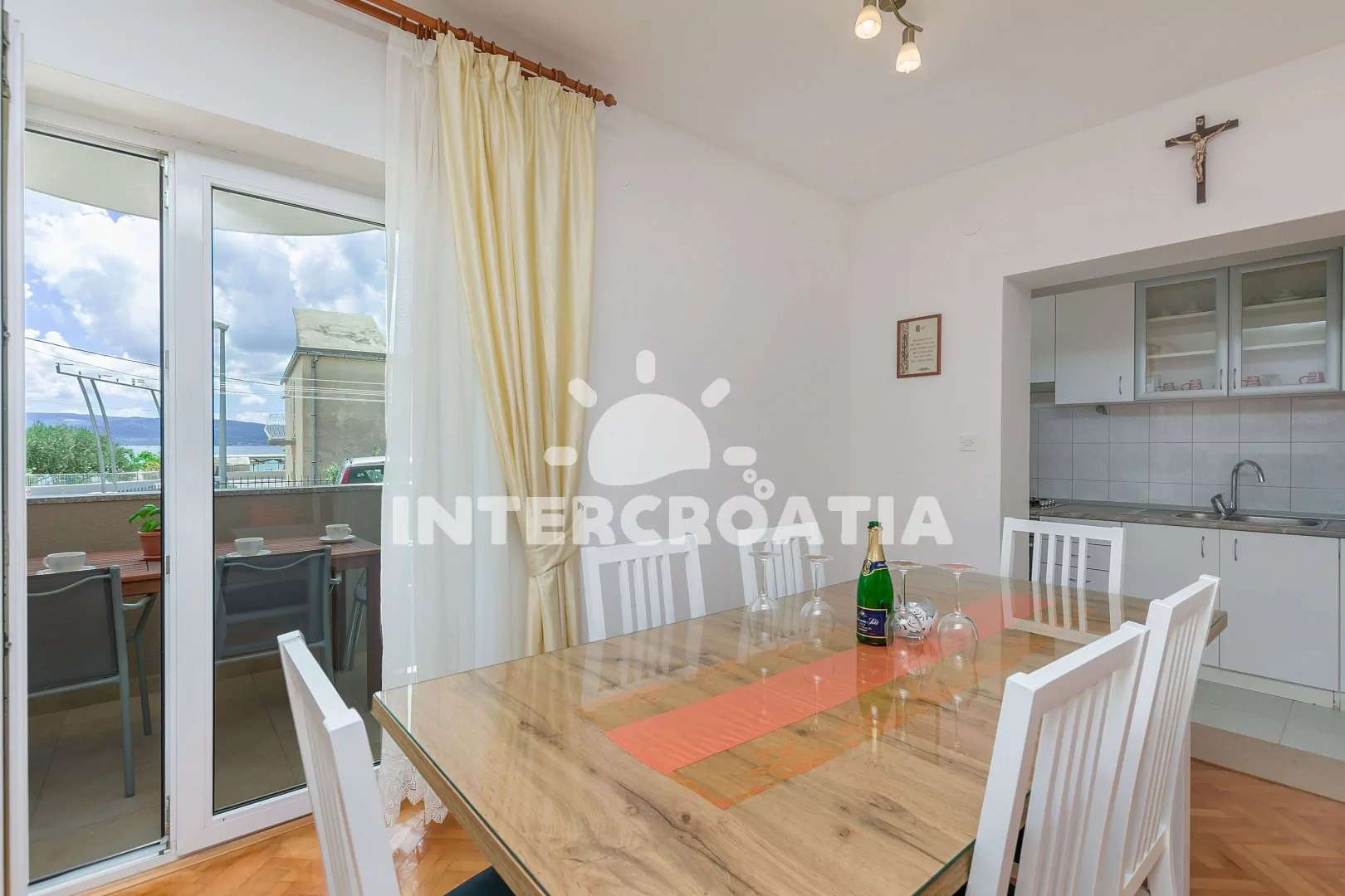 Apartmán (100 m2) s balkonem, terasou a výhledem na moře se nachází v přízemí a je vhodný pro 6 až 7 osob. Obývací pokoj je spojený s kuchyní. Kuchyňská linka je vybavena varnou deskou, digestoří,…