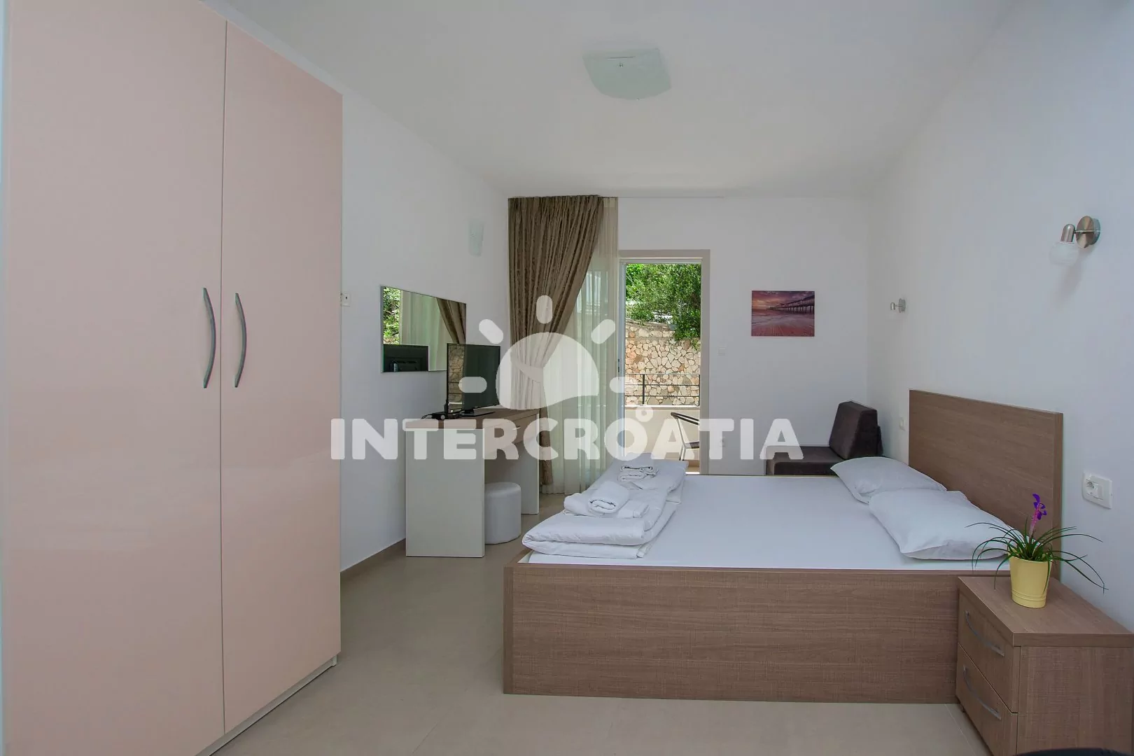 Výhodně umístěný apartmánový dům v oblíbené destinaci Duće se nachází pouze 90 m pěší chůzí od písečné pláže a moře. Objekt je zařízen v novém a moderním stylu. Luxusně zařízené a vybavené apartmány s klimatizací, lodžiemi a venkovním posezením. Parkoviště je v rámci objektu a každý apartmán má k dispozici minimálně jedno parkovací místo.