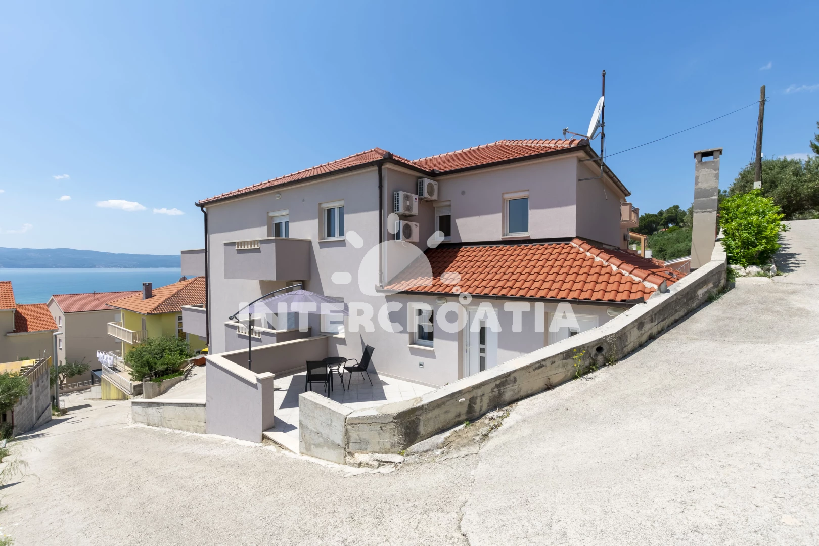 Vzdálenosti: Moře a písečná pláž 150 m, obchod s potravinami 250 m, restaurace 260 m, bar a veřejná doprava 170 m, centrum 350 m, směnárna 200 m, půjčovna motorových člunů 100 m, lékárna, tenisové kurty, půjčovna cyklistických kol a čerpací stanice 2 km, ambulance, banka, pošta, přístav a potápění 2,5 km, mini golf 9 km, diskotéka 20 km, trajekt (Split) 25 km, letiště (Split) 45 km.