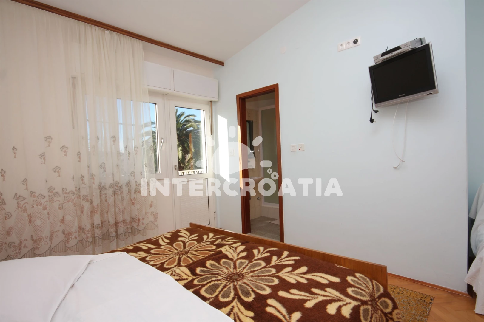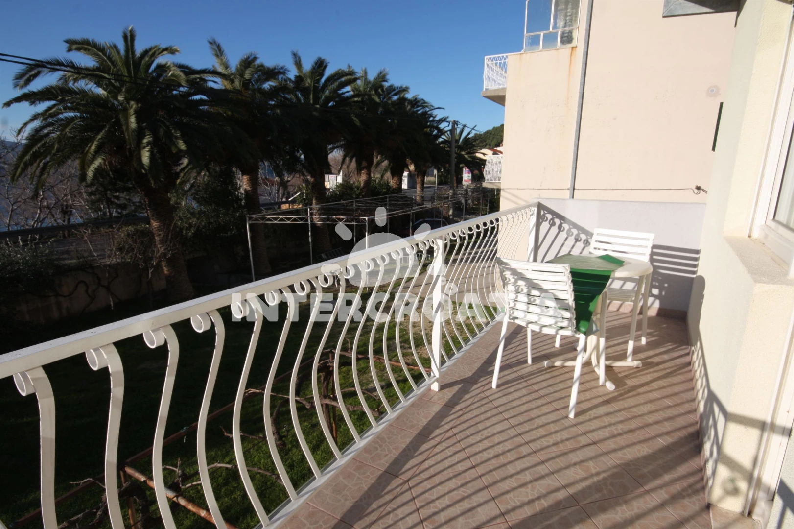 Vzdálenosti: Moře 40 m, pláž 40 m (písek), veřejná doprava 20 m, půjčovna motorových člunů 100 m, bar 250 m, restaurace 400 m, půjčovna kol 450 m, centrum 450 m, supermarket 450 m, směnárna 450 m, čerpací stanice 500 m, potápění 500 m, ambulance 1 km, pošta 1 km, lékárna 1 km, banka 3 km, muzeum 3 km, diskotéka 20 km, tenisové kurty 20 km, trajekt (Split) 25 km, letiště (Split) 45 km,