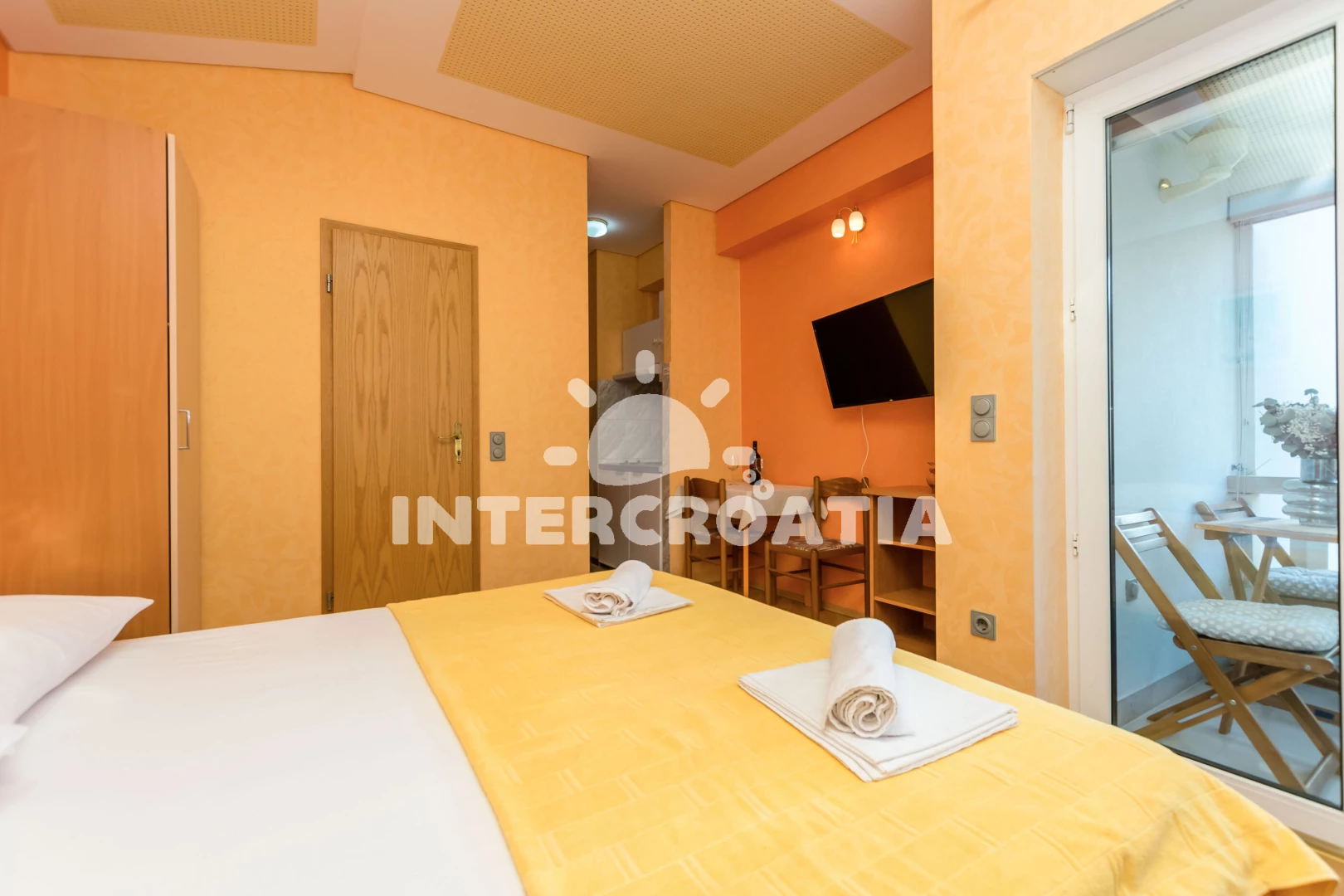 Apartmán typu studio (18 m2) s balkonem. Nachází se ve 3. patře objektu. Kuchyňská linka je vybavena varnou deskou, kávovarem, rychlovarnou konvicí, nádobím, lednicí. K dispozici dvoulůžko, televize, žehlička. Koupelna s vanou, umyvadlem, fénem a WC.