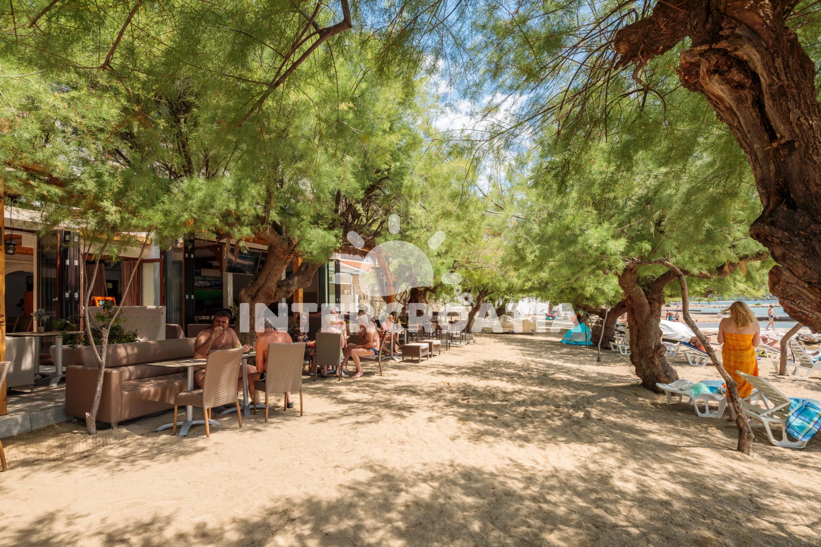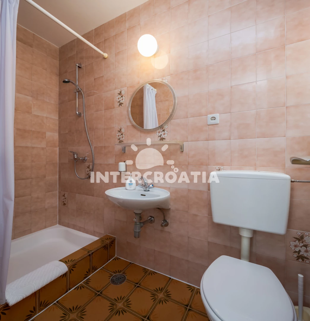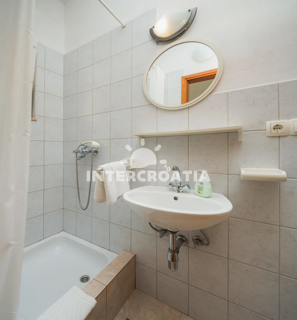 Vzdálenosti: Moře 80 m, pláž 90 m (písek), restaurace 30 m, veřejná doprava 50 m, bar 70 m, půjčovna motorových člunů 100 m, tenisové kurty 300 m, čerpací stanice 500 m, supermarket 500 m, lékárna 600 m, půjčovna kol 700 m, směnárna 700 m, banka 750 m, centrum 1,2 km, pošta 1,4 km, ambulance 2,0 km, muzeum 2 km, marina 2,5 km, trajekt (Split) 25 km, diskotéka 27 km, letiště (Split) 45 km,