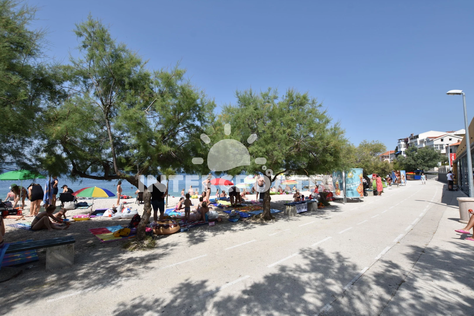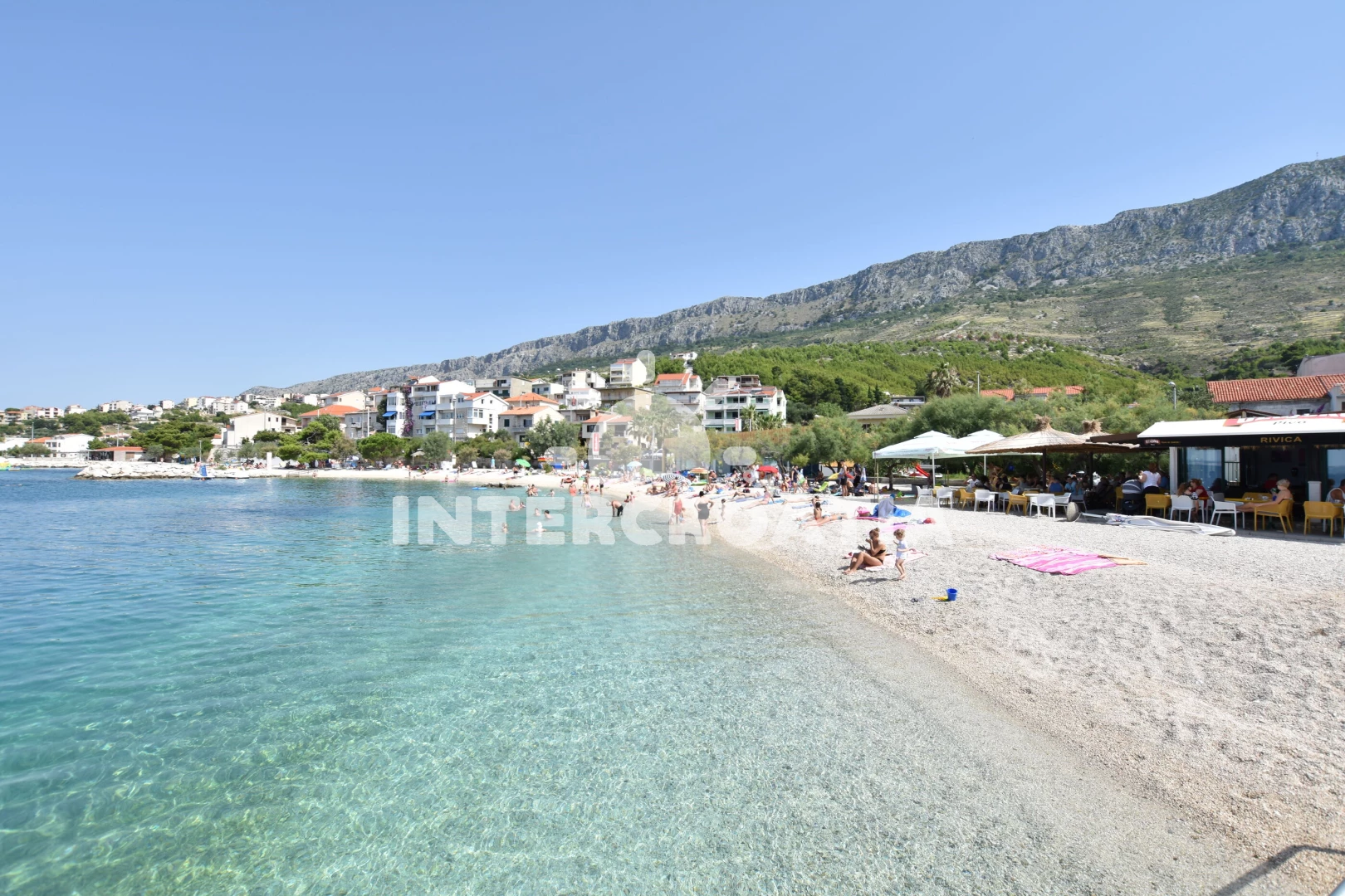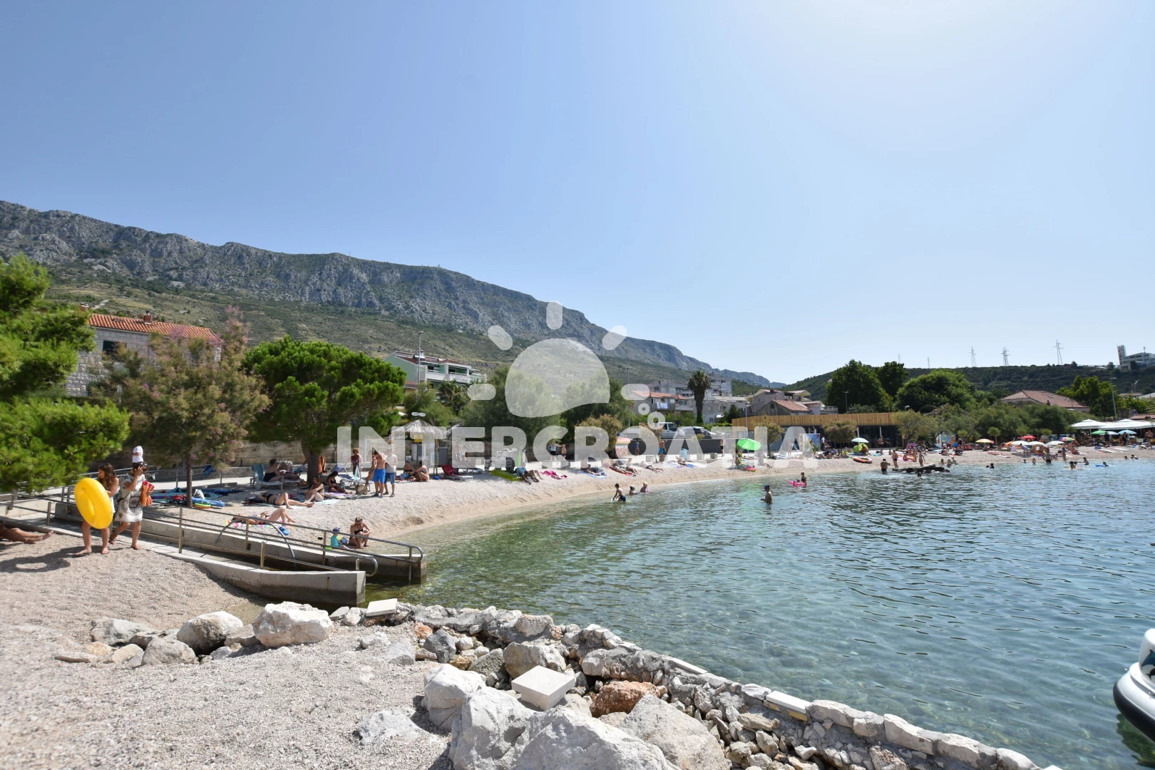 Vzdálenosti: Moře 720 m, pláž 750 m (oblázky), bar 300 m, směnárna 300 m, pošta 320 m, supermarket 350 m, lékárna 350 m, veřejná doprava 400 m, centrum 400 m, ambulance 500 m, restaurace 700 m, čerpací stanice 700 m, půjčovna motorových člunů 3 km, banka 5 km, muzeum 5 km, marina 5 km, potápění 5 km, trajekt (Split) 20 km, letiště (Split) 38 km,