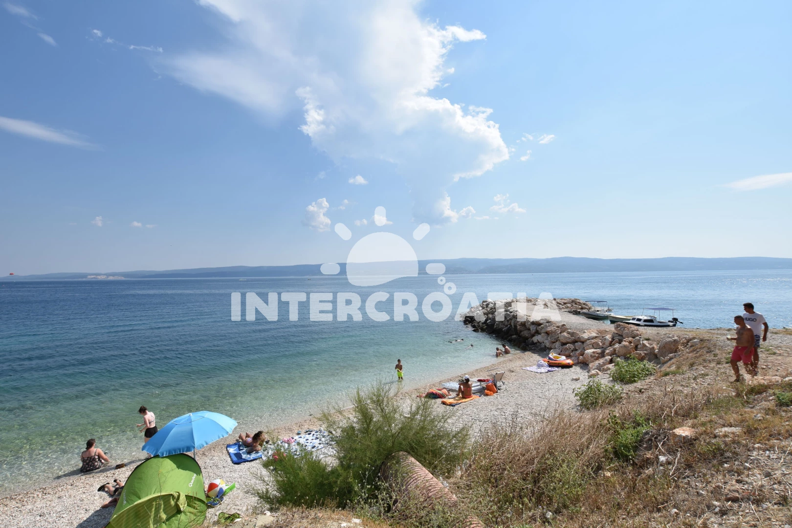 Vzdálenosti: Moře 300 m, pláž 350 m (oblázky), bar 350 m, veřejná doprava 400 m, restaurace 400 m, půjčovna motorových člunů 500 m, supermarket 500 m, pošta 900 m, směnárna 1 km, ambulance 1 km, lékárna 1 km, centrum 1 km, čerpací stanice 1,5 km, potápění 5 km, banka 5 km, trajekt (Makarska) 33 km, letiště (Split) 55 km,