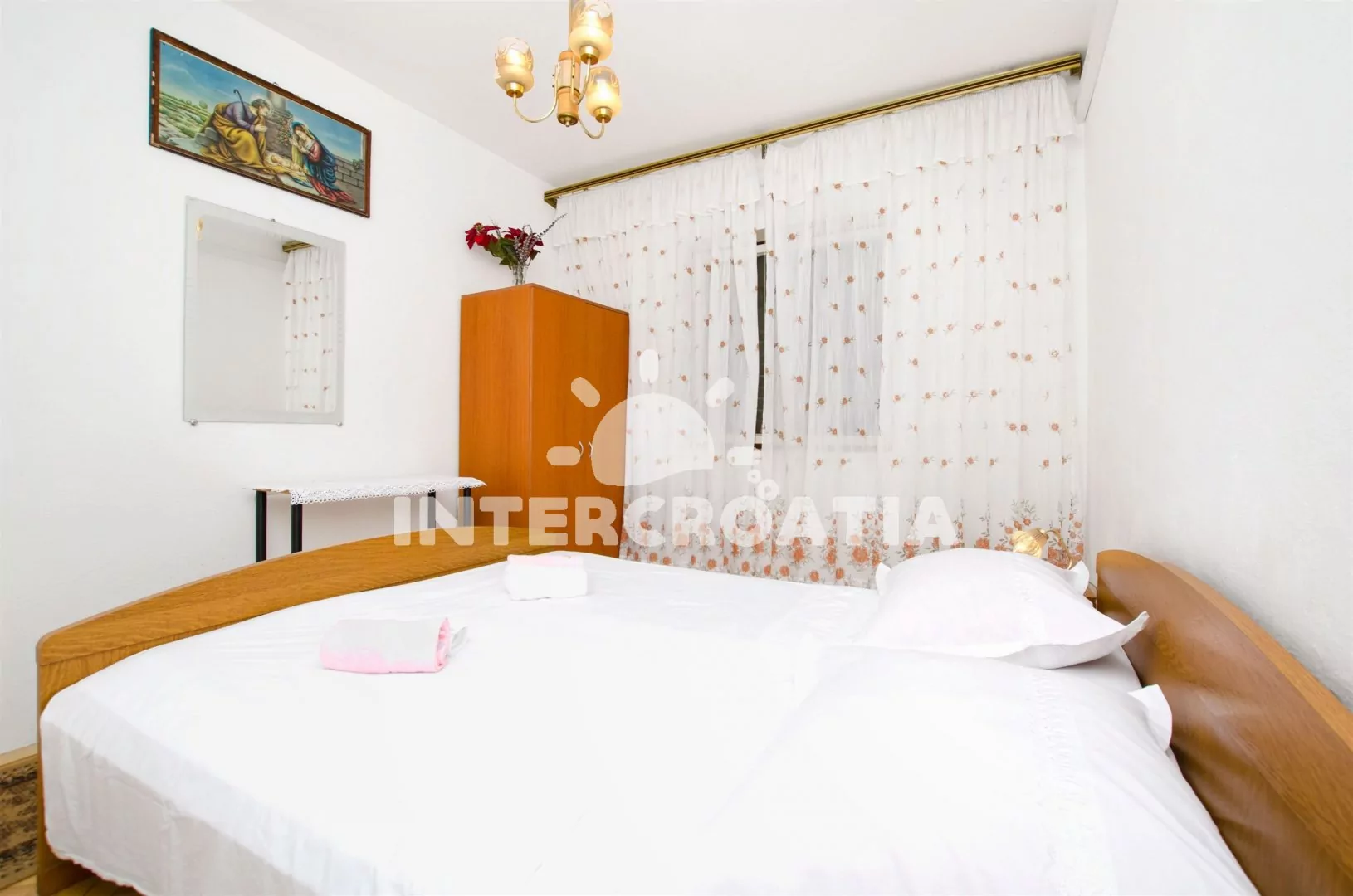 Apartmán s výhledem na moře se nachází v přízemí a je vhodný pro 2 až 4 osoby. Obývací pokoj je spojený s kuchyní. Kuchyňská linka je vybavena sporákem, troubou, kávovarem, rychlovarnou konvicí, nádobím a lednicí s mrazákem. Obývací pokoj s jídelním stolem pro 4 osoby, pohovkou (rozložitelná na extra lůžko pro 2 osoby), televizí a vstupem na terasu. Ložnice s jedním dvoulůžkem. Koupelna s vanou, sprchovou zástěnou, pračkou, umyvadlem, bidetem a wc. Dále samostatné wc s umyvadlem. Hostům je k dispozici parkování u objektu zdarma.
