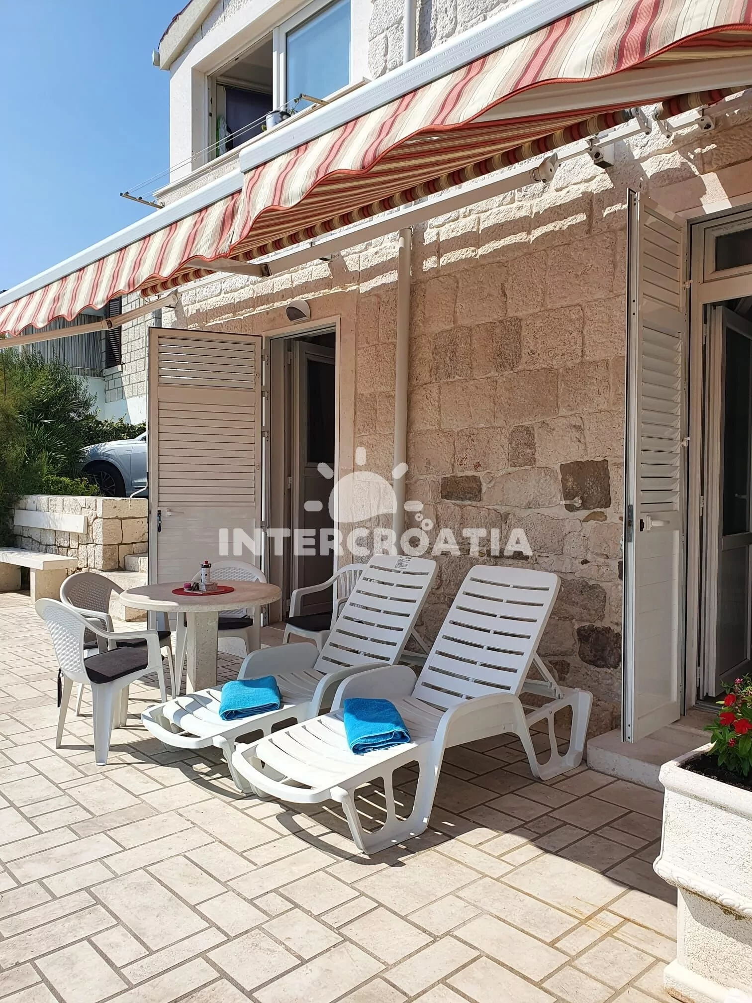 Jedinečně umístěný apartmánový dům přímo na břehu moře a pouze 50 m pěší chůzí od oblázkové pláže. Dům nabízí ubytování v klimatizovaných apartmánech s lodžiemi a venkovním posezením. Soukromé parkoviště u domu.