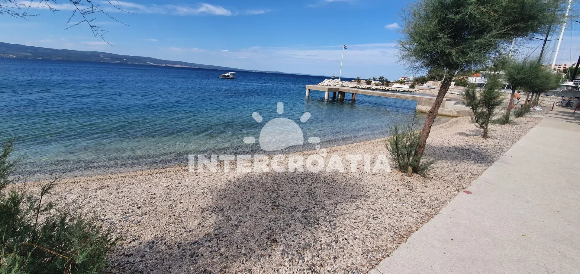 Vzdálenosti: Moře a oblázková pláž 50 m, restaurace 10 m, veřejná doprava 50 m, bar 100 m, supermarket 200 m, lékárna, ambulance, směnárna, banka 300 m, centrum 400 m, pošta 500 m, čerpací stanice 1 km, tenis, potápění, přístav, půjčovna motorových člunů 6 km, muzeum, diskotéka, trajekt 25 km, letiště 35 km.