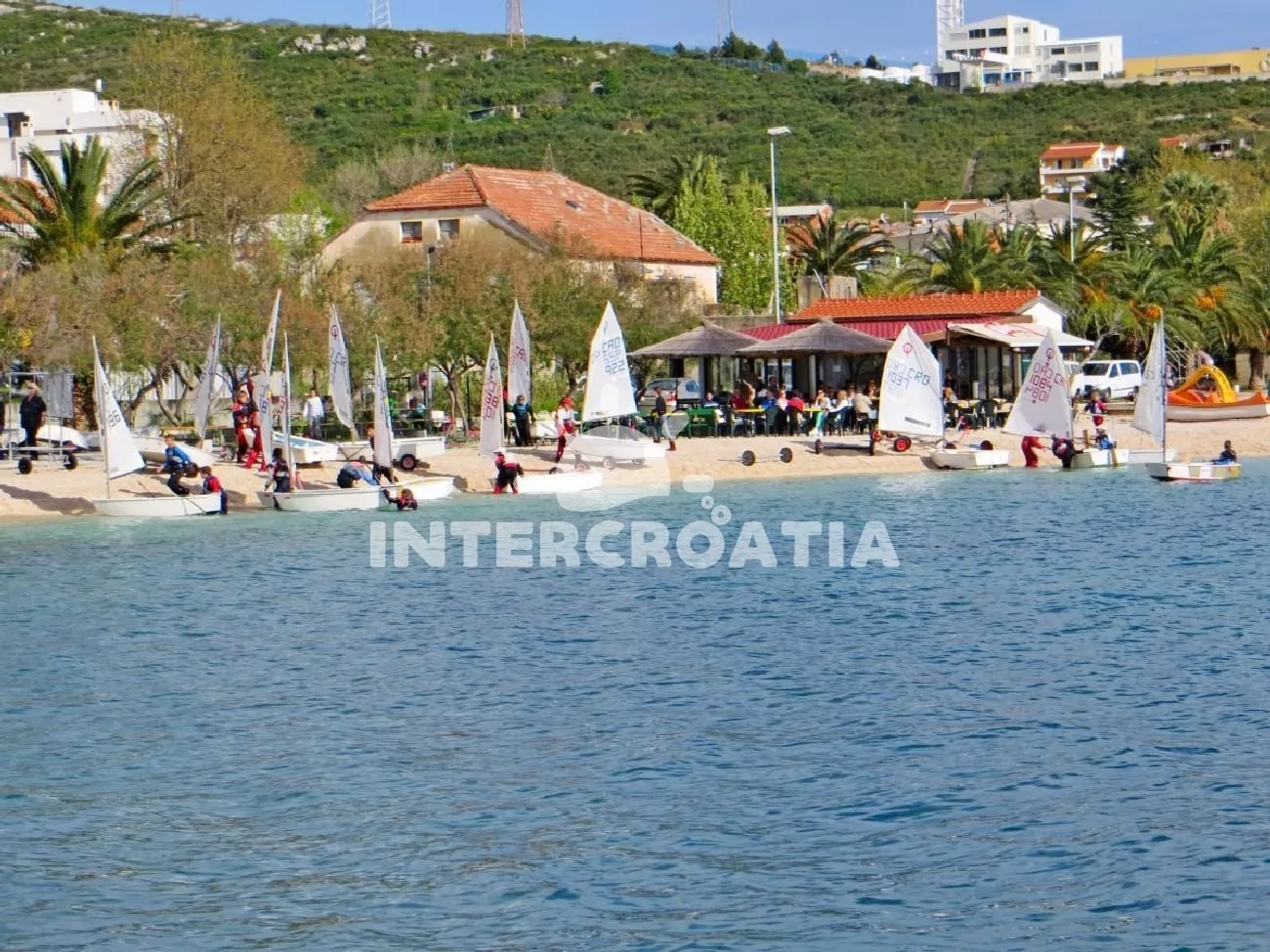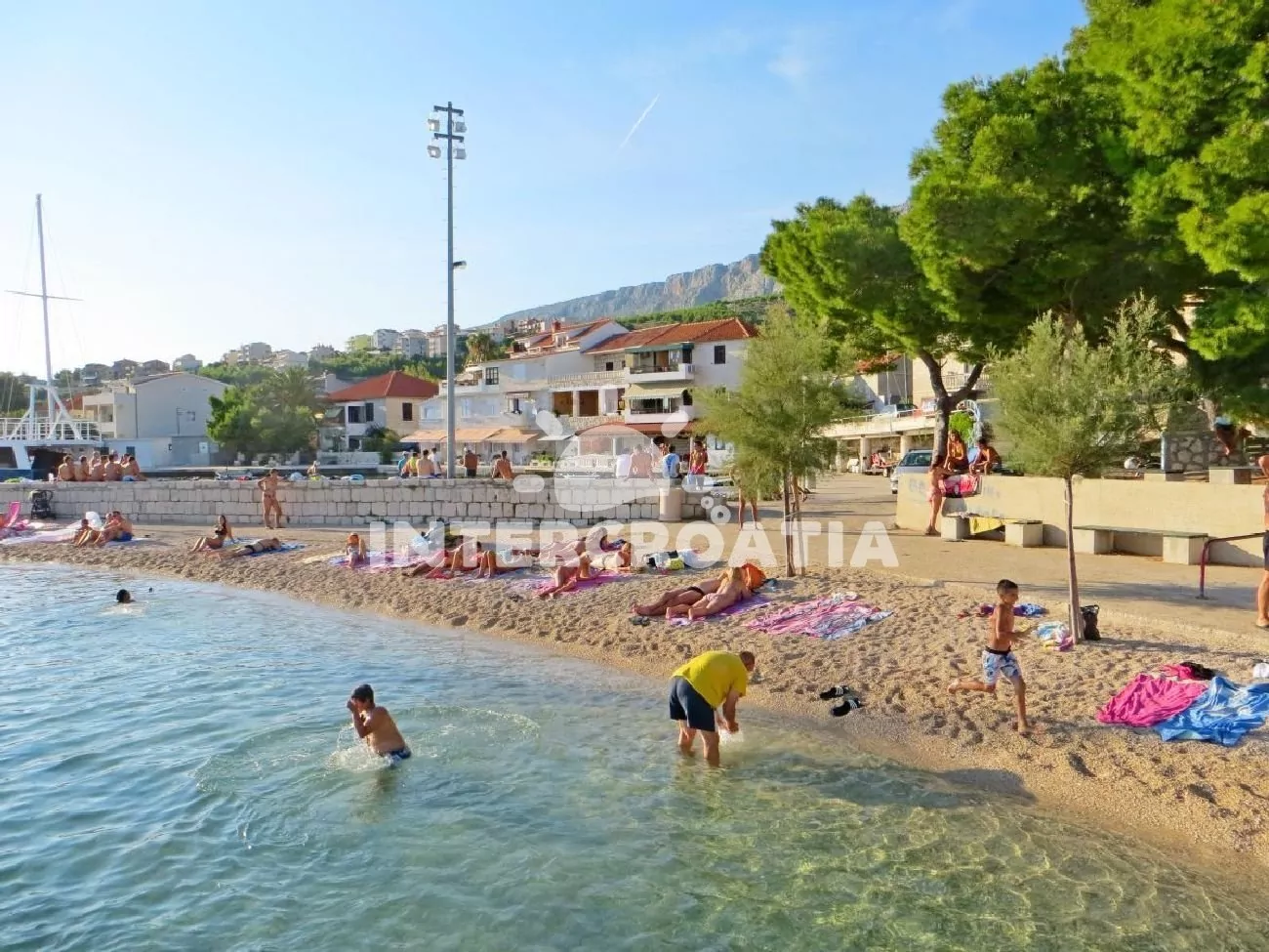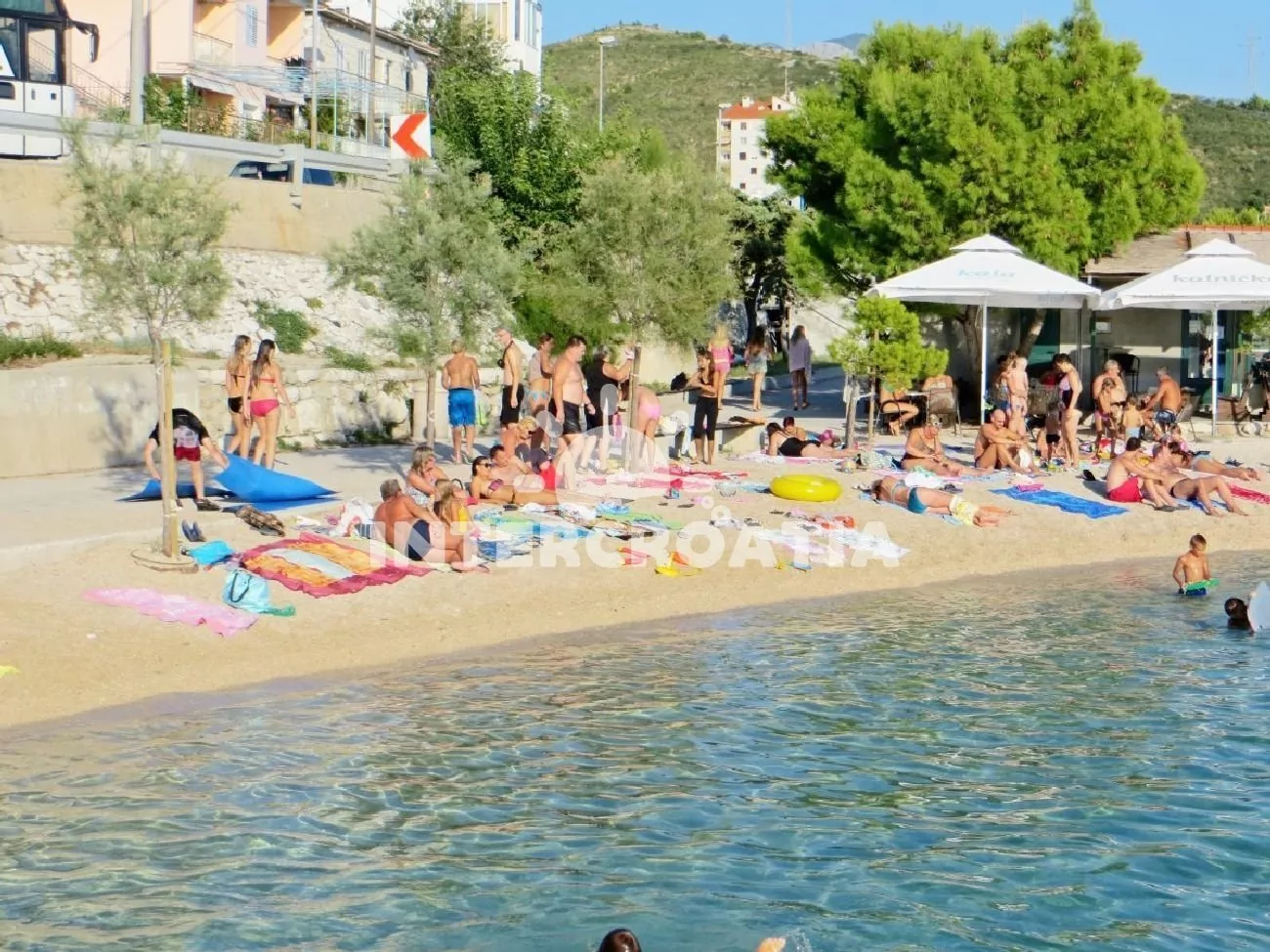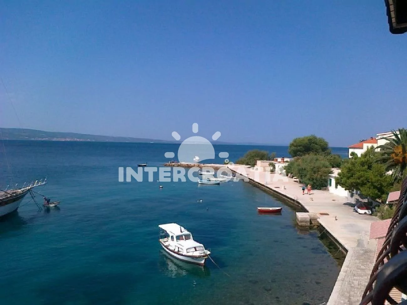 Vzdálenosti: Moře a pláž s betonovými moly 30 m, oblázková pláž 60 m, restaurace 10 m, bar a veřejná doprava 50 m, obchod a centrum 400 m, lékárna, ambulance, směnárna, banka a pošta 300 m, potápění a půjčovna motorových člunů 500 m, čerpací stanice 3 km, mini golf, muzeum, diskotéka a přístav 4 km, čerpací stanice 3 km, tenisové kurty 1 km, bazén a trajekt 17 km, letiště (Split) 45 km.