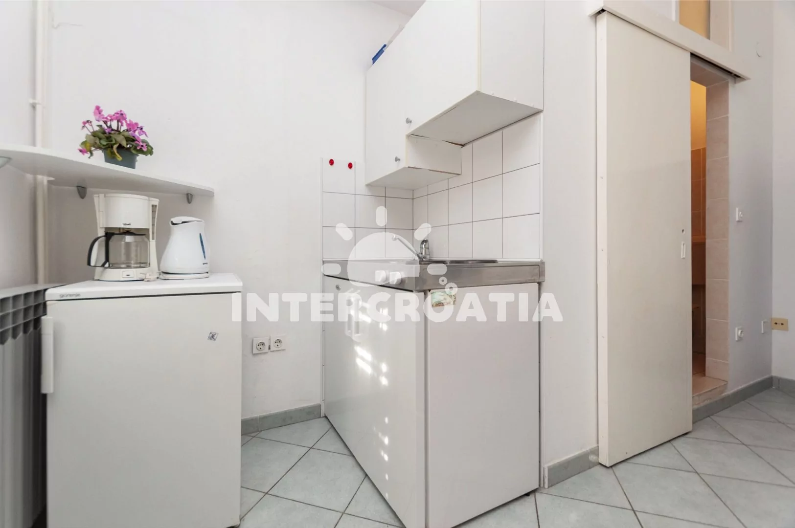 Apartmán (26 m2) typu studio s balkonem, venkovním posezením a výhledem na moře se nachází v 1. patře domu. Obývací místnost je spojena s kuchyní. Kuchyňská linka je vybavena dvouplotýnkovým vařičem,…