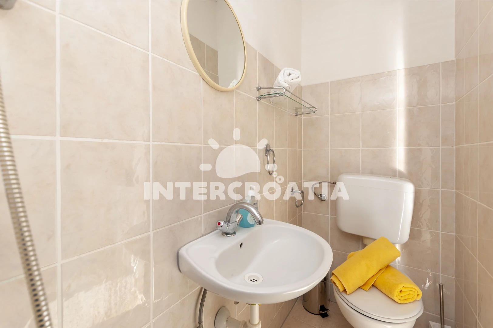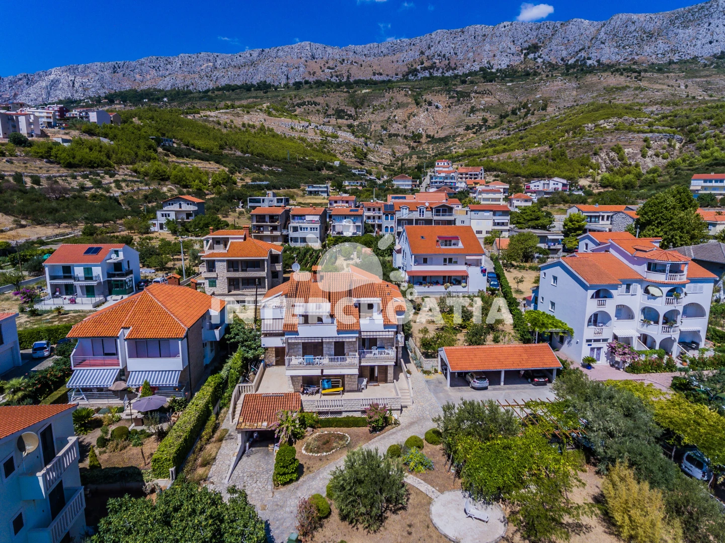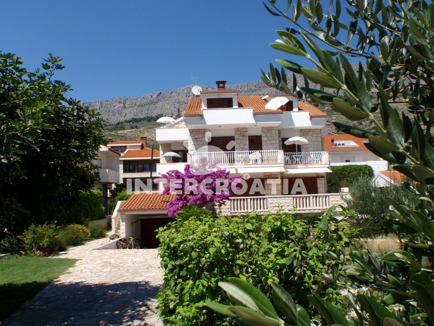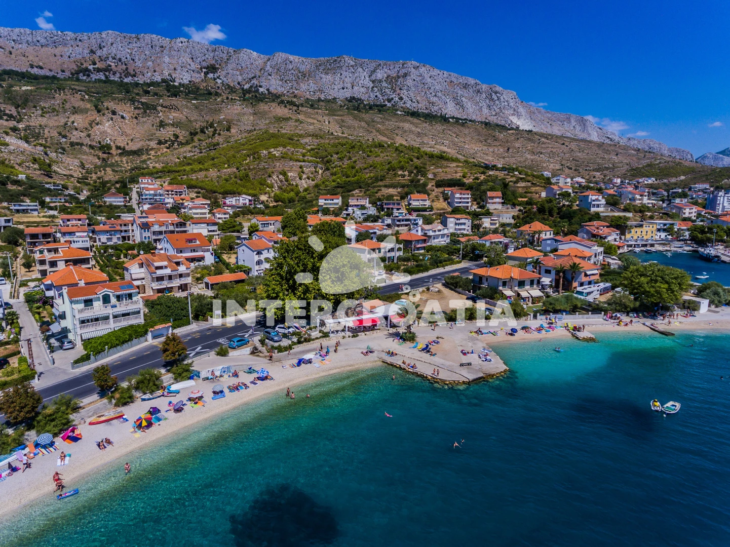 Vzdálenosti: Moře a oblázková pláž 60 m, restaurace 200 m, obchod 450 m, bar 500 m, centrum 700 m, veřejná doprava 10 m, pošta 550 m, lékárna a směnárna 650 m, ambulance 800 m, čerpací stanice 1,2 km, půjčovna cyklistických kol a motorových člunů 4,5 km, přístav, banka a potápění 6 km, tenisové kurty 10 km, mini golf 15 km, diskotéka 20 km, park Plitvice 100 km, trajekt (Split) 19,5 km, letiště (Split) 22 km.