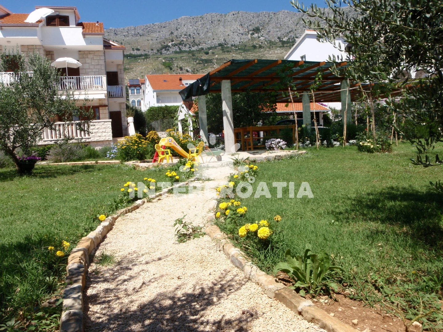 Výborně umístěný apartmánový dům se nachází jen přes cestu od moře a oblázkové pláže. U domu zahrada se společnou pergolou, posezením a grilem. Dům nabízí ubytování v klimatizovaných apartmánech s lodžiemi a venkovním posezením. U domu dále dlážděné parkoviště pro automobily.