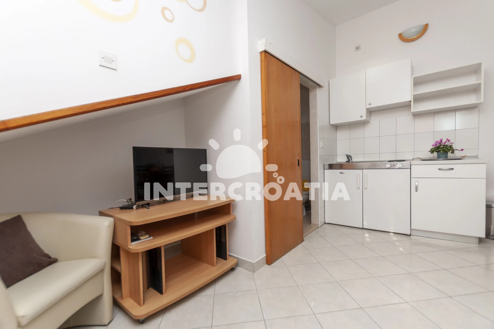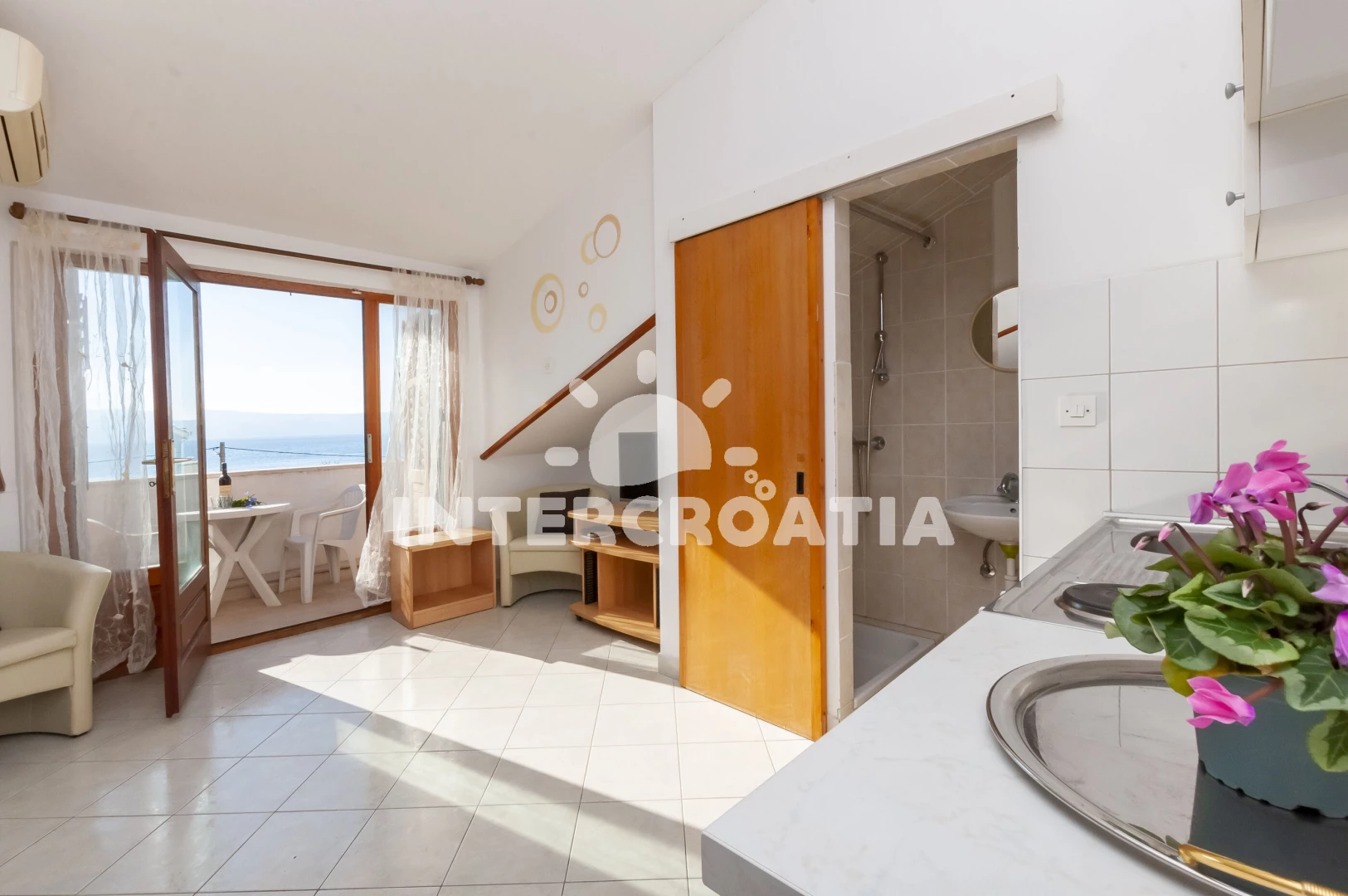 Apartmán typu studio (26 m2) s balkonem, a výhledem na moře. Nachází se ve 2. patře objektu. Kuchyňská linka je vybavena varnou deskou, kávovarem, rychlovarnou konvicí, nádobím, lednicí. K dispozici…