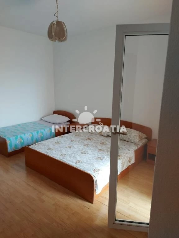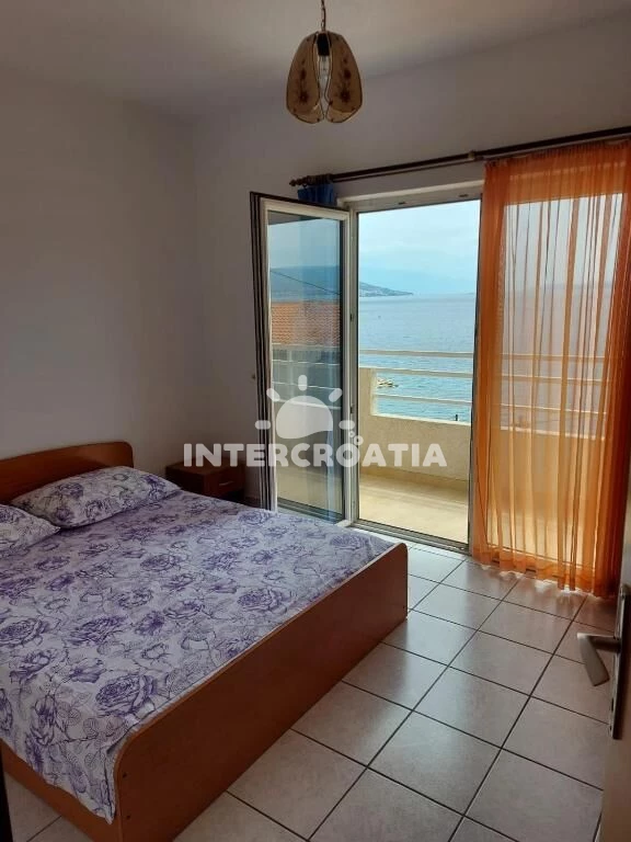 Apartmán (60 m2) s balkonem a výhledem na moře se nachází v 1. patře vily. Apartmán má 2 ložnice a je vhodný pro až 5 osob. Obývací pokoj je spojený s kuchyní. Kuchyňská linka je vybavena dvouplotýnkovým vařičem, rychlovarnou konvicí, mikrovlnnou troubou, nádobím a lednicí s mrazákem. Obývací pokoj s jídelním stolem, pohovkou, televizí, klimatizací a vstupem na balkon. První ložnice s dvoulůžkem a vstupem na balkon. Druhá ložnice s dvoulůžkem, jednolůžkem a vstupem na balkon. Koupelna se sprchovým koutem, umyvadlem, fénem a wc. Hostům je k dispozici parkování u objektu zdarma.