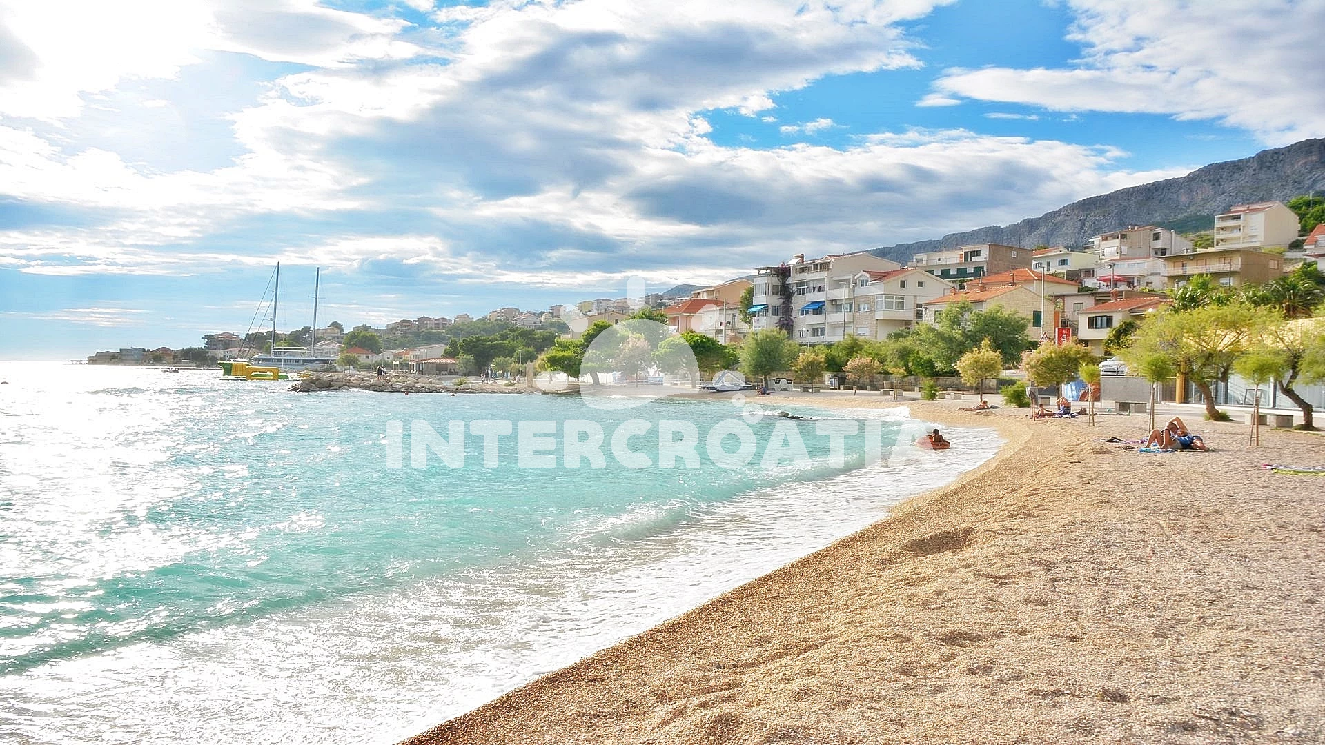 Vzdálenosti: Moře a pláž 100 m (cesta se schody), supermarket 900 m, restaurace 100 m, bar 80 m, veřejná doprava 40 m, ambulance 500 m, čerpací stanice 120 m, lékárna a pošta 700 m, potápění 550 m, směnárna 1 km, půjčovna cyklistických kol, banka a přístav 4 km, centrum 1 km, tenisové kurty 11 km, mini golf 12 km, diskotéka 22 km, trajekt (Split) 21 km, letiště (Split) 41 km.