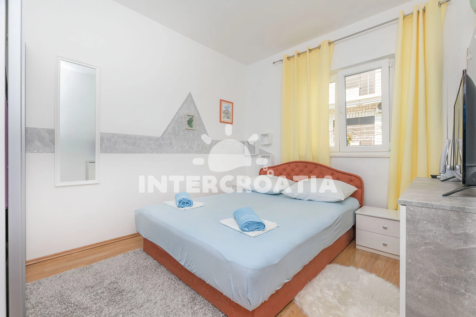 Vzdálenosti: Moře 280 m, pláž 300 m (oblázky), restaurace 300 m, bar 300 m, supermarket 500 m, centrum 800 m, lékárna 1 km, půjčovna motorových člunů 2 km, čerpací stanice 3 km, směnárna 3 km, ambulance 5 km, banka 5 km, pošta 5 km, potápění 5 km, tenisové kurty 5 km, půjčovna kol 5 km, muzeum 25 km, diskotéka 25 km, trajekt (Split) 25 km, letiště (Split) 45 km,