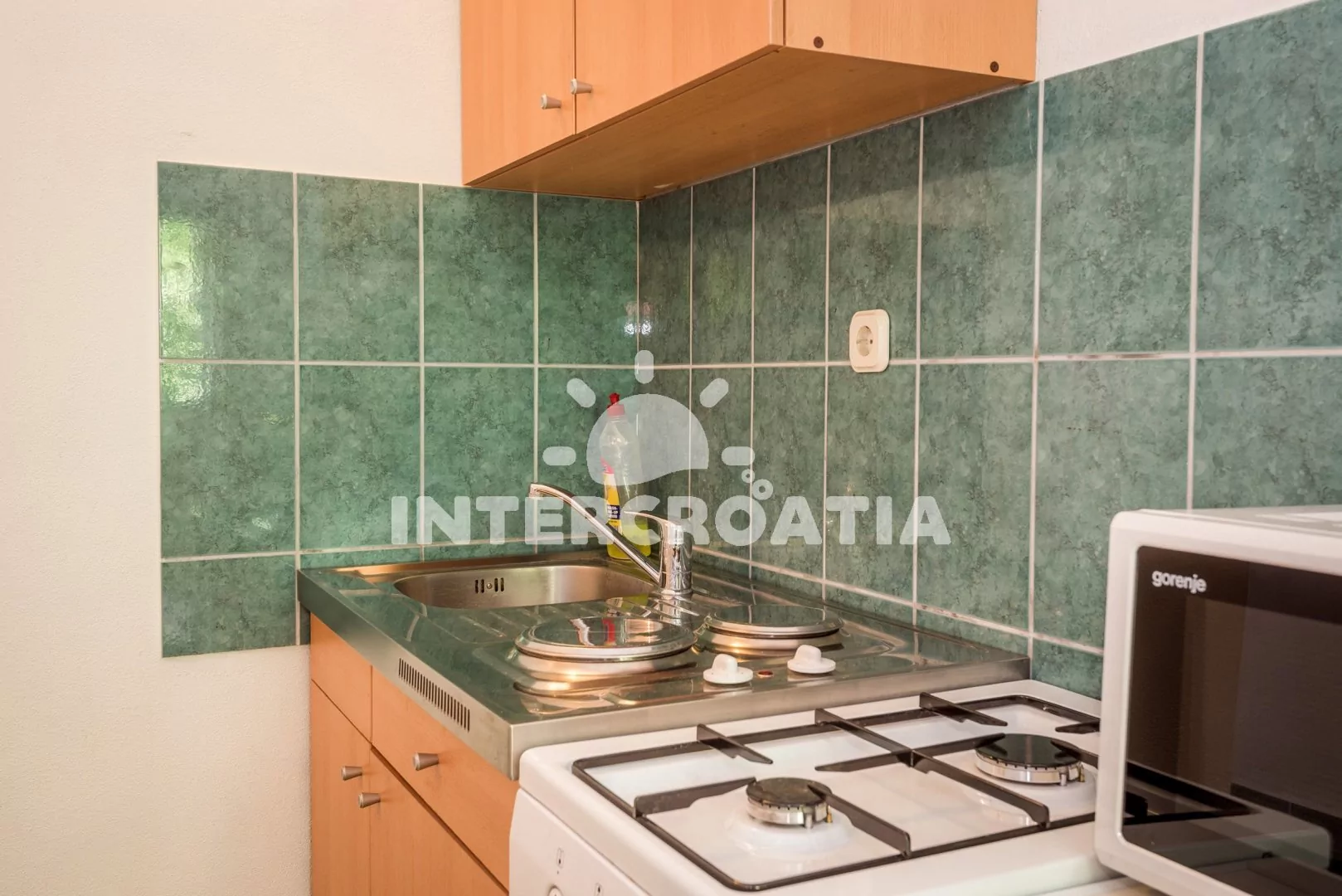Hezky zařízený třípokojový apartmán s výhledem na moře se nachází v druhém patře a je vhodný pro až 5 osob. Obývací pokoj je spojený s kuchyní. Kuchyňská linka je vybavena dvouplotýnkovým sporákem,…