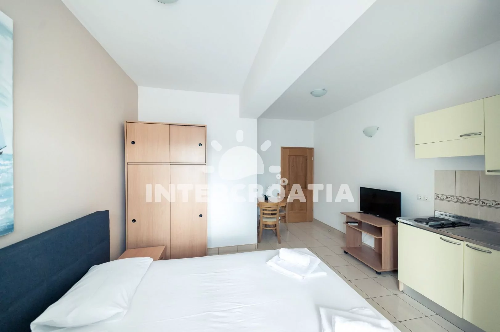 Vzdálenosti: Moře 70 m, pláž 70 m (písčitá a oblázková), bar 30 m, centrum 50 m, restaurace 50 m, supermarket 50 m, pošta 50 m, banka 50 m, potápění 50 m, směnárna 50 m, ambulance 70 m, lékárna 70 m, muzeum 150 m, kotviště pro čluny 150 m, veřejná doprava 250 m, čerpací stanice 250 m,