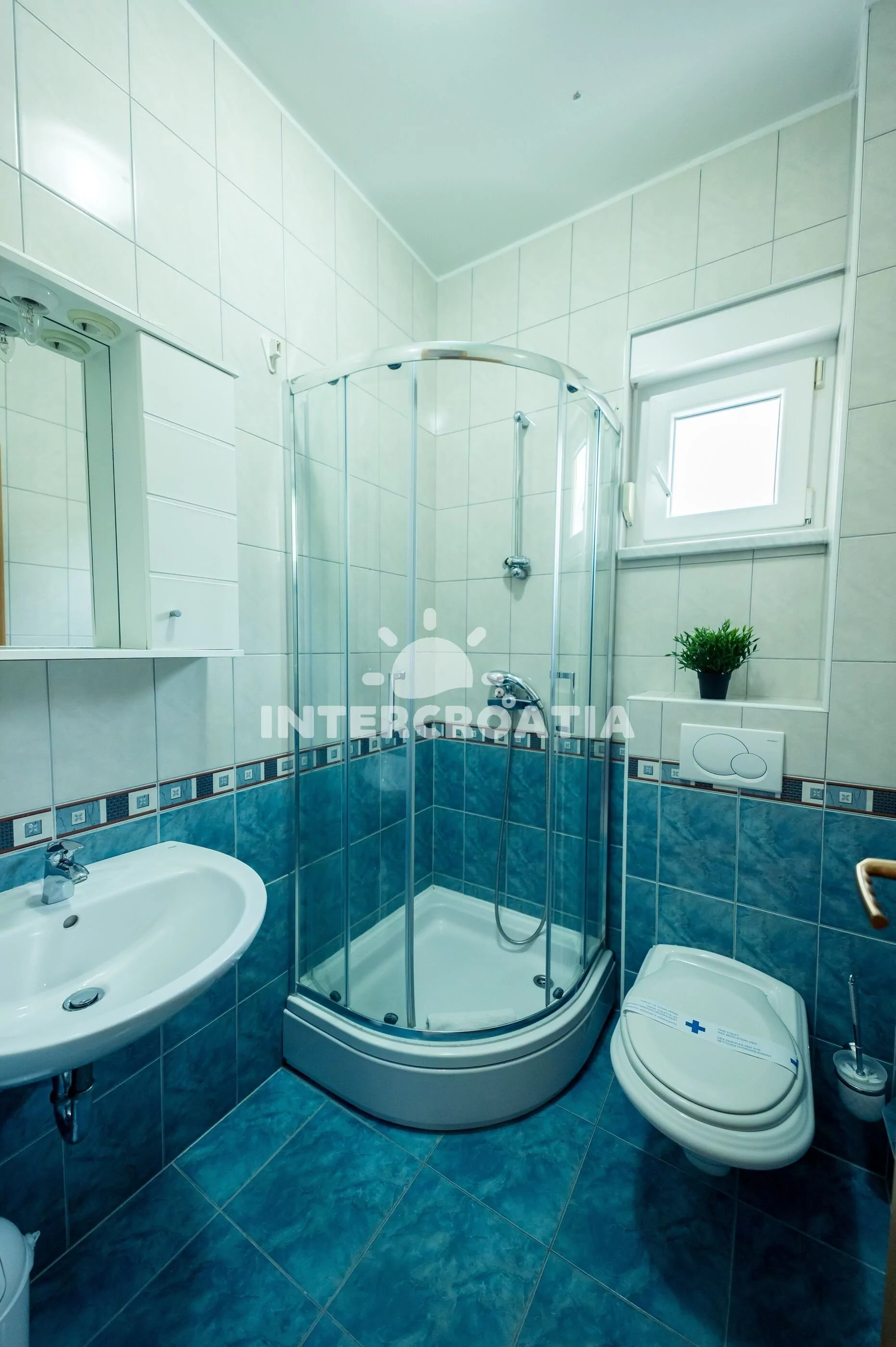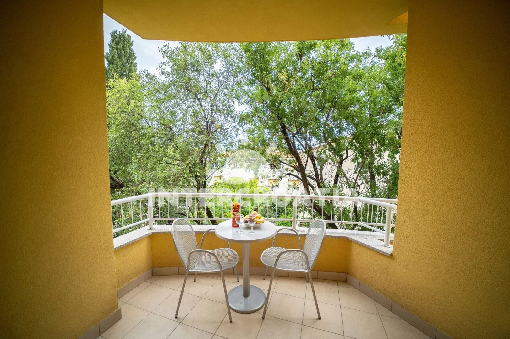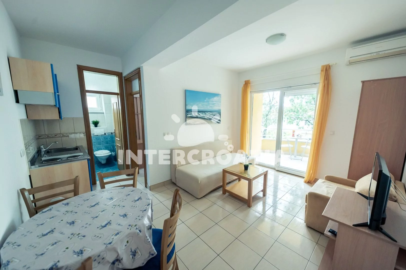 Apartmán (35 m2) s balkonem a výhledem do dvora se nachází v přízemí domu. Apartmán má 1 ložnici a je vhodný pro 2 až 4 osoby. Obývací pokoj je spojený s kuchyní. Kuchyňská linka je vybavena dvouplotýnkovým vařičem, digestoří, rychlovarnou konvicí, nádobím a lednicí s mrazákem. Obývací pokoj s jídelním stolem pro 4 osoby, pohovkou (rozložitelná na extra lůžko pro 2 osoby), televizí, klimatizací a vstupem na balkon. Ložnice s jedním dvoulůžkem. Koupelna se sprchovým koutem, umyvadlem a wc. Hostům je k dispozici parkování 150-300 m od domu zdarma.