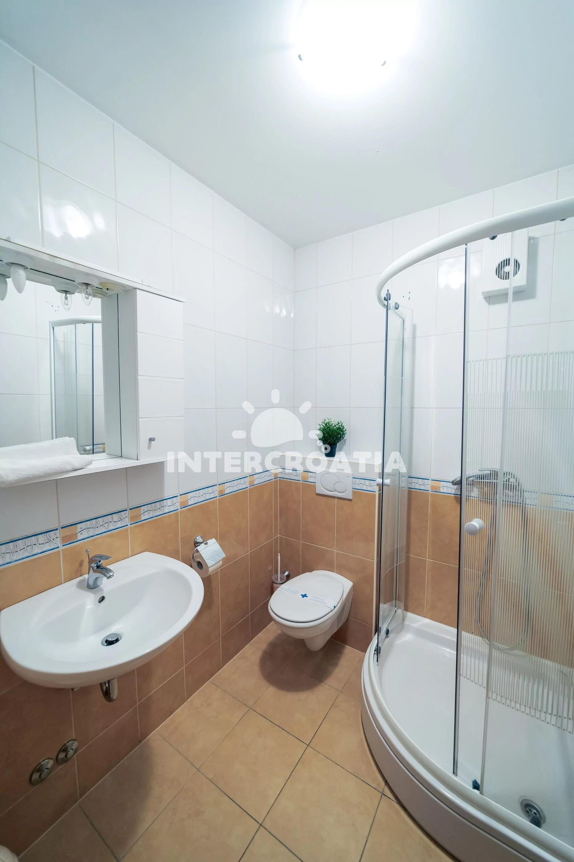 Apartmán (27 m2) s balkonem a bočním výhledem na moře se nachází v 1. patře domu. Apartmán má 1 ložnici a je vhodný pro 2 až 3 osoby. Kuchyň s jídelním stolem, vstupem na balkon a kuchyňskou linkou. Kuchyňská linka je vybavena dvouplotýnkovým vařičem, digestoří, rychlovarnou konvicí, nádobím a lednicí s mrazákem. Ložnice s dvoulůžkem, pohovkou (rozložitelná na extra lůžko pro 1 osobu), televizí a klimatizací. Koupelna se sprchovým koutem, umyvadlem a wc. Hostům je k dispozici parkování 150-300 m od domu zdarma.