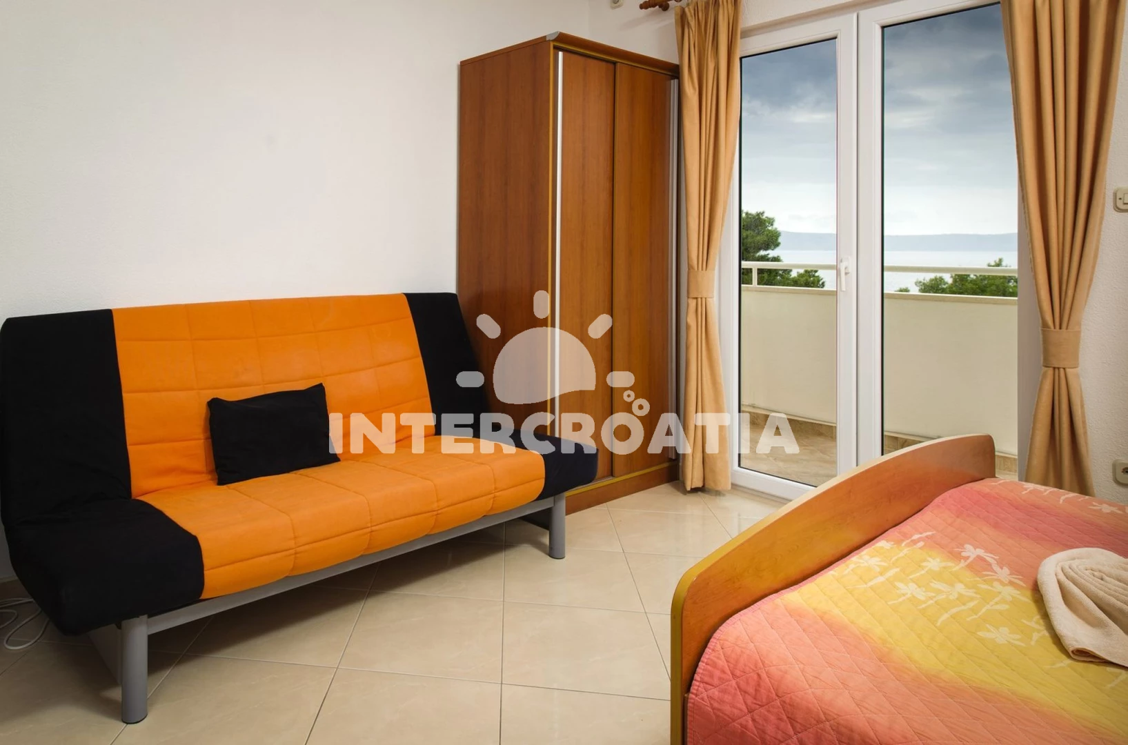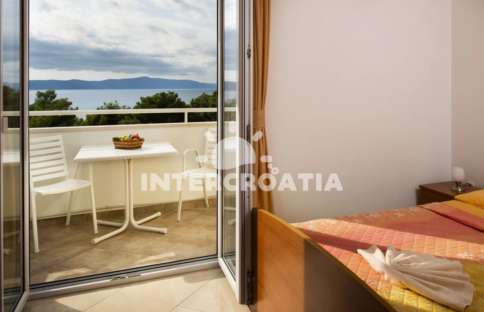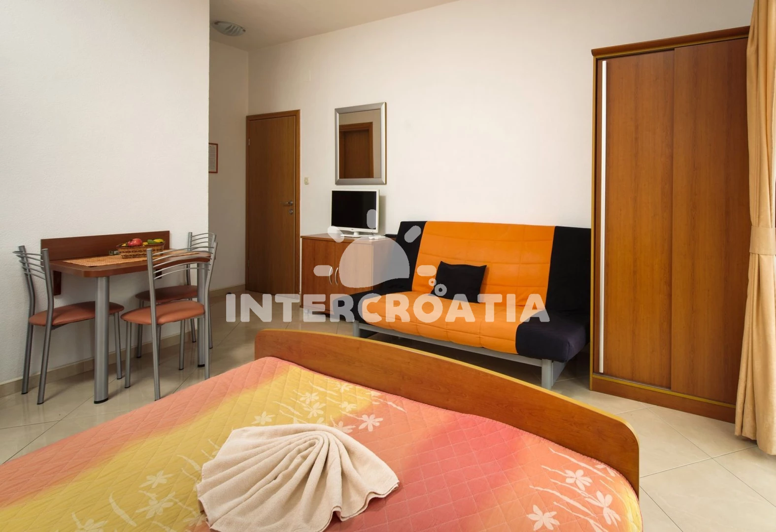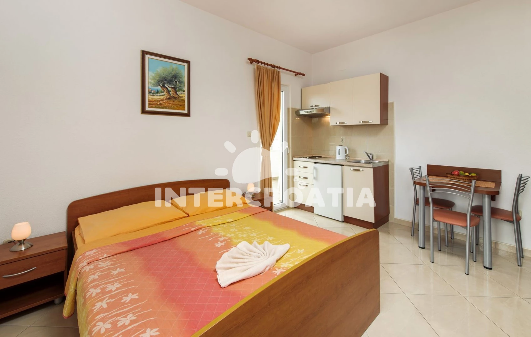 Apartmán (23 m2) s výhledem na moře. Kuchyňská linka je vybavena varnou deskou, rychlovarnou konvicí, nádobím, lednicí, mrazákem. K dispozici dvoulůžko, televize se satelitním programem. Koupelna se sprchovým koutem, umyvadlem, WC.