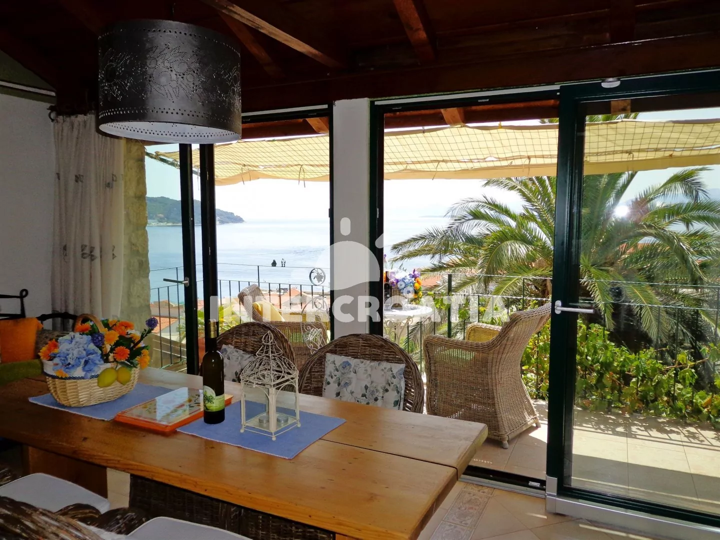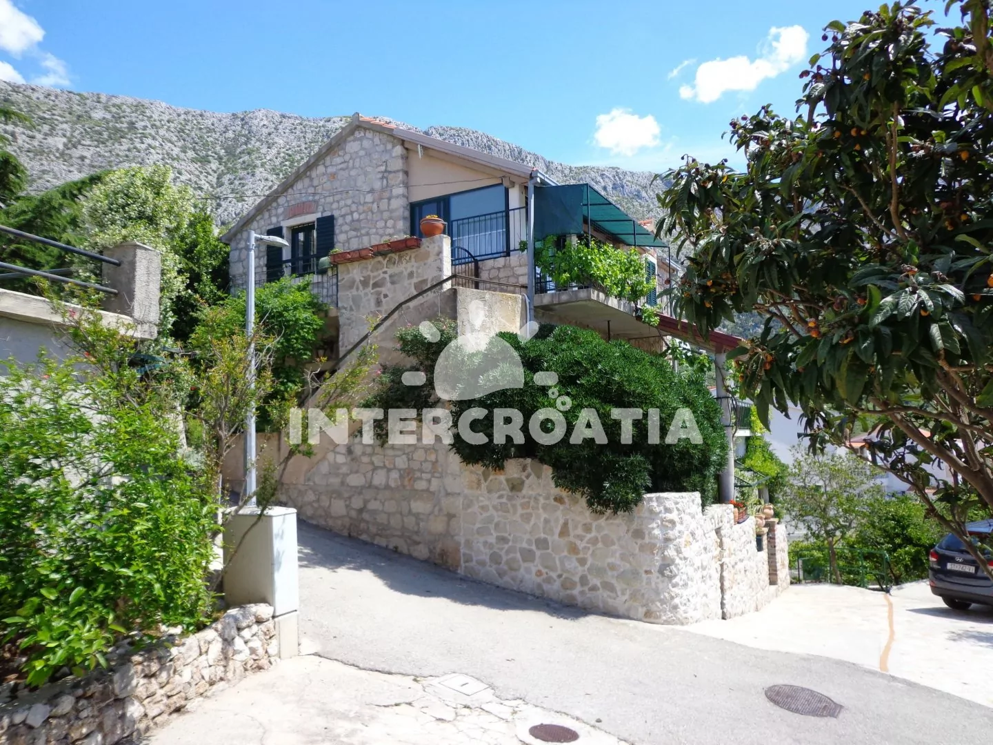 Samostatně stojící kamenný apartmánový domek se skvělou polohou blízko pláže a kousek do centra obce. Z terasy je jedinečný výhled na moře a po okolí. Parkovací místa u objektu.