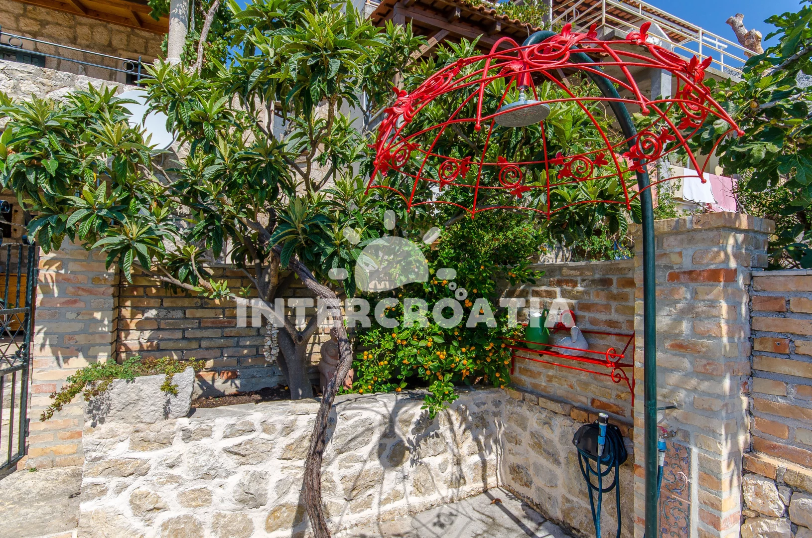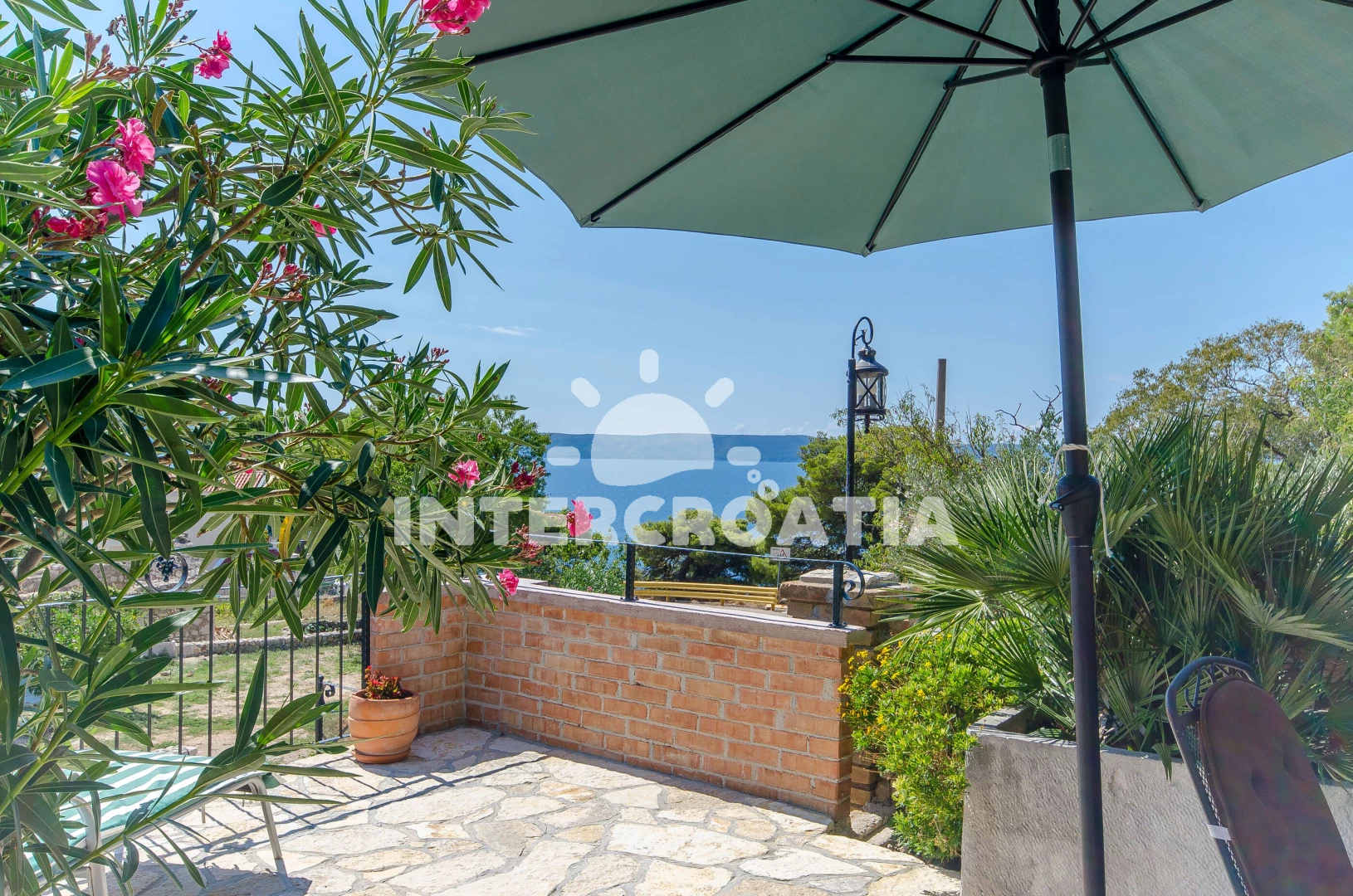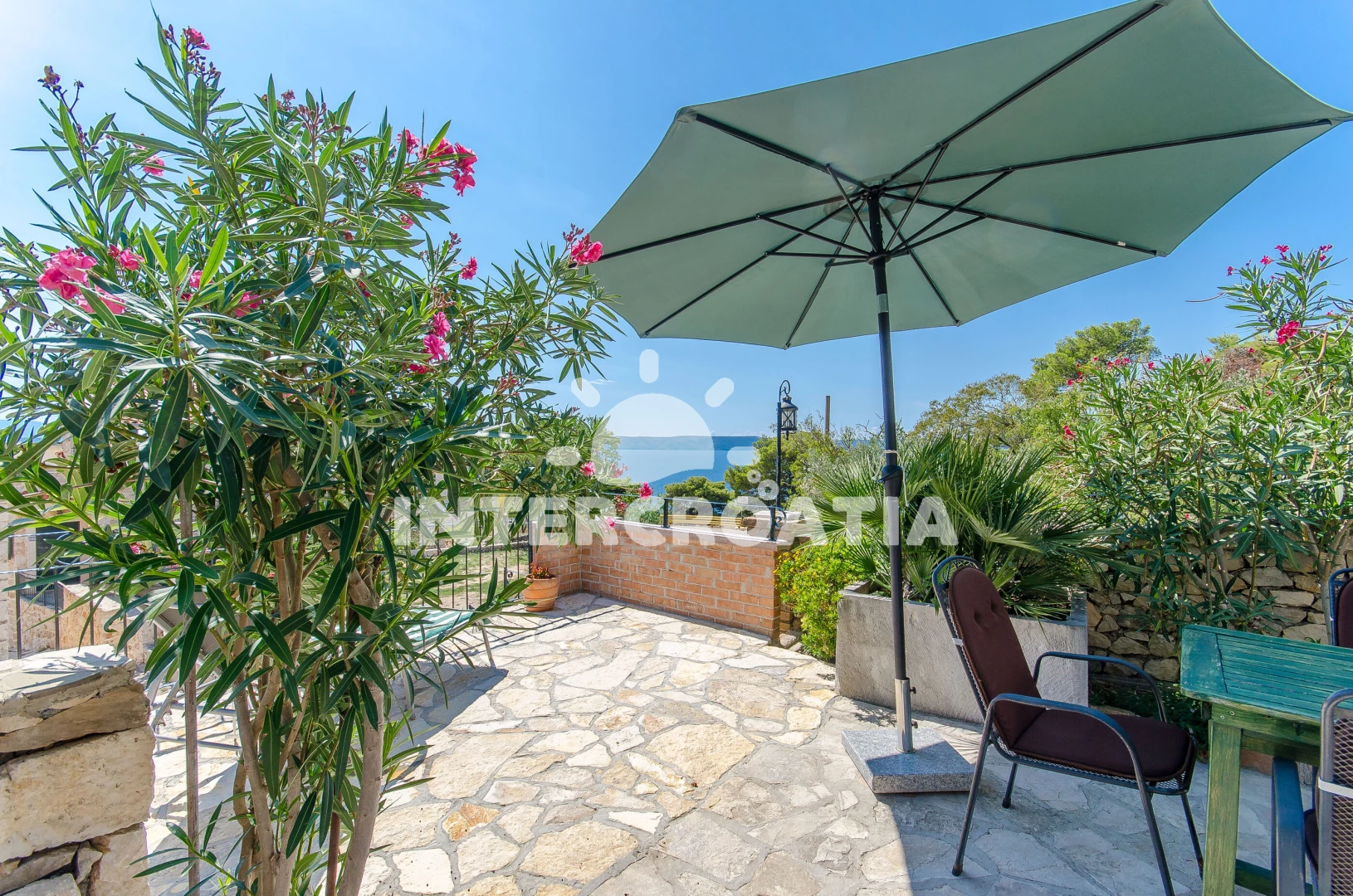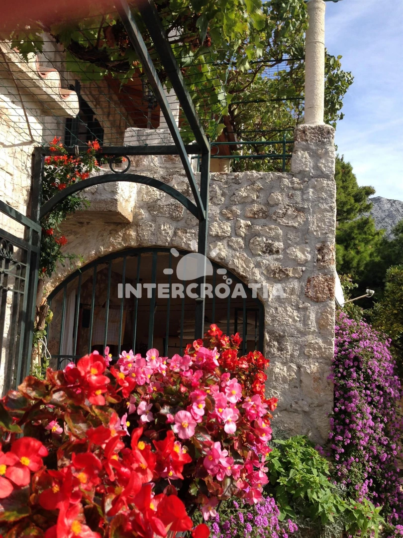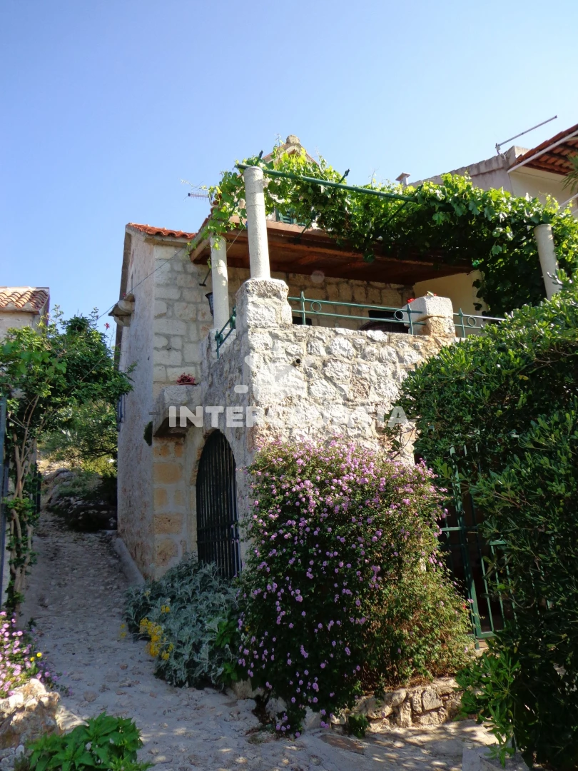 Menší domek s vlastní zahradou, posezením s grilem a terasou, ze které je výhled na okolí a moře.