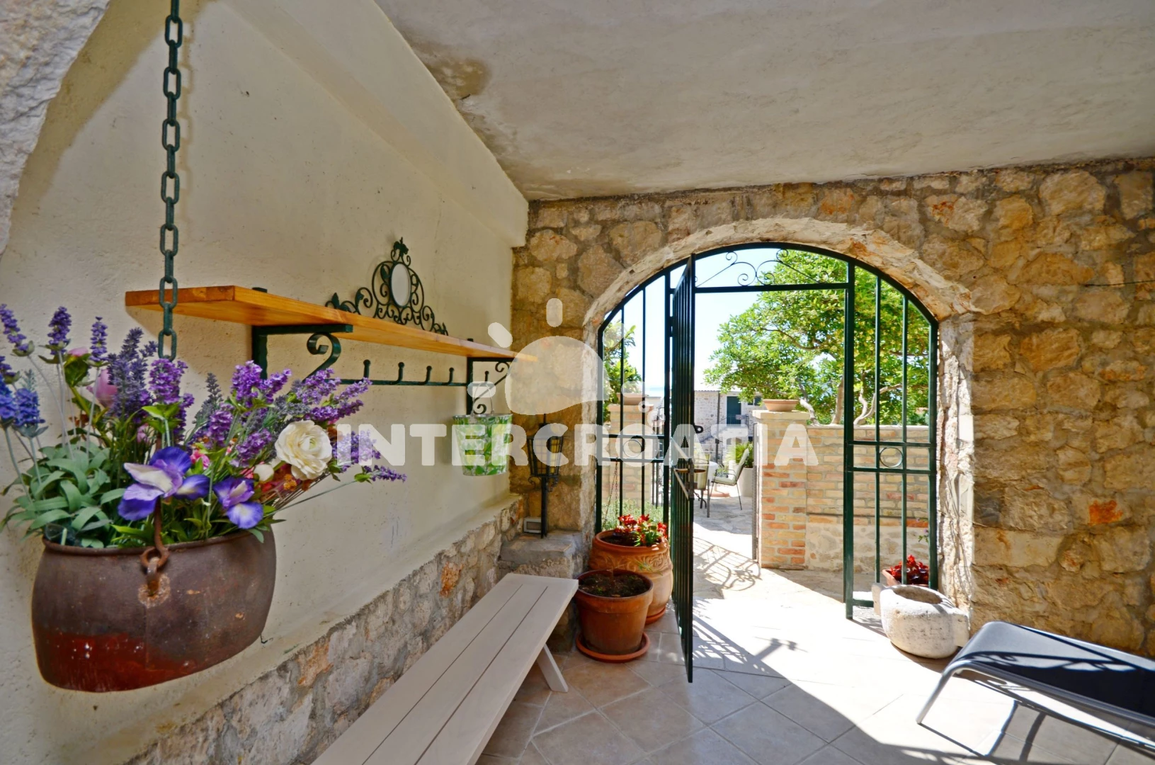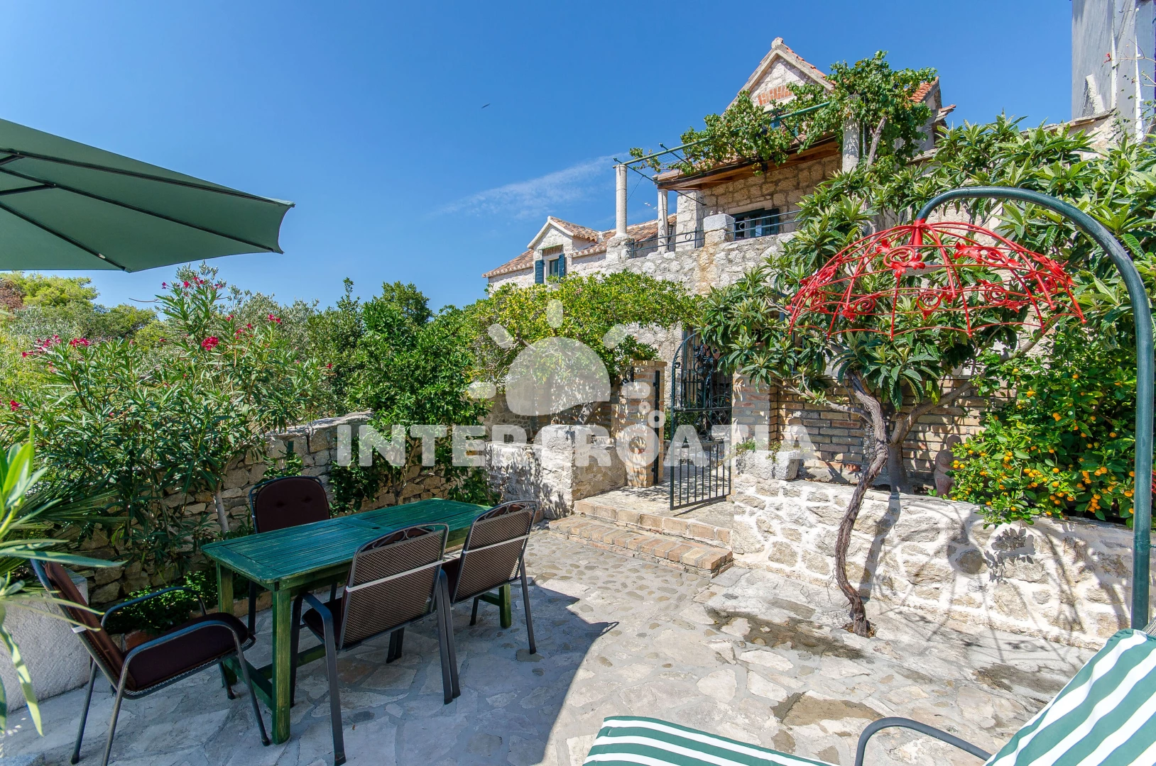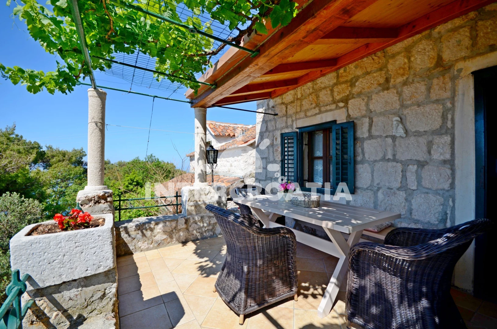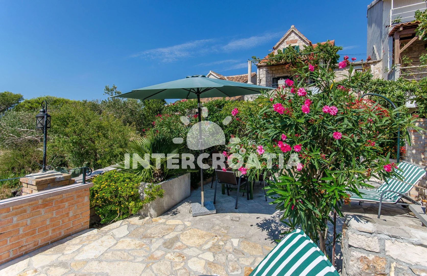 Menší domek s vlastní zahradou, posezením s grilem a terasou, ze které je výhled na okolí a moře.